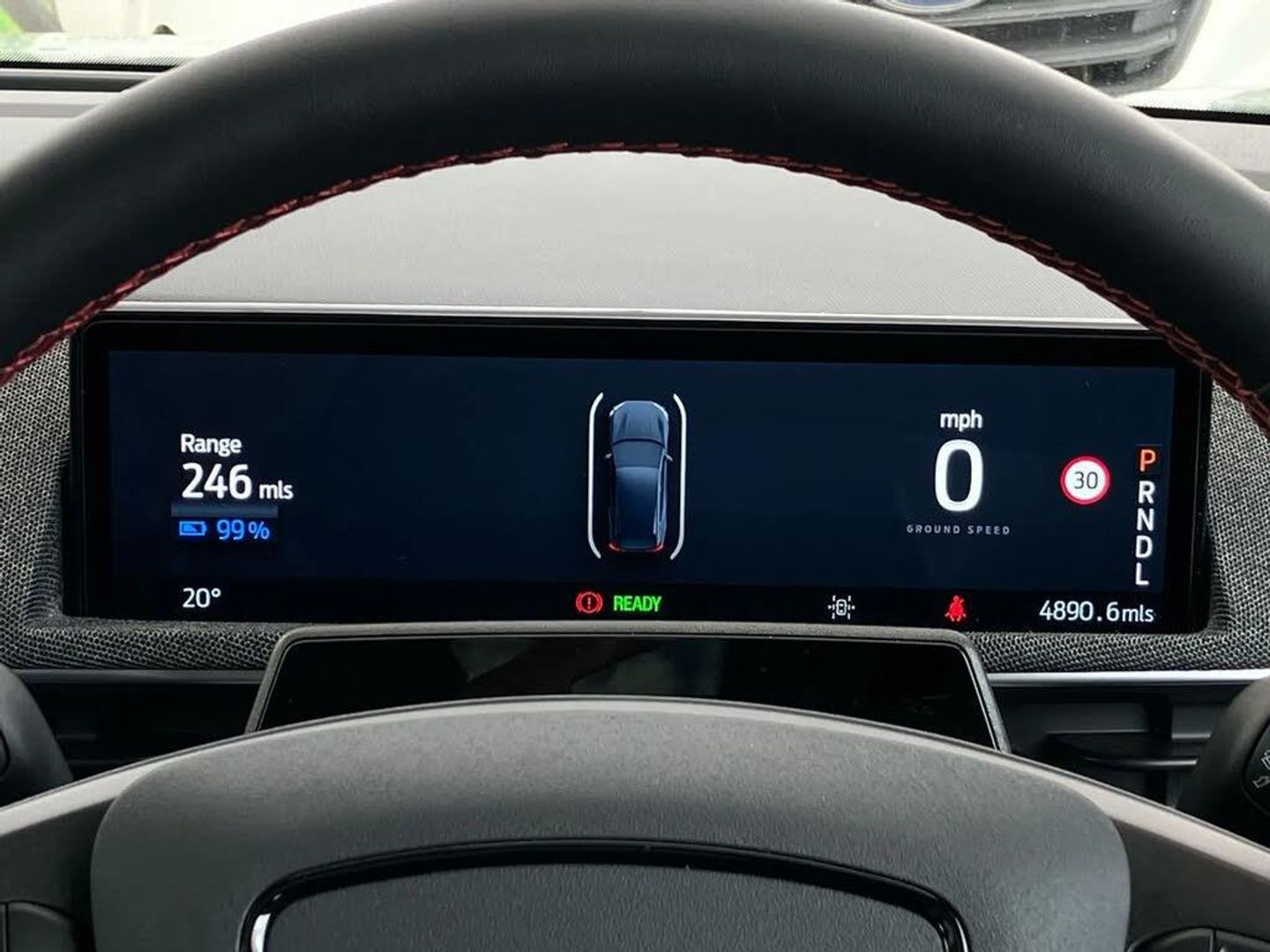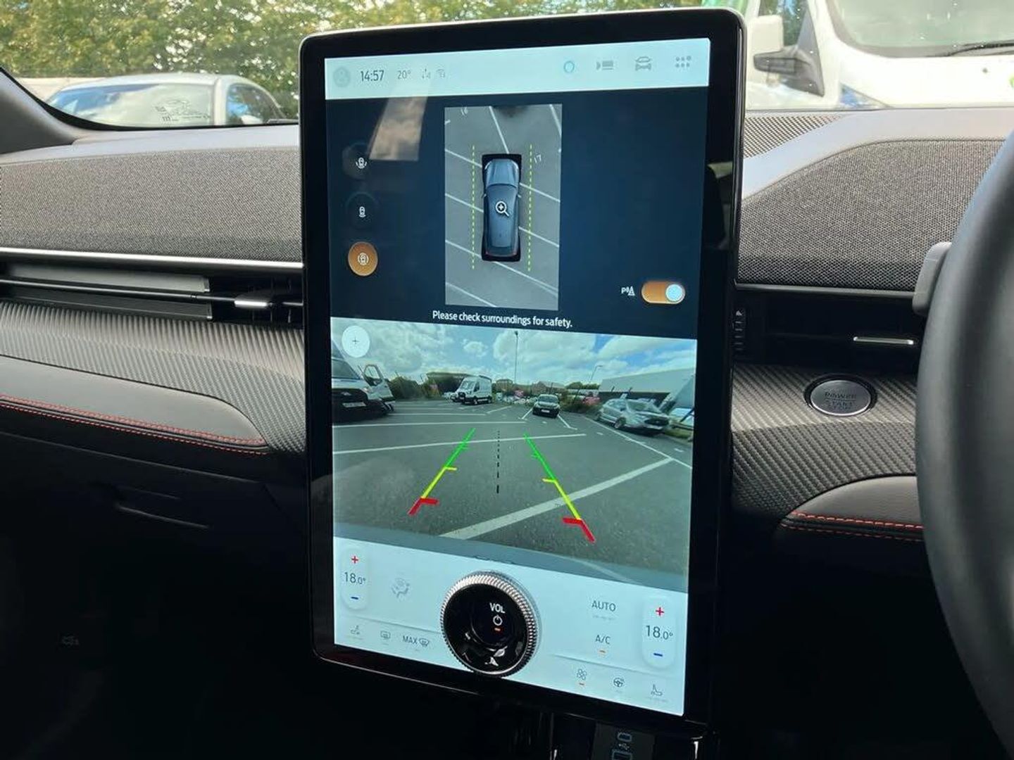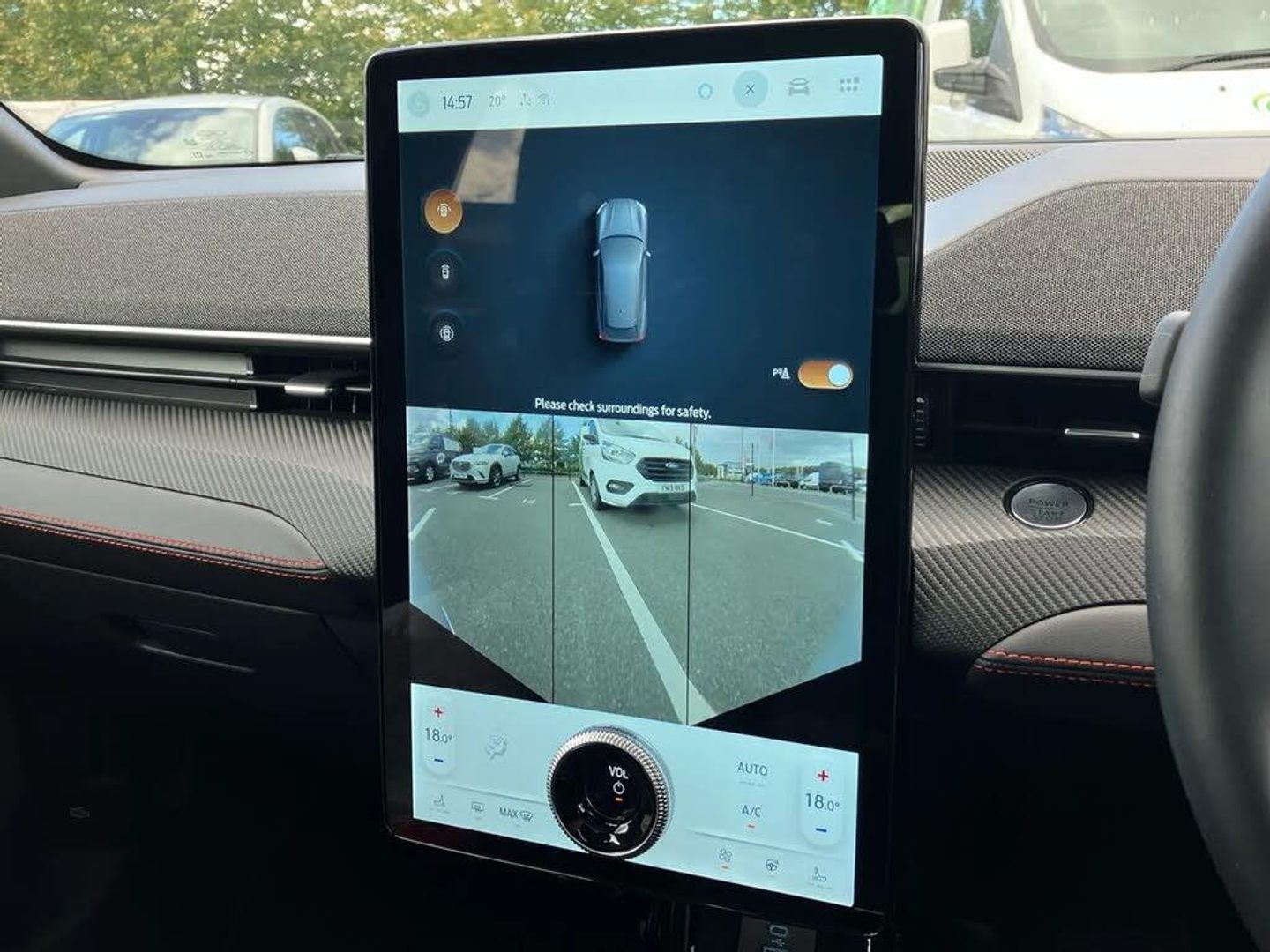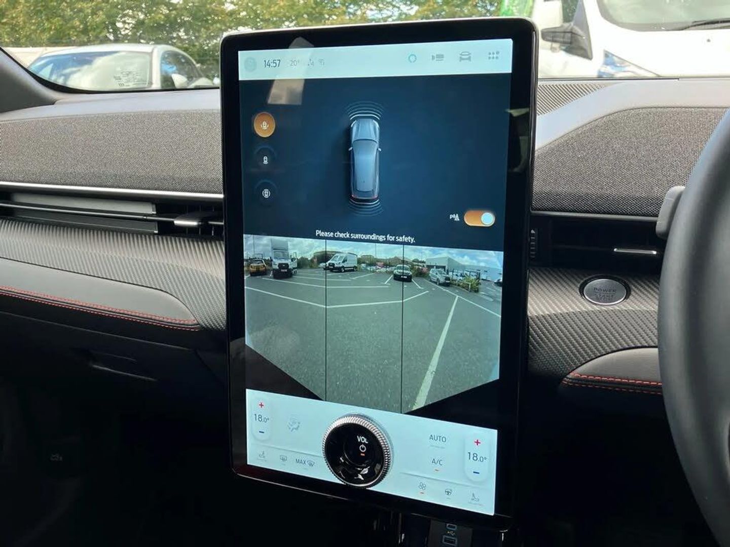 10.2" digital insturment cluster,360 degree camera,Applink remote control system,BLIS (Blind Spot Information System) with cross traffic alert,Distance alert and indication system,Electric power steering,Emergency services call system,Ford SYNC4A with 15.5"Touch,DAB radio,Emer assist,Wireless carplay androidauto,2 front,rear USB ports,FordPass connect,Connected naviation,Front and rear parking sensors,Hands free tailgate,Intelligent adaptive cruise control with stop and go + lane centering,Lane departure warning with lane keeping aid,Selectable drive modes - active, whisper and untamed,Trip computer,Wireless charging pad,11 kW AC onboard charger,150kw high powered charging,Dual motor permanent all wheel drive,Universal home charging cable and public charging cable,B and O premium sound system 10 speaker including dashboard sound bar,Adaptive LED Mustang signature headllamps,Black painted power fold heated mirrors with puddle light mustang logo projection,Blade front grille design,Body colour bumpers,Daytime running lights,Fixed full panoramic roof,LED 3rd brake light,LED Mustang signature tail lights,Quickclear heated windscreen,Rear privacy glass,Rear side wing doors,Rear wiper,Side cladding and wheel arches in piano black,3 seat bench in 2nd row,8 way power driver seats with lumbar support,8 way power passenger seats with lumbar support,Ambient lighting,Dual electronic automatic temperature control,Front headrests,Front trunk,Heated front seats and steering wheel,One pedal drive,Perforated full sensico artificial leather upholstery,Rear head restraints,Single front passenger seat,3 point rear seatbelts,ABS,Child locks on rear doors,ESP,Evasive steering assist,Pre collision assist inc Collision mitigation, Forward collision warning, Dynamic brake support, Automated emergency braking,E-Latch keyless entry system including B-Pillar keypad access,Keyless Start,Thatcham Cat.1 alarm,Glacier Grey,Perforated Sensico - Black with Red Stitching