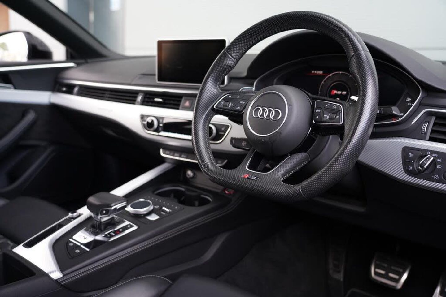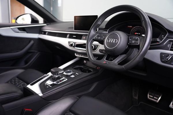 6-Airbag System, ABS - Anti-Lock Braking System, Anti-Theft Alarm, Audi Connect Infotainment Services - 36 Month Trial, Audi Connect Safety and Service, Audi Side Assist, Audi Smartphone Interface, Audi Sound System, Audi Virtual Cockpit, Auto-Dimming Rear-View Mirror, Cloth Headlining in Black, DAB Digital Radio Reception, Deluxe 3-Zone Electronic Climate Control, Door Mirrors - Electrically Folding - Adjustable and Heated with Integrated LED Side Indicators and Kerb-view Function for Passenger Side, Door Mirrors - Matt Aluminium Look Housings, Door Sill Trims - Illuminated with RS5 Logo, Electric Windows - Front, Electrically Adjustable Front Seats, Electromechanical Power Steering, First Aid Kit and Warning Triangle, Flat-Bottomed High Multi-function 3-Spoke Leather Sport Steering Wheel with RS Badging, Front Centre Armrest, Front and Rear Floor Mats, Heated Front Seats, High-Beam Assist, Hill Hold Assist, Inlays - Aluminium Race, LED Headlights with LED Rear Lights and Dynamic Rear Indicators, LED Interior Light Package, Leather Door Armrests and Knee Pad, Lumbar Support - Pneumatically Adjustable with Massage Function, MMI Navigation Plus including MMI Touch, Multi Collision Brake Assist, Pedals and Footrest - Stainless Steel, Pop-Up Bonnet for Pedestrian Protection, Pre-Sense City, RS Audi Drive Select, RS Body Styling, RS Exhaust System, RS Sports Suspension, RS-Specific Gear Lever Knob in Perforated Leather with Contrast Stitching, Remote Control Key with RS Emblem, Seat Belt Monitoring, Space Saver Spare Wheel, Split-Folding 2-Seater Rear Seat Bench in 3 Parts - 40-20-40 with Rear Centre Armrest, Tool Kit and Car Jack, Windscreen with Acoustic Glazing, quattro with Sports Differential, 20in Alloy Wheels - 5-Arm-trapezoid Design Forged in Anthracite Black - Diamond Cut Finish, RS Sports Exhaust System, Black Styling Package, Privacy Glass