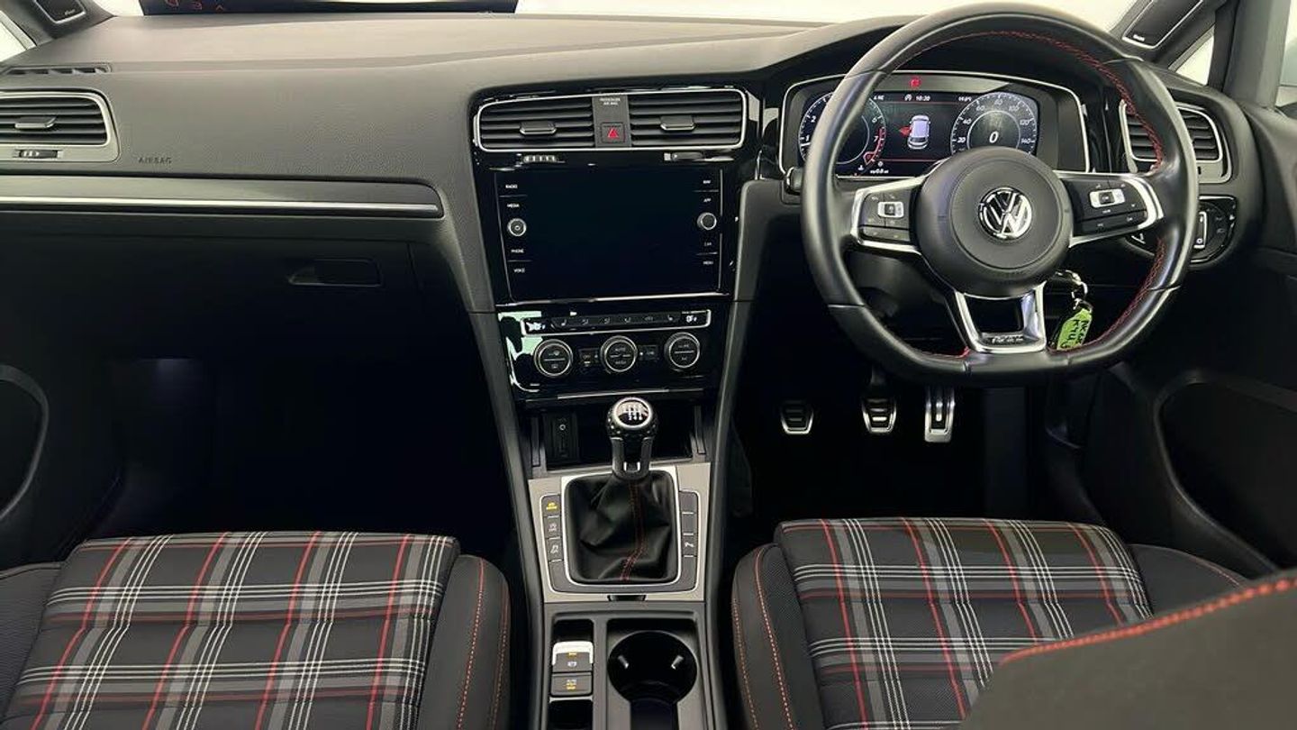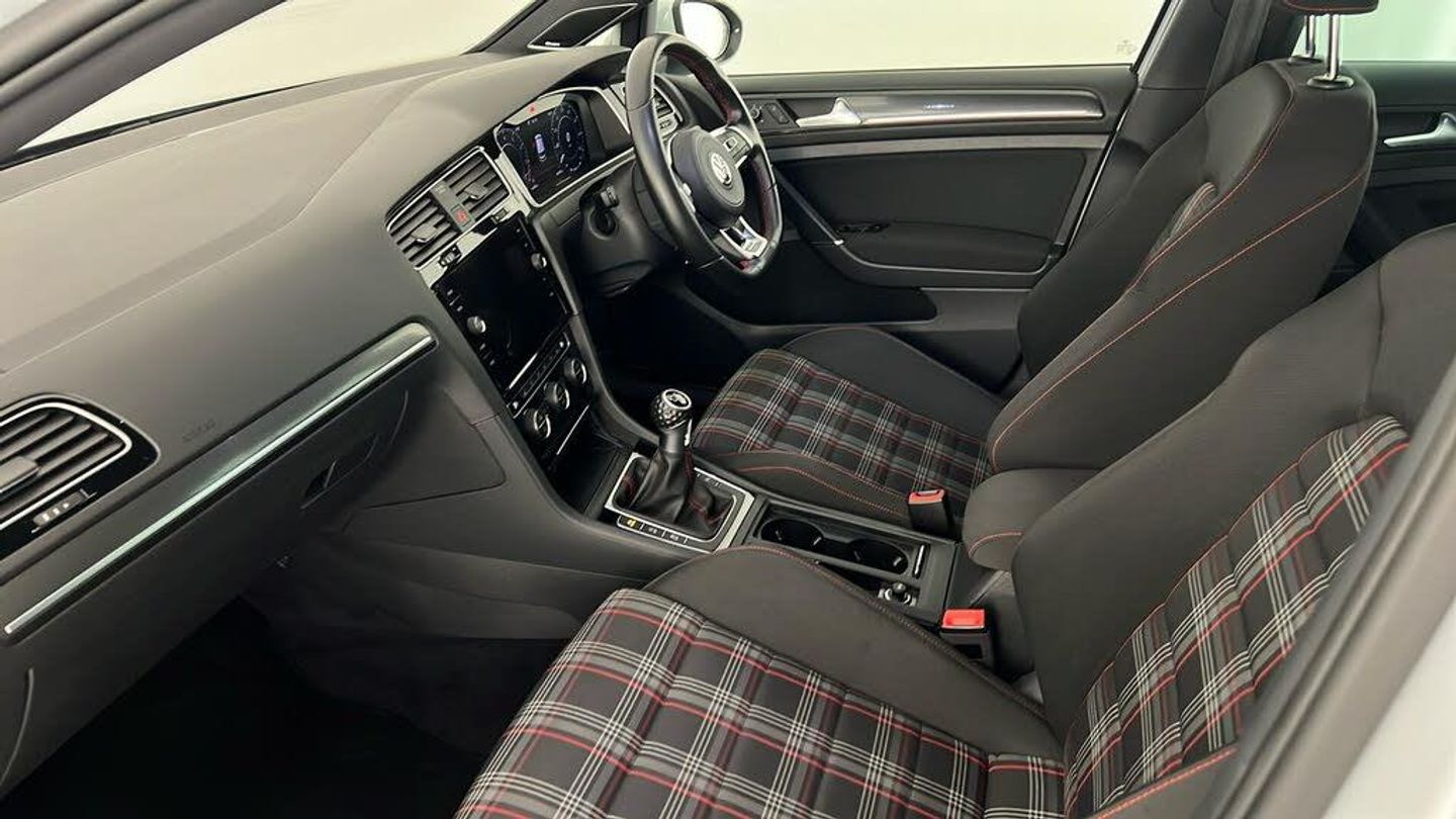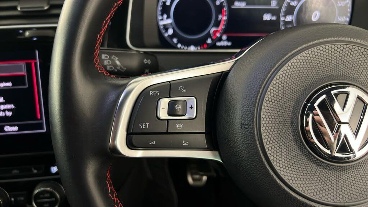 Dynaudio Excite Soundpack, Heated Front Climate Windscreen, Jacara Cloth - Titan Black-Red, 18in Alloy Wheels - Parker, Adaptive Cruise Control, Climate Control, Heated Front Seats, 12V Socket - Luggage Compartment, ABS - Anti-Lock Braking System with HBA - Hydraulic Brake Assist, Active Info Display, Airbags, Alarm with Interior Protection, Ambient Lighting, Ambient Lighting Pack, Anti-Tramp Function, Automatic Coming-Leaving Home Lighting Function, Automatic Post-Collision Braking System, Bag Hooks in the Luggage Compartment x2, Black Rooflining, Body Coloured Bumpers, Body Coloured Door Handles, Body-Coloured Door Mirrors with Integrated Indicators, Brake Calipers - Red with GTI Logo, Brake Pad Wear Indicator, Car-Net App Connect, Car-Net Security and Service including eCall, Carpet Mats - Front and Rear, Child Security Locks in the Rear Doors, Chrome Plated Air Vent Surrounds, Chrome Plated Electric Mirror Adjustment Switch Surround, Chrome Plated Electric Window Button Surrounds, Chrome Trimmed Front Air Intake Surround, Chrome-Plated Light Switch Surround, Composition Media System, Convenience Pack, Cover for Storage Compartment in Centre Console, Cup Holders - Front x2, Discover Navigation Touch-Screen Navigation-Radio System with Car-Net Guide and Inform, Driver Alert System, Driver Personalisation Profile, Drivers and Passengers Safety Optimised Head Restraints, Driving Mode Selection, Dusk Sensor - Automatic Driving Lights, Dust and Pollen Filter, ESC - Electronic Stability Control including EDL - Electronic Differential Lock and ASR - Traction Control with Deactivation via Infotainment System, Electric Windows - Front and Rear, Electronic Engine Immobiliser, Electronic Parking Brake with Auto Hold Function, Extended Sill Strips - Flared, Front Assist, Front Centre Armrest with Storage Compartment and Two Rear Air Vents, Front Fog Lights - LED, Front Footwell Illumination, Front Seat Back Storage Pockets, Front Sport Seats with Height and Lumbar Adjustment, GTI Sports Suspension - Lowered, GTI Styling Pack, Galvanised Body, Glovebox - Cooled, Grab Handles - Front x2 Rear x2 with Coat Hooks, Headlight Washers, Heated Rear Windscreen, Heated Windscreen Washer Jets, Height-Adjustable Front Three-Point Seat Belts with Tensioners, High Level 3rd Brake Light Incorporating LED Technology, Honeycomb Black Decorative Inserts in Dash and Door Panels, Honeycomb Radiator Grille with Red Stripe, ISOFIX Child Seat Preparation for 2 Rear Seats, Illuminated Door Sill Protectors, Instrument Lighting - White Adjustable Panel Illumination, Interior Light Delay, Keyless Entry, LED Headlights with Dynamic Curve Light, LED Headlights with Dynamic Light Assist, LED Tinted Rear Light Clusters, Lane Assist inc. Traffic Sign Recognition in Conjunction with Dynamic Light Assist, Lights on Warning Buzzer, Load Lashing Points x4 in Luggage Compartment, Load-Through Provision, Low Washer Fluid Warning Light, Luggage Compartment Cover - Stowable, Luggage Compartment Light, Luggage Compartment Storage Area on Left and Right, Lumbar Support for Drivers and Front Passenger Seat, Mechanical Limited Slip Differential, Mirror Pack, Multifunction Computer, Parking Sensors - Front and Rear, Piano Black Decorative Inserts in Centre Console, Pre-Crash Preventive Occupant Protection, Predictive Pedestrian Protection, Premium USB Cable, Progressive Steering, Rain Sensor and Automatic Dimming Rear-View Mirror, Reading Lights Front x2 and Rear x2 - LED, Rear Centre Armrest - Folding with Cup Holders x2, Rear Diffuser in Black with Chrome Exhaust Tailpipes Left and Right, Rear Lights Incorporating LED Technology, Rear Number Plate Lights Incorporating LED Technology, Rear Screen Wash-Wipe with Intermittent Wipe, Rear Tinted Glass - B Pillar Backwards - Approx 65 Percent Tinted, Rear View Camera, Rear Window Aerial, Reflectors in Doors, Remote Central Locking with 2 Remote Folding Keys, Remote Electrically Foldable Door Mirrors - Door Mirror Puddle Lights and Reverse Activated Kerb-View Adjustment on Passengers Door Mirrors, Speedo and Rev Counter - Electronic Odometer - Trip - Service Interval Display - Exterior Temperature Gauge and Fuel Gauge, Split Folding Rear Backrests 60-40, Stainless Steel Pedals - Clutch - Brake and Accelerator, Steel Space Saver Spare Wheel, Steering Column - Height and Reach Adjustable, Steering Wheel - Multifunction - Leather Trimmed, Storage Compartment in Centre Console, Storage Compartment in Front Doors, Storage Compartment in Rear Doors, Storage Compartment in Roof Console with Cover, Tailgate with Integrated Rear Roof Spoiler, Three Rear 3-Point Seat Belts, Three Rear Head Restraints, Tyre Pressure Loss Indicator, Unique GTI Badging - Front and Rear Red, Unique GTI Instrument Cluster, Vanity Mirrors - Illuminated, Variable Boot Floor - Height Adjustable and Removable, Warning Buzzer and Light for Front Seat Belts if Unfastened, Windscreen Wiper with Intermittent Wipe and 4 Position Delay, Winter Pack, XDS Electronic Differential Lock for Improved Traction and Handling