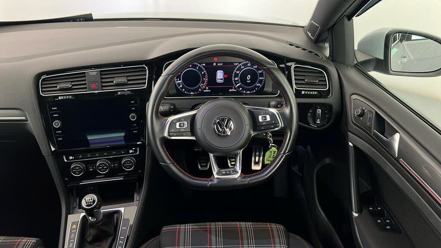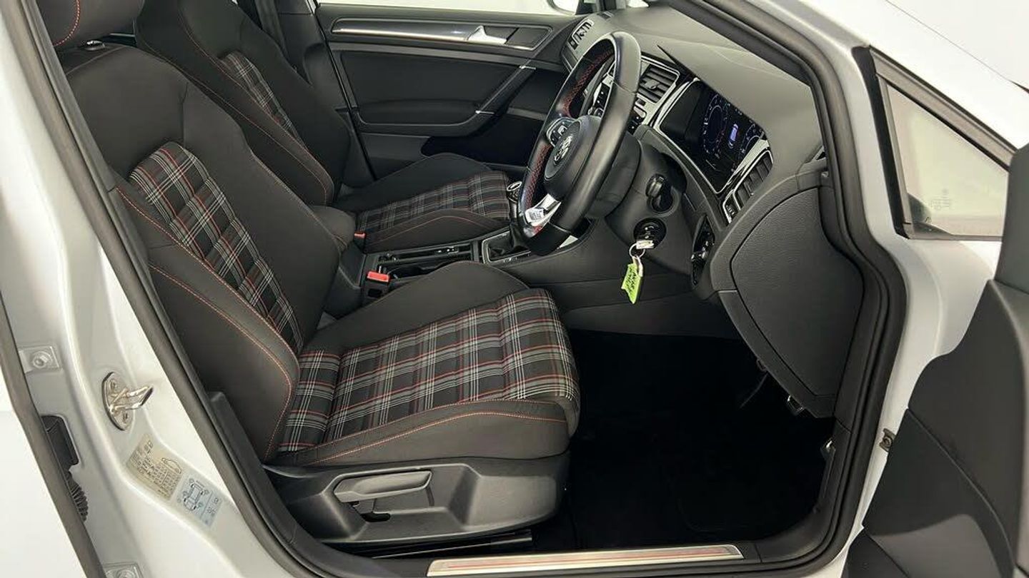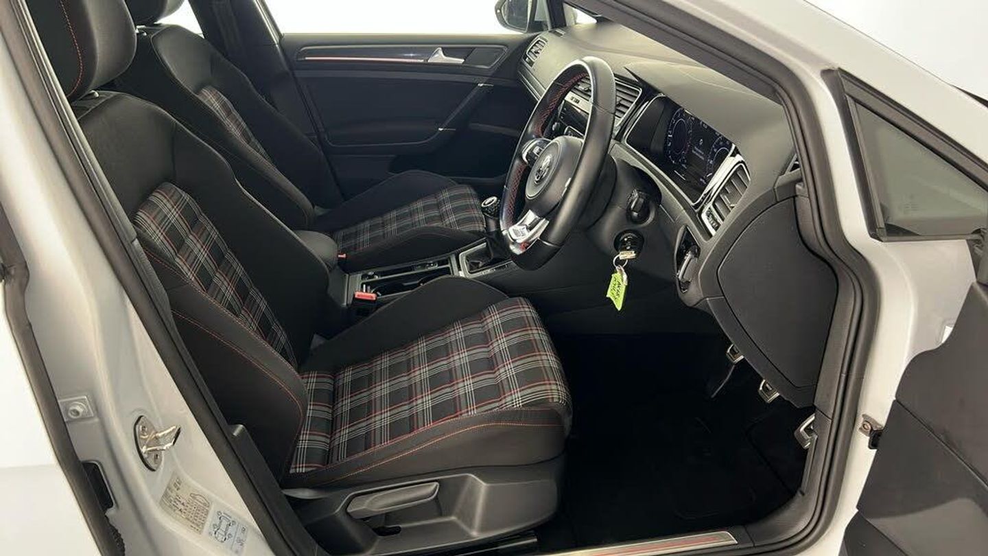 Dynaudio Excite Soundpack, Heated Front Climate Windscreen, Jacara Cloth - Titan Black-Red, 18in Alloy Wheels - Parker, Adaptive Cruise Control, Climate Control, Heated Front Seats, 12V Socket - Luggage Compartment, ABS - Anti-Lock Braking System with HBA - Hydraulic Brake Assist, Active Info Display, Airbags, Alarm with Interior Protection, Ambient Lighting, Ambient Lighting Pack, Anti-Tramp Function, Automatic Coming-Leaving Home Lighting Function, Automatic Post-Collision Braking System, Bag Hooks in the Luggage Compartment x2, Black Rooflining, Body Coloured Bumpers, Body Coloured Door Handles, Body-Coloured Door Mirrors with Integrated Indicators, Brake Calipers - Red with GTI Logo, Brake Pad Wear Indicator, Car-Net App Connect, Car-Net Security and Service including eCall, Carpet Mats - Front and Rear, Child Security Locks in the Rear Doors, Chrome Plated Air Vent Surrounds, Chrome Plated Electric Mirror Adjustment Switch Surround, Chrome Plated Electric Window Button Surrounds, Chrome Trimmed Front Air Intake Surround, Chrome-Plated Light Switch Surround, Composition Media System, Convenience Pack, Cover for Storage Compartment in Centre Console, Cup Holders - Front x2, Discover Navigation Touch-Screen Navigation-Radio System with Car-Net Guide and Inform, Driver Alert System, Driver Personalisation Profile, Drivers and Passengers Safety Optimised Head Restraints, Driving Mode Selection, Dusk Sensor - Automatic Driving Lights, Dust and Pollen Filter, ESC - Electronic Stability Control including EDL - Electronic Differential Lock and ASR - Traction Control with Deactivation via Infotainment System, Electric Windows - Front and Rear, Electronic Engine Immobiliser, Electronic Parking Brake with Auto Hold Function, Extended Sill Strips - Flared, Front Assist, Front Centre Armrest with Storage Compartment and Two Rear Air Vents, Front Fog Lights - LED, Front Footwell Illumination, Front Seat Back Storage Pockets, Front Sport Seats with Height and Lumbar Adjustment, GTI Sports Suspension - Lowered, GTI Styling Pack, Galvanised Body, Glovebox - Cooled, Grab Handles - Front x2 Rear x2 with Coat Hooks, Headlight Washers, Heated Rear Windscreen, Heated Windscreen Washer Jets, Height-Adjustable Front Three-Point Seat Belts with Tensioners, High Level 3rd Brake Light Incorporating LED Technology, Honeycomb Black Decorative Inserts in Dash and Door Panels, Honeycomb Radiator Grille with Red Stripe, ISOFIX Child Seat Preparation for 2 Rear Seats, Illuminated Door Sill Protectors, Instrument Lighting - White Adjustable Panel Illumination, Interior Light Delay, Keyless Entry, LED Headlights with Dynamic Curve Light, LED Headlights with Dynamic Light Assist, LED Tinted Rear Light Clusters, Lane Assist inc. Traffic Sign Recognition in Conjunction with Dynamic Light Assist, Lights on Warning Buzzer, Load Lashing Points x4 in Luggage Compartment, Load-Through Provision, Low Washer Fluid Warning Light, Luggage Compartment Cover - Stowable, Luggage Compartment Light, Luggage Compartment Storage Area on Left and Right, Lumbar Support for Drivers and Front Passenger Seat, Mechanical Limited Slip Differential, Mirror Pack, Multifunction Computer, Parking Sensors - Front and Rear, Piano Black Decorative Inserts in Centre Console, Pre-Crash Preventive Occupant Protection, Predictive Pedestrian Protection, Premium USB Cable, Progressive Steering, Rain Sensor and Automatic Dimming Rear-View Mirror, Reading Lights Front x2 and Rear x2 - LED, Rear Centre Armrest - Folding with Cup Holders x2, Rear Diffuser in Black with Chrome Exhaust Tailpipes Left and Right, Rear Lights Incorporating LED Technology, Rear Number Plate Lights Incorporating LED Technology, Rear Screen Wash-Wipe with Intermittent Wipe, Rear Tinted Glass - B Pillar Backwards - Approx 65 Percent Tinted, Rear View Camera, Rear Window Aerial, Reflectors in Doors, Remote Central Locking with 2 Remote Folding Keys, Remote Electrically Foldable Door Mirrors - Door Mirror Puddle Lights and Reverse Activated Kerb-View Adjustment on Passengers Door Mirrors, Speedo and Rev Counter - Electronic Odometer - Trip - Service Interval Display - Exterior Temperature Gauge and Fuel Gauge, Split Folding Rear Backrests 60-40, Stainless Steel Pedals - Clutch - Brake and Accelerator, Steel Space Saver Spare Wheel, Steering Column - Height and Reach Adjustable, Steering Wheel - Multifunction - Leather Trimmed, Storage Compartment in Centre Console, Storage Compartment in Front Doors, Storage Compartment in Rear Doors, Storage Compartment in Roof Console with Cover, Tailgate with Integrated Rear Roof Spoiler, Three Rear 3-Point Seat Belts, Three Rear Head Restraints, Tyre Pressure Loss Indicator, Unique GTI Badging - Front and Rear Red, Unique GTI Instrument Cluster, Vanity Mirrors - Illuminated, Variable Boot Floor - Height Adjustable and Removable, Warning Buzzer and Light for Front Seat Belts if Unfastened, Windscreen Wiper with Intermittent Wipe and 4 Position Delay, Winter Pack, XDS Electronic Differential Lock for Improved Traction and Handling