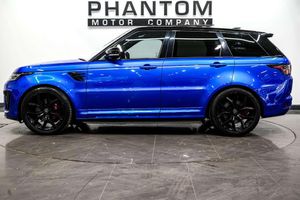 STRICT APPOINTMENT ONLY, 2025 AUTOTRADER HIGHLY RATED AWARD WINNER, LOW RATE FINANCE. Nationwide delivery available. Introducing the Land Rover Range Rover Sport, a true icon of luxury and performance. With only 36698 miles on the clock, this stunning vehicle is ready to take you on your next adventure in style. Coming with service history at 12k and 14k miles. Finished in a sleek and sophisticated Blue, the Range Rover Sport is sure to turn heads wherever you go. But it's not just about looks - under the hood, you'll find a powerful 5.0 Supercharged V8 engine that delivers exhilarating performance on and off the road. Equipped with some incredible specification including: 21in alloy wheels 5 split-spoke style 5091 satin polish, body coloured carbon fibre bonnet, pixel LED headlights with signature DRL, SVR performance seats, SVR leather steering wheel, SVR engine cover, illuminated metal treadplates with brand script, heated front and rear seats, heated steering wheel, heated windscreen and washer jets, adaptive cruise control with stop and go, 360-degree parking aid, rear view camera, blind spot monitor, rear traffic monitor, lane departure warning, driver condition monitor, traffic sign recognition with adaptive speed limiter, autonomous emergency braking, high speed emergency braking, configurable dynamics, adaptive dynamics, sports suspension with dynamic response, terrain response 2 with dynamic program, electronic active differential with torque vectoring by braking, switchable active sports exhaust, lightweight exhaust system with quad finishers, red SV painted brake calipers, three-zone climate control, navigation pro with touch pro duo dual 10in screens, Meridian surround sound system 825W, configurable interior mood lighting and much more! Whether you're navigating city streets or tackling rugged terrain, the Land Rover Range Rover Sport is the perfect companion for any journey. Call or email us to book a viewing at our indoor heated showroom.