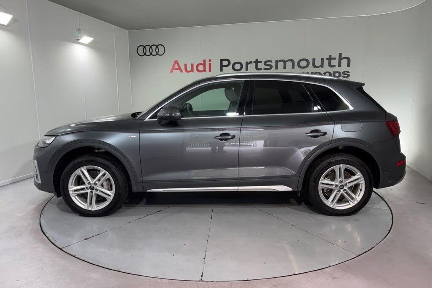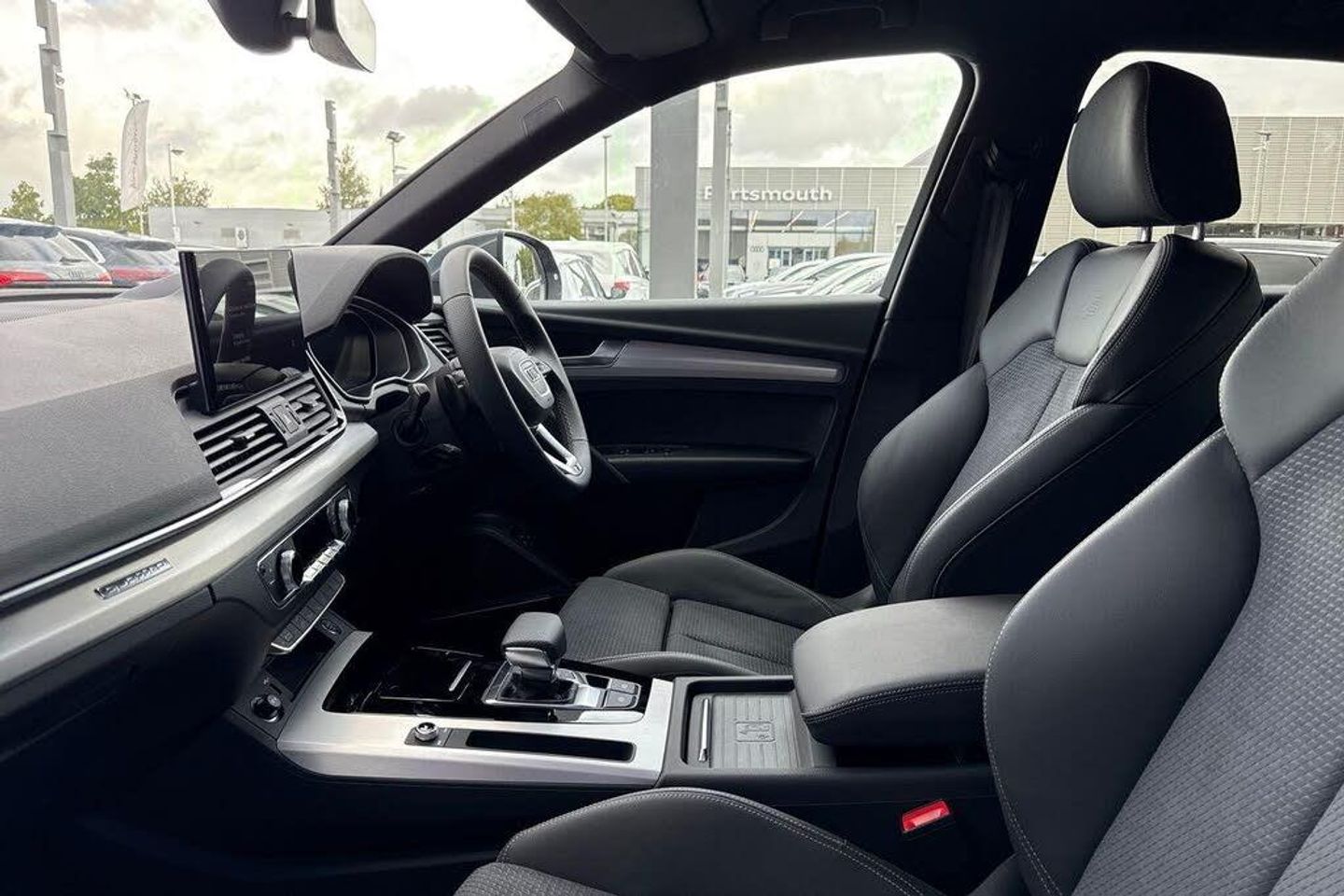 **GENUINE MILEAGE**TECHNOLOGY PACKAGE ( PARK ASSIST PLUS, MATRIX LED HEADLAMPS WITH DYNAMIC LIGHT DESIGN & DYNAMIC TURN SIGNAL, EXTENDED LED INTERIOR LIGHTING, BANG & OLUFSEN SOUND SYSTEM, USB CHARGING INTERFACE IN REAR SEATS, LED REAR LIGHT PRO, HEADLIGHT CLEANING SYSTEM, AUDI PHONE BOX WITH WIRELESS CHARGING ) SATELLITE NAVIGATION, REAR PARKING CAMERA, MULTI FUNCTION STEERING WHEEL, HILL HOLD ASSIST, CRUISE CONTROL, AUDI VIRTUAL COCKPIT, LANE DEPARTURE WARNING, APPLE CARPLAY, ANDROID AUTO, DAB RADIO, SPLIT FOLDING REAR SEATS, LIGHT & RAIN SENSOR, AUTO DIMMING REAR VIEW MIRROR, SELECTABLE DRIVING MODES, PUSH BUTTON START, DAYTONA GREY WITH LEATHER/ALCANTARA UPHOLSTERY, 19'' DIAMOND CUT ALLOY WHEELS, DUAL ZONE CLIMATE CONTROL, HEATED FRONT SEATS WITH LUMBAR SUPPORT, VOICE ACTIVATED CONTROLS AND MUCH MORE.All Audi Approved used cars are offered with a 12-month warranty and roadside assistance.This car comes with the balance of the manufacturers warranty.Portsmouth Audi are delighted to offer this Audi Q5 in Daytona grey over Alcantara/ Leather and has completed just 27 miles., We are proud to be part of the Harwoods group, a family run business established in 1931. With four Approved Audi retailers within our group, we have access to over 400 vehicles. If this isn't the right car for you, please contact us and we will find it. Our group stock has spec to include Sunroof, Leather, Heated Seats, Apple Car Play, Heated Steering Wheel, Reverse Camera, Rear Entertainment, Towbar, 360-degree camera, Comfort & Sound Pack, Tech Pack, Panoramic Sun Roof, Tow Bar, Black Pack, Air Suspension, Apple Carplay, Adaptive Cruise, Massage Seats, Refrigerator, AWD, Technology Pack, Head up Display, Vorsprung, Technik, Black Edition, S-Line, S Line, Edition 1, TFSI, Quattro, Sportback, LWB. Other colour options including Black, Blue, Green, Silver, White, Red, Grey, Yellow, Orange. Interior options of Ebony, Black, Ivory, White, Tan, Cream, Oyster, & Euro 6 ULEZ compliant drive trains.-TECHNOLOGY PACKAGE-Video Presentation available on Request