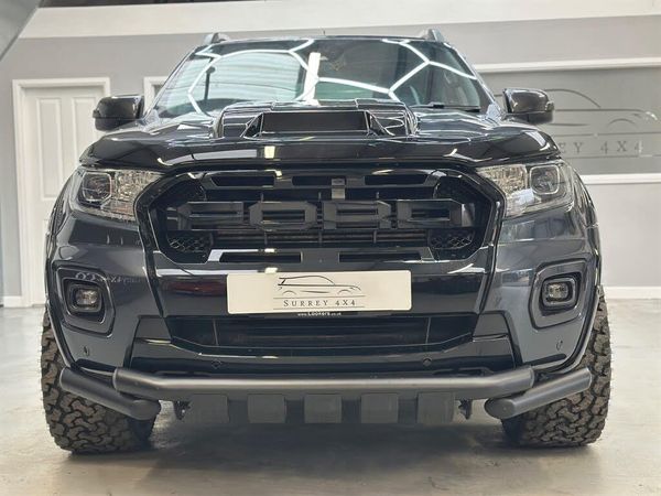 INC VAT. STUNNING TOP OF THE RANGE 2.0 LITRE BI TURBO FACE LIFT FORD RANGER WILDTRAK AUTOMATIC WITH BLACK LEATHER SEATS, AUTO FULL BEAM ASSIST, SATELLITE NAVIGATION, REVERSE CAMERA, LED, BLUETOOTH, AUX, MULTI FUNCTION STEERING WHEEL, ELECTRIC WINDOWS, ELECTRIC HEATED SEATS, TOUCH SCREEN, ELECTRIC MIRRORS, AIR CONDITIONING, EURO 6, SYNC 3, ISOFIX, NEW GLOSS BLACK FORD RAPTOR GRILL, NEW 20 INCH BLACK ALLOYS WITH NEW ALL TERRAIN TYRES, APPLE CAR PLAY, LOCKABLE REAR ROLLER SHUTTER, NEW FRONT NUDGE BAR, NEW BONNET SCOOP WHICH IS FITTED AT CUSTOMER CHOICE, NEW GLOSS BLACK RAPTOR ARCHES, ULEZ. 2 KEYS, FULL SERVICE HISTORY WITH SERVICE JUST CARRIED OUT, 12 MONTHS MOT UNTIL SEPTEMBER 2026 WITH NO ADVISORIES. FINANCE AVAILABLE FROM 9.9% APR WITH HP OR PCP OPTIONS AVAILABLE AND ANY PART EXCHANGE WELCOME. CALL OUR SALES LINE ON 01483-959939 TO BOOK AN APPOINTMENT OR WHATSAPP US ON 07515596289 PLEASE VISIT OUR WEBSITE FOR MORE PICTURES WWW.SURREY4X4.COM
