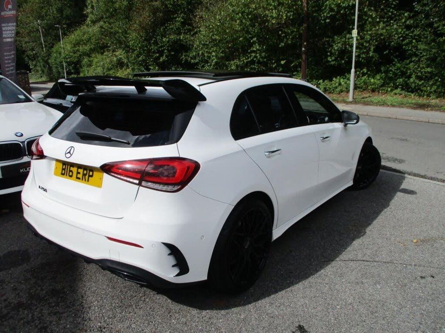 HERE WE HAVE A STUNNING MERCEDES A250 AMG LINE PREMIUM PLUS AUTOMATIC WITH BLACK PACK -UPRATED ALLOYS- ENGINE UPGRADE IN BRILLIANT WHITE AND BLACK. THE CAR COMES WITH ALL HANDBOOKS-MERCEDES SERVICE HISTORY-HPI CLEAR-2 KEYS !!. JUST UNDER £7K SPENT WITH PROJECT AMG ,SERVICED AND READY TO GO !! THE CAR HAS AMG FRONT GRILL IN GLOSS BLACK - BLACK BADGES-A45 REAR SPOILER-AREO KIT-PRIVACY GLASS-PANORAMIC ROOF -GLOSS BLACK ELECTRIC FOLDING MIRRORS-19" BLACK MULTI SPOKE ALLOYS-REVERSING CAMERA-NAV-HEATED SEATS-PADDLE SHIFTS-AIR CON-CLIMATE CONTROL-CRUISE CONTROL-MEMORY SEATS-AMBIENT LIGHTING-STOP/START-KEYLESS ENTRY ETC. MODERN TOUCHSCREEN DASHBOARD WITH MANY FEATURES AND LIGHTING AND APPS. THE INTERIOR IS A SPORTY BLACK HALF LEATHER AND GREY ALCANTARA WITH RED STITCHING WHICH IS UNMARKED.THE CAR DRIVES LIKE NEW AND ALL TEST DRIVES ARE WELCOME. WE OFFER GREAT FINANCE PACKAGES AND WE ALSO ACCEPT P/EX !! IT COMES WITH 1 YEARS AA BREAKDOWN COVER AND 6 MONTHS WARRANTY WITH OPTIONS TO EXTEND .