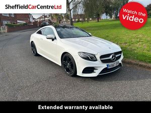 2018 (67) Used MERCEDES-BENZ E-CLASS 2.0 E220d AMG Line (Premium) Coupe 2dr is offered to you for sale in Sheffield, South Yorkshire, finished white. This used MERCEDES-BENZ E-CLASS 2.0 E220d AMG Line (Premium) Coupe 2dr is one of many used cars that used car dealer, Sheffield Car Centre Ltd, Sheffield, South Yorkshire have available for sale. For Only £99 you can extend your warranty to 3 Months RAC warranty & 12 months recovery with every used car Another fine example from Sheffield Car Centre specification to include Automatic/Auto Front Heated Sport Seats Parking Camera Park Assist Mercedes & Me Connect Bluetooth Multi Function Steering Wheel AMG Styling Ambient Lighting Cruise Control & Speed Limiter Heated Electric Wing Mirrors Steering Wheel Gear Shift Paddles Electric Windows Air Conditioning/Air Con 19 Inch Alloy Wheels Here at Sheffield Car Centre every one of our cars in stock comes with a Guarantee, and an official HPI check to ensure you are making the right decision when purchasing your new vehicle from us. Call us on 01142572030 or 07766025486. Trains from Sheffield central to Chapeltown every 25 mins, we also offer competitive finance packages and a Price Match Promise So you can rest assured you're making the right decision. Sunday viewing is now by appointment only, please contacted us to book a time slot. FRIENDLY, NO PRESSURE ENVIRONMENT - 30 YEARS EXPERIENCE - YOUR NEEDS PUT FIRST - ALL MODELS AVAILABLE.. 19in Alloy Wheels - 5-Twin-Spoke Design - Painted Titanium Grey with High-Sheen Finish,ABS - Anti-Lock Braking System,Active Bonnet - Pedestrian Safety which Detects an Impact and Raises Bonnet,Active Brake ASSIST,Active Park Assist,Adaptive Brake Assist with Hold Function and Brake Drying Function,Adaptive Brake Lights,Agility Control Suspension with Selective Damping System and Lowering by 15mm,Airbag - Kneebag for Driver,Airbags - Driver and Front Passenger with Extended Adaptivity for Front Passenger Airbag,Airbags - Headbags,Airbags - Sidebag for Driver and Front Passenger - Combined Thorax-Pelvis Bag,Airbags - Windowbags,Alarm System with Immobiliser and Interior Protection,AMG Bodystyling - Front and Rear Apron - Side Skirts,AMG Boot Lid Spoiler in Body Colour,Analogue Clock in Centre Console,Artico Leather Upper Dashboard with Contrast Stitching,ATTENTION Assist,Audio 20 USB,Automatic Child Seat Recognition Sensor,Automatic Climate Control - Two-Zone,Belt Feeder,Brake Wear Warning Display,Central Lock