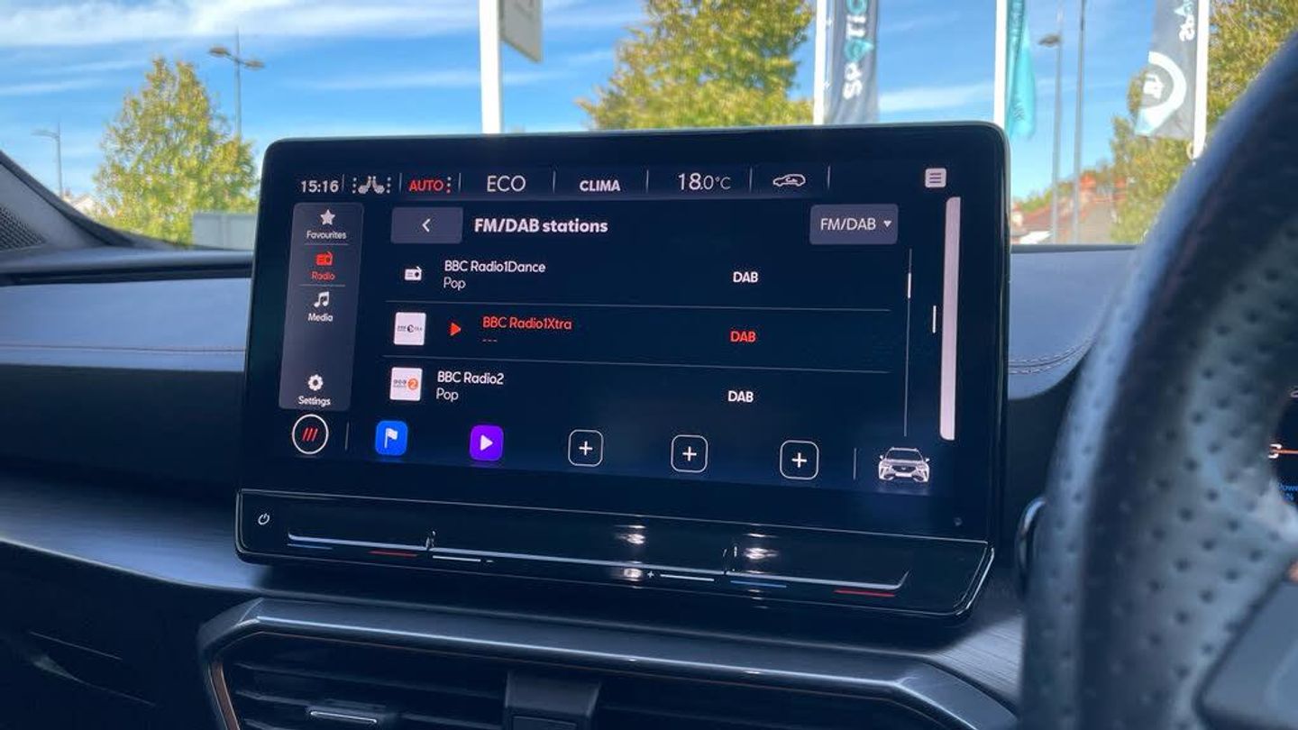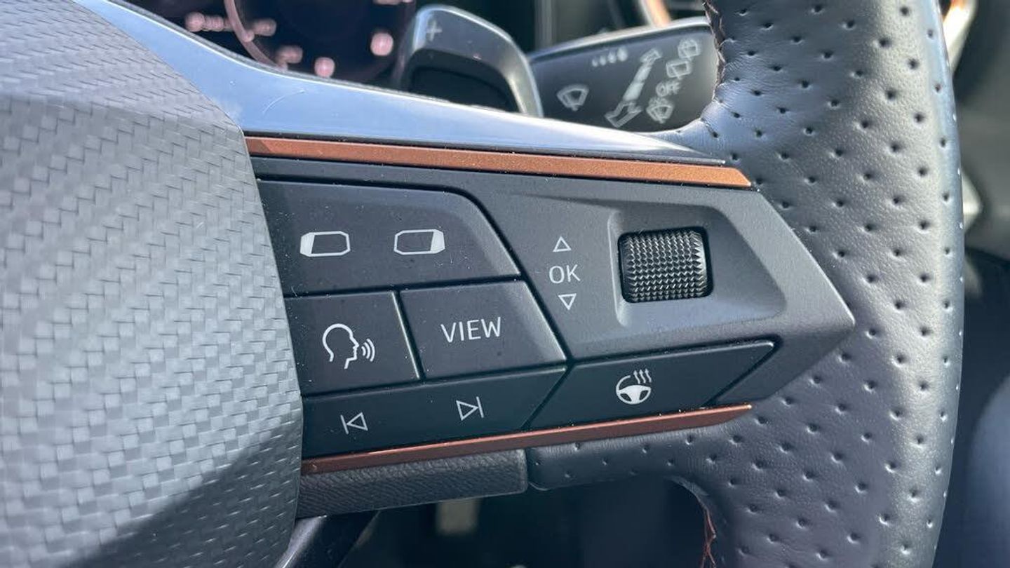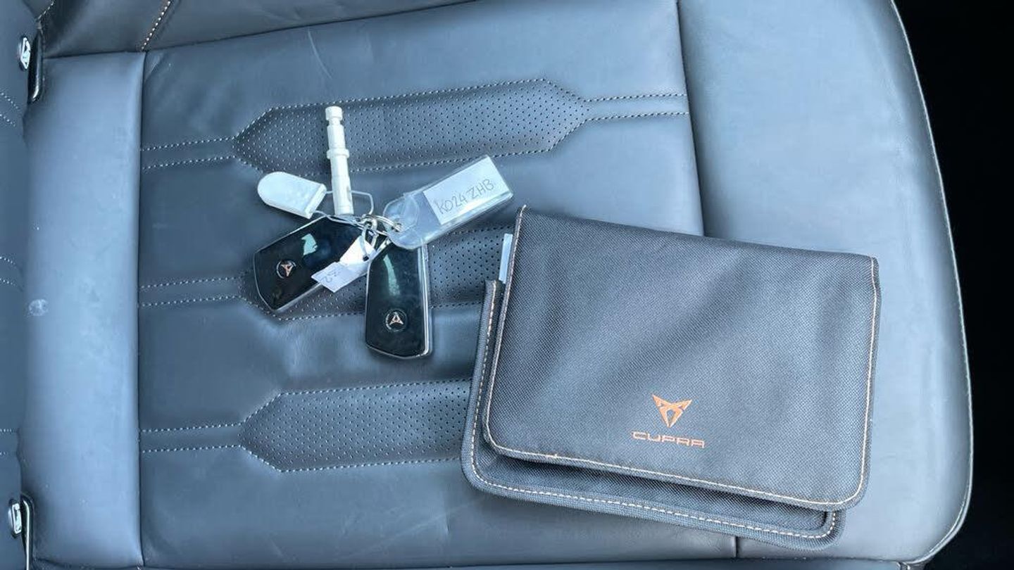 12V Socket, Navigation System, USB Type C x4 - x2 Front and x2 Rear, Wireless Phone Charger, Digital Cockpit and Configurable Dashboard, Driver Alert System, Driving Profile Selection, Forward Collision Warning with Automatic Braking, Park Assist - including Front and Rear Sensors, Predictive Adaptive Cruise Control with Speed Limiter, Rear View Camera, Tyre Pressure Monitoring System, 19in Alloy Wheels - Exclusive Machined Sport - Matt Black and Silver, Breakdown Kit, Electric Window - Front, Electrically Adjustable - Folding and Heated Door Mirrors with Memory Function, Electronic Locking Differential with Dynamic Traction Support, Gloss Black Roof Rails and Window Surrounds, Locking Wheel Bolts, Rear Diffuser with Black Simulated Exhaust Pipes, Tinted Rear Windows, Daytime Running Lights with Automatic Headlight Control and Coming-Leaving Home Lights, Dynamic Headlight Range Control, Front Fog Lights with Cornering Function, LED Headlight, LED Taillights with Dynamic Indicator, 60-40 Rear Seats with Central Armrest and Mechanical Seat Release, Auto Dimming Rear View Mirror, Copper and Aluminium Interior Detailing, Front and Rear Head Restraints, Front Centre Armrest, Headlining - Black, Illuminated Interior Front Door Sills, Illuminated Sunvisor with Mirror, Leather Multi-function Steering Wheel - Heated with Gear Shift Paddles, Rain Sensing Wipers, Reading Lights - 2x Front - 2x Rear, Smart Wraparound Interior Lighting, Three Zone Climate Control with Control Panel in the Rear, Welcome Lights, Charging Cable - Mode 2 - 10amp, Charging Cable - Mode 3 - 16amp, Power Steering, ABS - Anti-Lock Braking System, Airbag on Driver and Front Passenger Side with Front Passenger Airbag Deactivation, Anti-Theft Alarm, CUPRA Connect - Safety - Service - Remote and Online, Electronic Parking Brake, Front Side Curtain Airbag, ISOFIX, Kessy - Keyless Entry and Start, Lane Assist, Safety and Driving Pack M, Seat Belt Reminder, Nappa Leather - Black with Copper Stitching