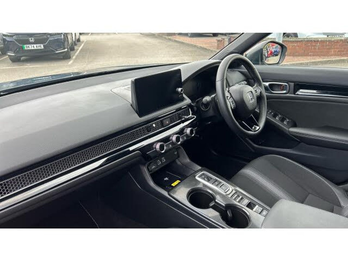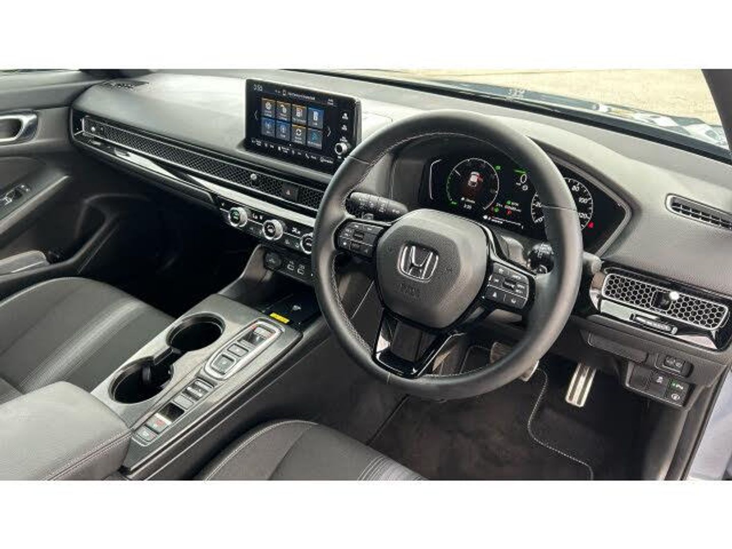the honda civic hatchback 2.0 eheV sport 5dr cvt, uk specification model year 2024, is a dynamic and efficient self-charging hybrid that blends sharp styling with practicality and advanced technology. powered by hondas e:hev system, it combines a 2.0-litre petrol engine with two electric motors to deliver 181bhp through an electronic cvt. the system automatically switches between electric, hybrid, and engine drive, providing smooth performance, strong fuel economy, and low emissions without the need for plug-in charging. the exterior design is sleek and modern, with a low, wide stance, sculpted body lines, and sporty details unique to the sport trim. these include distinctive alloy wheels, gloss black accents, and a more athletic front and rear styling package, giving the car a bold and confident road presence. inside, the sport trim offers a driver-focused cabin with high-quality materials and thoughtful ergonomics. features include sports seats with part-leather upholstery, a leather-wrapped steering wheel, and aluminium-style pedals for a more engaging feel. technology is centred around a 9-inch touchscreen infotainment system with navigation, dab radio, bluetooth, apple carplay, and android auto, paired with a digital drivers display providing key hybrid information. passenger space is generous, with excellent rear legroom and a versatile boot that makes the civic practical for everyday family use. safety is comprehensive thanks to honda sensing, which includes adaptive cruise control, lane keeping assist, collision mitigation braking, road departure mitigation, traffic sign recognition, and automatic high beam. additional features such as blind spot monitoring and cross traffic alert are also included for extra reassurance. overall, the 2024 honda civic 2.0 eheV sport delivers a compelling mix of sporty design, hybrid efficiency, advanced technology, and everyday usability, making it an excellent choice for drivers who want both style and substance in a family hatchback.