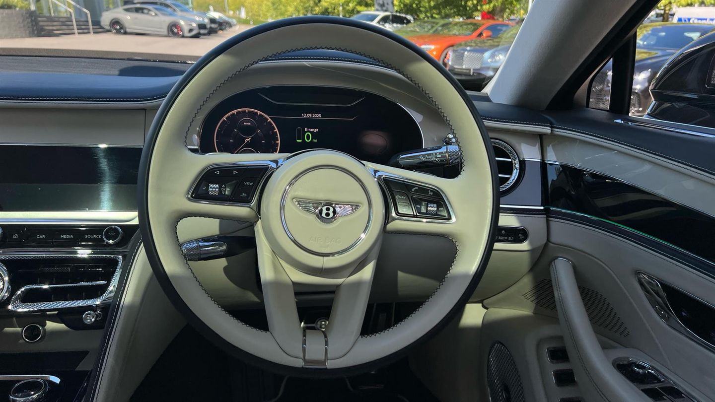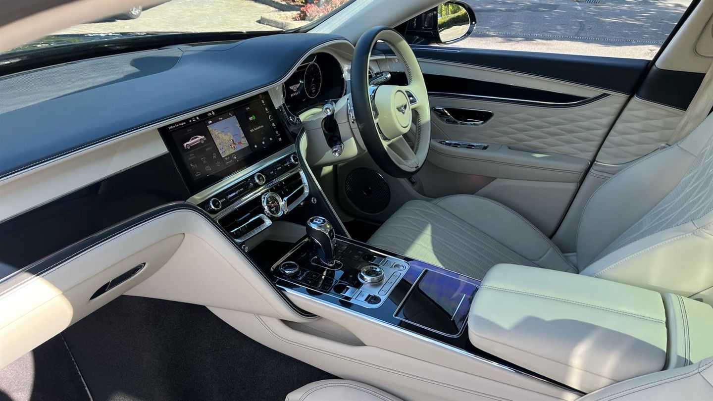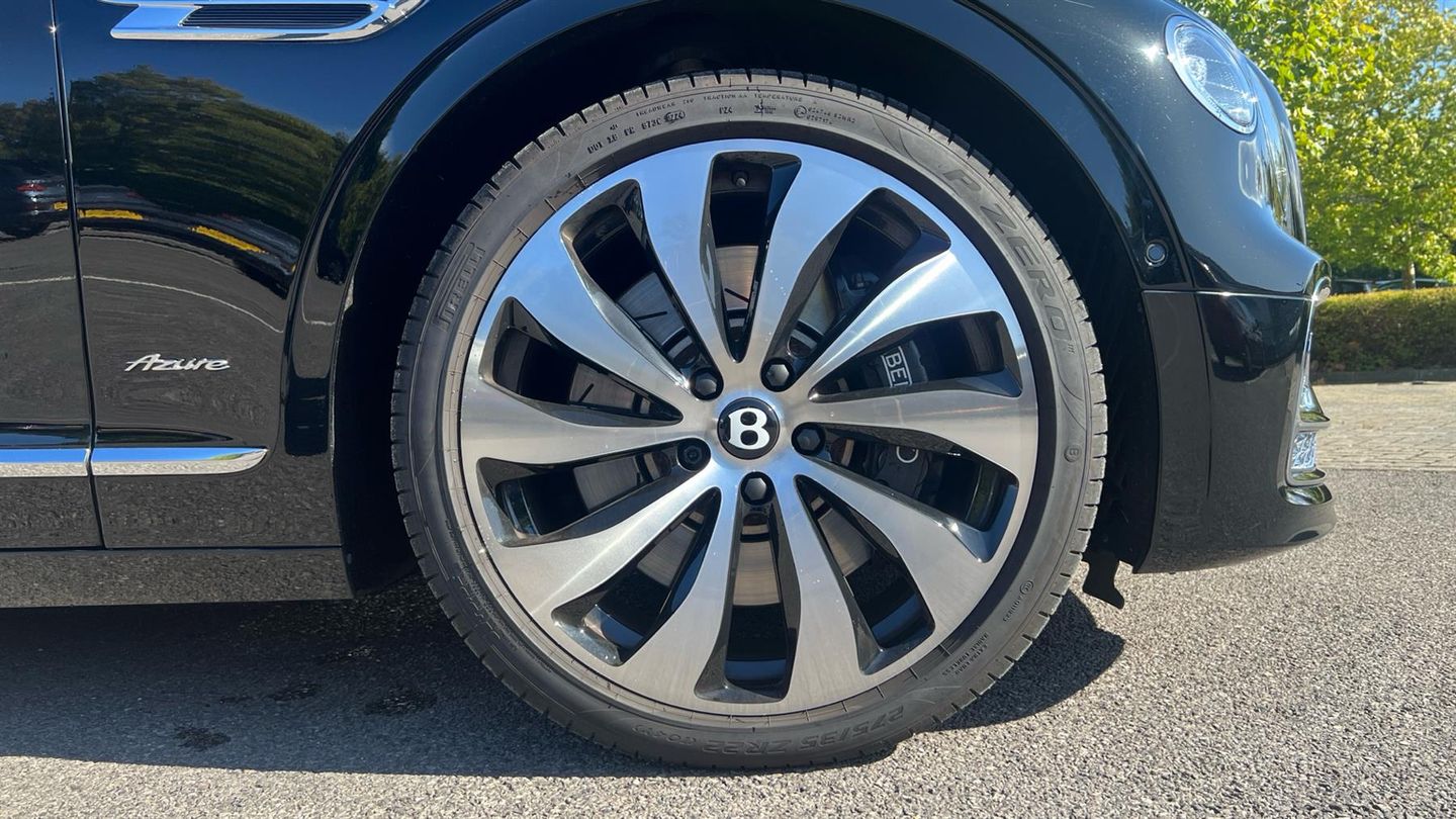 Bentley Azure Flying Spur V6 Hybrid in Black Crystal with a Linen Quited Leather Interion. Azure Specificartion including Touring and City Specification, Bentley Rotating Dash, Mood Lighting, 22 Ten Spoke Alloys, Four Wheel Drive Sysytem, LED Welcome Lamps, Lofted Diamond Hide Seats Heated with Ventilation and Massage, Illuminated Flying B Radiator Mascot - Bright Polished Stainless Steel, Veneered Picnic Tables Match to Upper, Naim for Bentley, Bentley Rear Entertainment, Remote Controlled Garage Door Opener, Dual Finish - Piano Linen over Grand Black, Diamond Knurling, Self Levelling Wheel Badge - by Mulliner..