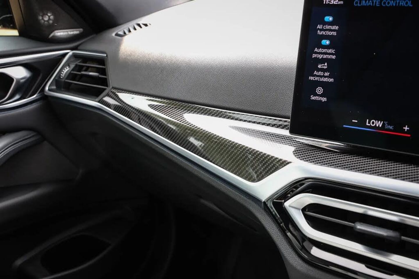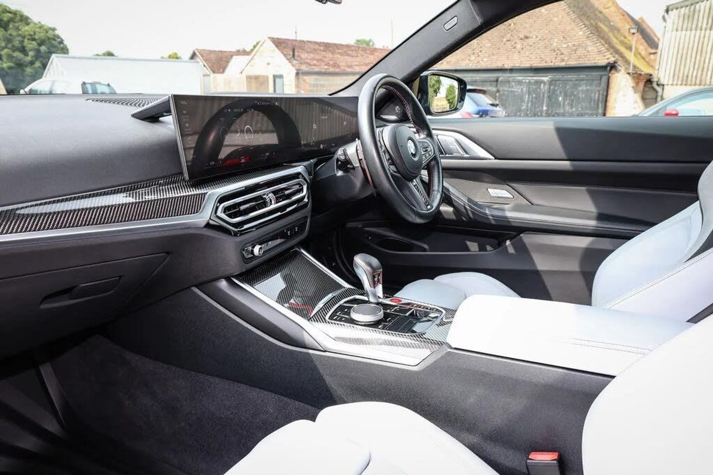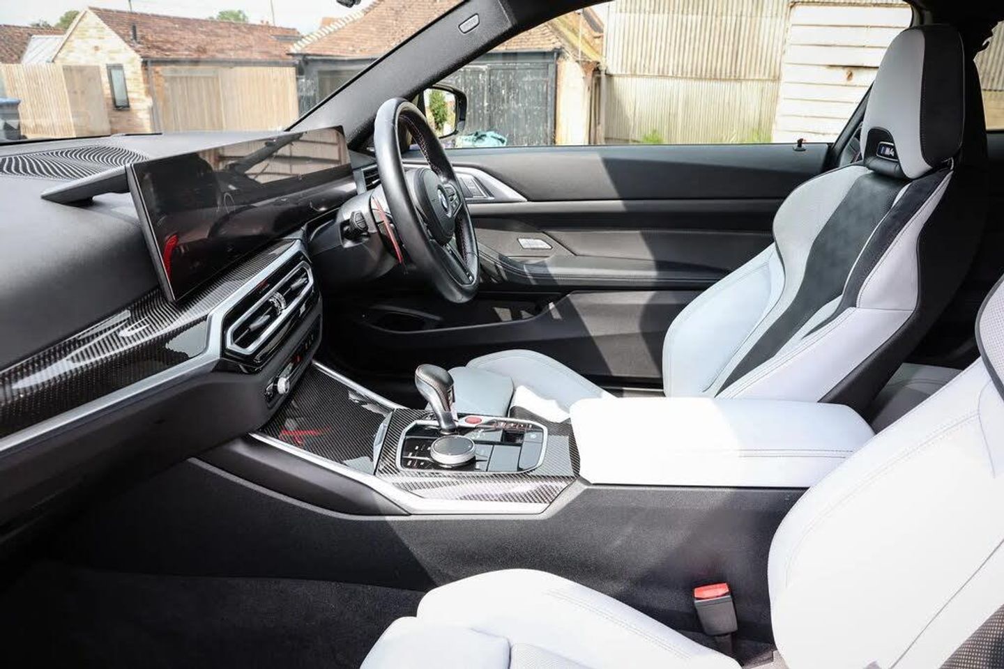 Active guard plus,Automatic start/stop system,BMW ConnectedDrive online services,BMW iDrive controller on centre console,BMW legal emergency call,BMW Live Cockpit Professional sat nav system with 12.3" instrument display and high resolution control display,BMW Teleservices,Brake pad wear indicator warning light,Condition based service,Door/boot open warning light,Driving experience switch,Electric Power Steering (EPS) with Servotronic,Instrument cluster with extended contents,Lights on warning,M drive buttons,Oil sensor for level and grade, warning by check control system,Oil temperature gauge,On board computer,On board diagnostics,Optimum shift indicator,Outside temperature display,Park distance control,Pull away assistant,Run flat indicator,Service interval indicator,Shifting point display,Speed limiter,Variable sport steering,Adaptive M Sport suspension,Double joint spring strut front axle,M Drive Professional including track mode, laptimer, traction control & Drift analyser,M Sport differential,M steptronic sport transmission with drivelogic,Safety battery terminal clamp,8 programmable favourite buttons,Auxiliary point for auxiliary devices,BMW professional radio/CD/MP3,DAB Digital radio,Harman/Kardon loudspeaker system,Acoustic laminated side glass,Auto dimming driver's door mirror,Auto dimming rear view mirror,Automatic headlights + automatic windscreen wipers,Black chrome exhaust tailpipes,Black model designation badges,BMW high gloss shadow line with extended contents,BMW Individual shadowline lights,Body colour bumpers,Body colour door handles,Carbon fibre reinforced plastic (CFRP) roof,Day time running light,Door mirror integrated indicators,Door sill finishers with aluminium inserts,Dynamic brake lights,Electric adjustable heated door mirrors,Electric folding door mirrors,Follow me home headlights,Front and rear bumper system,Front electric windows with open and close fingertip control, anti trap facility and comfort closing,Headlight beam throw control,Heat protection, sun protection glazing,Heated washer jets,High beam assistant,High gloss black frameless kidney grille with M badge,LED number plate light,LED tail lights with 3D L-shaped LED light design,M designation,Mirror glass aspheric on driver's side, convex on passenger side,Rain sensor,Rear boot,Rear fog lights,Rear reflectors,Reversing light,Shark fin roof aerial,Third brake light,Visible VIN plate,Welcome lighting,2 cupholders in front centre console,2 cupholders in rear armrest,2 rear head restraints,2 x 12 V Power sockets (luggage compartment and front centre console),2 x USB Type C ports for charging and data transmission in front centre console,40:20:40 split folding rear 2 seat bench with loading system,Ambient lighting,Anthracite headlining,Battery in luggage compartment,Carbon fibre centre console incl. cover for cupholders and storage compartment,Carbon fibre decorative steering wheel finishers,Carbon fibre shift paddles,Carbon fibre strip in instrument panel on front passenger side,Centre console armrest with storage compartment,Compartment in front of cupholder,Driver/passenger sunvisors with illuminated vanity mirrors + covers,Electric front seats + driver memory,English handbook,Floor mats in velour,Footwell lighting,Front and rear door exit lights,Front door storage bins with bottle holder,Front interior light,Front isofix attachment + airbag deactivation,Front seat backrest width adjustment,Front seats lumbar support,Front/rear door armrests,Gearshift lever with embossed M badge,Heated front seats,Height adjustable front headrests,Interior mirror lighting,Isofix on 2nd row outer seats,Lockable/illuminated glovebox,Luggage compartment lighting,Multifunction steering wheel,Rake/reach adjustable steering wheel,Single front passenger seat,Storage compartment in rear doors,Storage tray and compartment with cover in centre console,Three zone automatic air conditioning,Toolkit located in luggage compartment,Wireless charging tray,Additional storage compartment pack - M4,Connected package professional - M4,High gloss shadowline exterior trim pack - M4,4 x 3 point seatbelts,ABS/EBD,Automatic Stability Control (ASC),Brake energy regeneration,Brake fade compensation,Compound structure brake discs,Cornering brake control (CBC),Crash sensor,Curtain airbags,Driver/Front Passenger airbags,Dry braking,Dynamic brake control,Dynamic Stability Control with M Dynamic mode,Dynamic Traction Control - DTC,Electromechanical parking brake,Electronic differential lock control (EDLC),Front and rear head airbags,Front seat side impact airbags,Front seatbelt pretensioners + load limiters,Hill start assist,M Sport seat belts,Seat occupancy detection for driver and passenger side,Seatbelt warning,Side impact protection,Two tone horn,Tyre pressure sensor,Warning triangle and first aid kit,Centre lock switch,Closing system with central locking,Digital key,Electronic immobiliser,Remote central locking,Thatcham cat 1 remote alarm