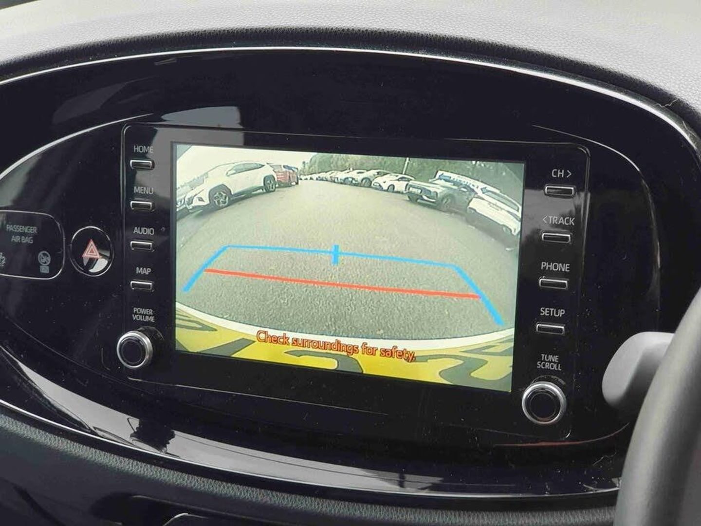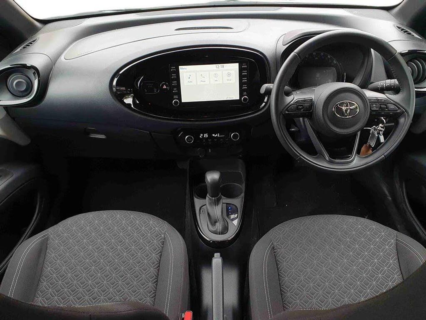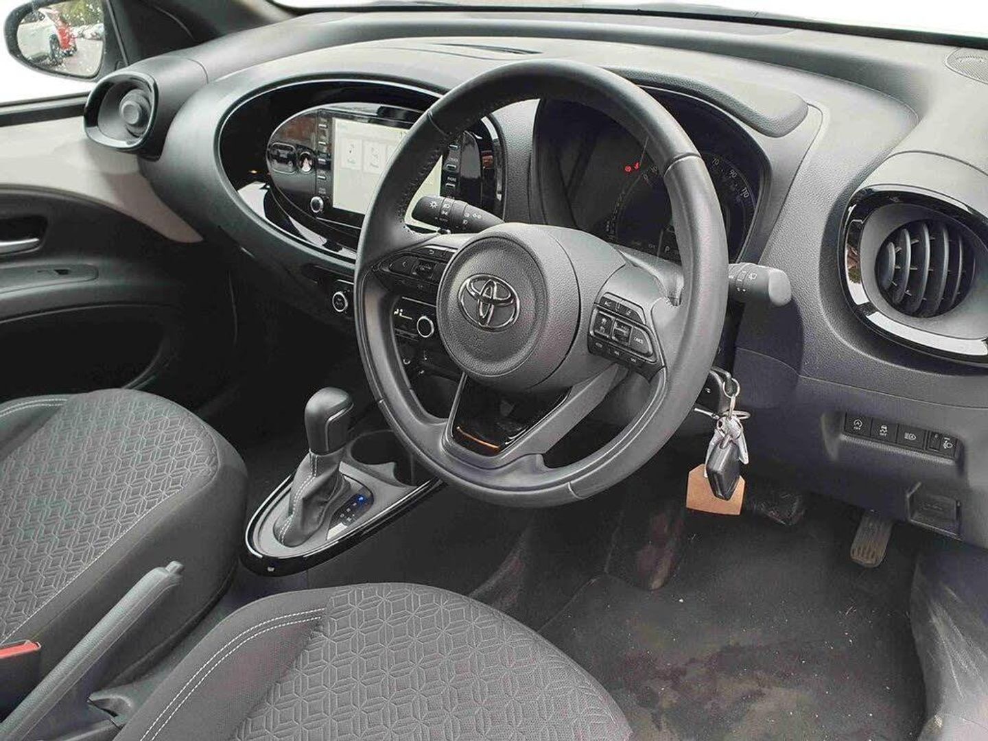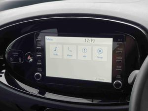 4.2" TFT colour screen, Adjustable speed limiter, Analogue speedometer, Bluetooth connectivity, Digital tachograph, Driver attention alert system, eCall emergency call system, ECO-driving indicator, Electric power steering, Intersection turn assist, Key reminder warning, Noise reduction kit, Pre collision system with emergency steering assist, Reversing camera with static guide lines, Smart phone integration with Apple car play/Android Auto, Speed limit display, Start and stop, Vehicle Stability Control (VSC), 4 speakers, DAB digital audio broadcast, Toyota touch 2 multimedia System with 8" Screen display, USB connector, Auto headlights, Auto wipers, Automatic headlights cut-off, Bicycle towing hook, Black side protection mouldings, Black wheel arch mouldings, Body colour door handles, Body coloured front bumper, Boot door scuff plate, Eclipse black rear bumper, Electric heated door mirrors, Follow me home headlights, Front fog lights, Front power windows, Gloss black door mirrors, Gloss black upper front grille, Headlight cut-off reminder, LED daytime running lights, LED front light guide, LED High mounted stop lamp, Manual day/night rear view mirror, Manual headlight levelling, Pagoda roof, Power adjustable door mirrors, Power back door, Privacy glass, Projector halogen headlights, Rain sensor, Rear combination lights LED bulb type, Rear side wing doors, Rear windscreen defogger, Rear windscreen wiper, Short antenna, Variable intermittent windscreen wipers, 12v power outlet - front, 2 seat bench in 2nd row, 3 spoke leather steering wheel, 50/50 split folding rear seat, Adhesive roof headlining, Adjustable speed limiter switch on steering wheel, Audio and telephone switches on steering wheel, Auto air conditioning, Black insert on steering wheel, Black roof lining, Boot light, Centre room light, Chrome interior door handles, Chrome surround on air conditioning buttons, Clean air filter, Console box storage in body color, Fabric upholstery, Floor mats, Front and rear cup holders, Front head rest deco art, Front head restraints, Gear shift indicator, Height adjustable driver seat, Intelligent adaptive cruise control switch on steering wheel, ISOFIX child restraint system on rear seats, Lane departure alert switch on steering wheel, Leather gearshift knob, Manual tilt steering wheel, Manually reclining and sliding driver seat, Manually reclining and sliding front passenger seat, Multimedia switches on steering wheel, Pollen filter, Rear door pockets, Rear head restraints, Satin silver insert on gear shift knob, Single compartment glovebox with lights, Single front passenger seat, Soft tonneau cover, Sun visors with mirror on driver and passenger side, Voice recognition switch on steering wheel, Toyota safety sense pack - Aygo X, Anti lock braking system + Electronic brake force distribution, Child safety door lock, Emergency brake light signal (EBS), Hill start assist control (HAC), Passenger airbag on/off switch, Seat belt reminder for front and rear seats, Supplement restraints system (SRS) - 6 airbags, Traction control, Tyre pressure warning system, Immobiliser, Remote power door locks, Black wheel centre caps, Tyre repair kit