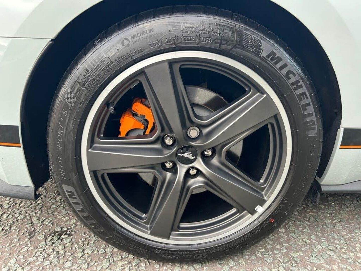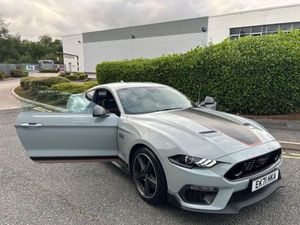 19in Alloy Wheels - 5-Spoke - Magnetic Finish with Michelin Pilot Sport 4 Tyres, ABS - Anti-lock Braking System, Air Conditioning - Dual Zone Electronic Automatic Temperature Control, Air Intake Filter for Pollen-Odours, Air Purifier Sensor, Airbags - Advanced Driver and Front Passenger Airbags - Side Impact Airbags - Drivers Knee Airbag - Active Seat Belts and Glovebox, B&O Premium Audio System and Ford SYNC 3 Navigation, Badging - Mach 1 Design - Unique Mach 1 Logo Wing Badge and Decklid Applique, Black Moulded Beltline and Door Line Ornamentation, Centre Console with Partial Leather and Contrast Stitching, Climate Controlled Seats, Courtesy Lights - Premium Ambient Lighting with Memory - Map-Reading Lights - Illuminated Entry - Courtesy Delay - Theatre Dimming, Cruise Control, Cup Holders - Front x2, Door Mirror Side Indicators, Door Mirrors - Low Gloss Magnetic, Door Trim Panel - Luxury Grain Vinyl Detail with Contrast Stitching, EBA - Emergency Brake Assist, EPAS - Electric Power Assisted Steering, Electric Rear Window Demister, Electronic Line Lock - Track Use Only, Electronic Locking Centre Console, Electronic Stability Control - ESC with Full Speed Engine-Brake Traction Control - TCS, Enhanced Brembo 6-Piston Front Brake Calipers with Large Discs and Low-Steel Linings, Exhaust - Quad Chrome Exhaust Pipe with Active Exhaust System - Mach 1 Design, Floor Mats - Carpet - Front, Foot Pedals - Unique Metallic Design, Ford Easy-Fuel Capless Refuelling System, Ford Keyfree System - Keyless Entry with Ford Power Starter Button, FordPass Connect Embedded Modem, Front Seat Adjuster - 6-Way Power Drivers Seat, Front Seat Adjuster - 6-Way Power Passenger Seat, Front Seats - Sports Style, Full TFT-LCD Instrument Cluster, Gearshift Knob - Leather-Trimmed, Handbrake Grip - Leather-Trimmed, Hood Scoop Vents, Instrument Panel - Mach 1 Design with Dark Spindrift Panel Applique with Unique Mach 1 Badge and Contrast Stitching, LED Headlights with Daytime Running Lights, Lane Keeping Aid with Lane Keeping Assist, Locking Wheel Nuts, Locks - Remote Central with Double Locking, Lower Grille - Mach 1 Design, MagneRide Adaptive Suspension System, Mini Overhead Console, Performance Spoiler - Mach 1 Design, Power-Folding Door Mirrors with Mustang Logo Projection Puddle Lamps, Pre-Collision Assist, Rain Sensing Wipers, Rear Lights - LED, Rear Seats - ISOFIX Fittings, Rear Seats - Split Folding, Rear View Camera, Rear View Mirror - Electrochromic, Scuff Plates - Illuminated with Mach 1 Logo, Seat Back Map Pocket - Driver, Selectable Drive Modes, Steering Wheel - Leather-Trimmed and Heated with Mustang Logo, Sunvisors - Driver and Passenger - Illuminated, Thatcham Category 1 Alarm, Track Apps - Accelerometer Technology - Track Use Only, Tyre Mobility Kit, Tyre Pressure Monitoring System, Unique Front Splitter - Belly Pan and Rear Defuser, Unique Mach 1 Front Grille with Low Gloss Magnetic Pony Badge, Windows - Power Front Windows with Global Opening, Fighter Jet Grey, Leather - Ebony with Orange Accent Stripe, Mach 1 Appearance Pack