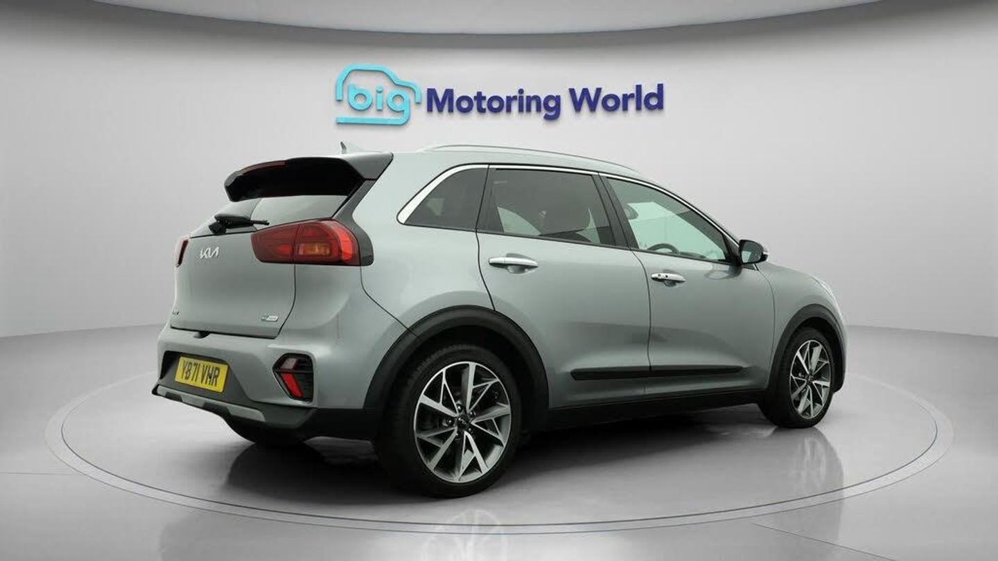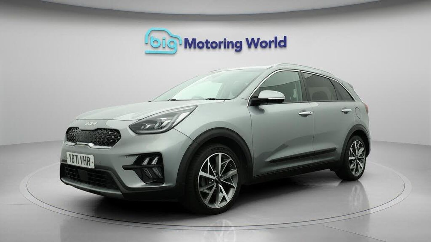 18'' alloy wheels,Leather Seats-Our Kia Niro is finished in Grey. Specification includes a range of fantastic features including 18'' alloy wheels, Leather Seats, Adaptive Cruise Control, Apple CarPlay, Electric Seats, Premium Sound System, Lane Assist, Android Auto, Satellite Navigation, Privacy Glass Specification information is supplied by CAPHPI and may vary to the actual car. This data does not form any part of a buying contact. Please check specification prior to purchase in-store. The MOT is valid until January 2026, visit bigmotoringworld.co.uk for more photos, a 360 tour, service history and a free HPI report.Were BIG on peace of mind and this Grey Kia Niro has completed our comprehensive 200 point inspection and passed all checks. Its ready for you to drive away with immediate collection in-store. We include a 90-day warranty as standard plus an option to extend for up to 3 years.Reserve this car exclusively for you, safely and securely at bigmotoringworld.co.uk, with a fully refundable £99 deposit. Test drive before you buy, with no commitment, no hassle and a completely haggle free experience. Still searching and want to see thousands more cars? We are BIG on choice with over 8000 cars to choose from.Visit our award winning web site bigmotoringworld.co.uk.Were Big Motoring World and were BIG on what matters to you.