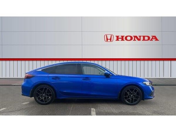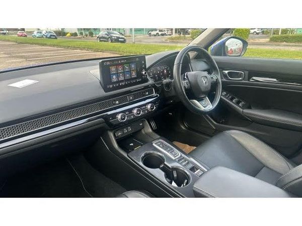 The 2022 Honda Civic e:HEV Advance is a sleek, efficient, and technology-packed hatchback that delivers a dynamic driving experience with exceptional comfort and style. Finished in stunning metallic blue, this 11th-generation Civic combines sporty design with premium quality and cutting-edge hybrid technology. Powered by Hondas advanced 2.0-litre e:HEV self-charging hybrid engine, it delivers an impressive 181 bhp alongside excellent fuel efficiency, making it perfect for both city commutes and long-distance journeys. The smooth CVT automatic gearbox ensures effortless acceleration, while the responsive handling provides a refined yet engaging drive. Step inside, and youre greeted by a sophisticated and spacious interior designed with comfort and convenience in mind. The Advance trim offers a host of premium features, including heated front seats, a heated steering wheel, dual-zone climate control, and a panoramic sunroof. The advanced 9-inch touchscreen infotainment system comes with satellite navigation, Apple CarPlay, Android Auto, and a powerful 12-speaker Bose sound system, keeping you connected and entertained on every journey. Safety is at the core of the Civics design, with Honda SENSING technology offering adaptive cruise control, lane-keeping assist, collision mitigation braking, blind-spot monitoring, and a rear-view camera for maximum confidence behind the wheel. Combining striking looks, outstanding efficiency, and innovative technology, this 2022 Honda Civic e:HEV Advance is the perfect choice for drivers seeking a stylish, eco-friendly, and fun-to-drive hatchback.
