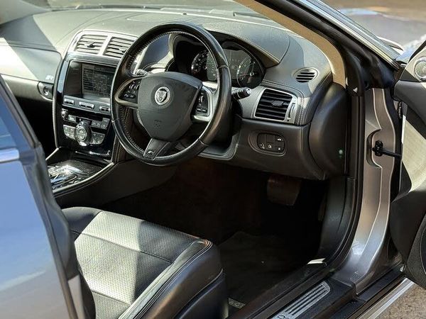 Lunar Grey,Performance Active Exhaust - Quad Tailpipes,Red Painted Brake Calipers with Jaguar Script,Tyre Pressure Monitoring System, 6-Disc in Dash CD Changer, Accessory Powerpoint in Glovebox, Audio Connectivity Module - USB, Bluetooth Telephone Connectivity, Bowers and Wilkins 525W Surround Sound System, DAB Radio Receiver, MP3 Format Reader, Satellite Navigation, Telephone Pre-Wiring with Universal Connector, Cruise Control, Front Parking Aid with Touch Screen Visual Indicator, Rear Parking Aid with Touch Screen Visual Indicator, Trip Computer, 20in Alloy Wheels - Nevis with Supercharged Script, Chrome Side Window Surround, Electric Windows - Front with One Touch Open and Close-Anti Trap, Exterior Mirrors - Power Foldback-Electrochromic-Heated-Memory with Integrated LED Lights, Front Bumper - Chrome Outboard Bezel and Black Mesh Inserts, Heated Front Windscreen, Jaguar Tyre Repair System, Louvered Bonnet with Supercharged Script, Rear Spoiler - Body Coloured, Side Power Vents - Chrome and Mesh, Sports Active Exhaust - Quad Tailpipes, Upper and Lower Front Mesh Grille - Gloss Black Finish with Chrome Surround to Upper Grille, Automatic Headlight On, Automatic Headlight Washers, Headlights - Automatic Levelling, Headlights - Bi-Function HID Xenon with LED Daytime Running Lights, LED Rear Taillights, Air Particle and Odour Filtration, Ashtray and Lighter, Bright Stainless Steel Pedals, Dark Mesh Aluminium, Dual Zone Automatic Climate Control, Heated Front Seats, Humidity Control, Interior Rear View Mirror - Electrochromic, Jaguar Smart Key System with Keyless Start, Lower Trunk Lid Finisher - Chrome Finish, Phosphor Blue Halo Illumintion including Mood Lighting, Premium Carpet Mats - Nubuck Edged with Jaguar Script, Premium Headlining - Suedecloth Jet, Rain Sensing Windscreen Wipers, Remote Control Boot Release, Seats - Driver and Passenger 16 Way Electric Adjustment with Driver Memory Function, Seats - Front - Back Map Pockets, Seats - Lumbar Support - Driver-Passenger-4 Way Power, Seats - Memory Function with 3 Settings - Exterior Mirrors and Steering Column, Seats - Performance 16x16 Way Electric, Steering Column Electric Adjustment with 3 Memory Settings, Steering Wheel - 3-Spoke/Leather/Heated/Contrast Stitch, Twin Front Cupholders, Active Differential Control, Adaptive Dynamics, Servotronic Steering, ABS - Anti-locking Braking System, Adaptive Restraint Technology System, Airbags - Driver, Airbags - Front Side, Airbags - Passenger, Airbags - Side Curtain, EBA - Emergency Brake Assist, EBD - Electronic Brake-Force Distribution, EPB - Electronic Parking Brake - Drive Away Release, ISOFIX Anchor Points for Rear Child Seat, Jaguar Performance Braking System, Jaguar Smart Key System with Keyless Entry, Pedestrian Contact Sensing and Deployable Bonnet, Perimeter Sensing and Sounder, Remote Control Central Locking with Dead Locking and Drive-Away Locking, Trac DSC - Dynamic Stability Control with 3 Setting Levels, Traction Control, Vehicle Immobiliser, Volumetric Sensing