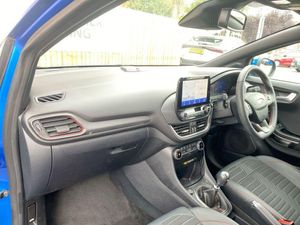 18in Alloy Wheels - 5-Spoke - Matt Black Machined Finish, ABS - Anti-lock Braking System, Acoustic Laminated Windscreen, Active Grille Shutter, Automatic Dimming Rear View Mirror, Automatic Headlights with Rain-Sensing Wipers and Auto High Beam, B&O Premium Audio System and Ford SYNC 3 Navigation, Carbon-Look Interior Deco Spears, Centre Console - Premium with Openable Stowage Area with USB Connectivity - 2 Cupholders and 12v Power Point, Courtesy Lights - Ambient LED Courtesy Lighting - Single Colour, Cruise Control - Lane Keeping Aid and Lane Departure Warning, Desert Island Blue, Driver Assistance Pack 1, Drivers Manual 4-Way Seat Adjustment with Manual Lumbar Adjust, Ecoboost Hybrid Tailgate Badge, Electric Windows - Front and Rear, Electronic Air Temperature Control - EATC, Emergency Brake Warning - Automatic Hazard Warning Lights, ESC - Electronic Stability Control and Hill Start Assist, First Aid Kit Strap, Floor Mats - Front and Rear, Ford MegaBox Extended Bootspace, Ford Power Starter Button, Front Bumper - Unique ST-Line Sport Design - Body Colour, Front Fog Lights with Cornering lights and LED Rear Lamps, Front Seats - Sports Style, Full Digital 12.3in Instrument Cluster, Gear Knob - Aluminium, Handbrake - Black Sensico Trimmed with Stitching, Headliner - Deluxe, Instrument Panel - High Level, Intelligent Speed Assistance, Large Rear Spoiler - Body Colour with Centre High Mounted Stop Light, Locking Wheel Nuts, Lower Bodyside Moulding - Body Colour, Partial Premium Sensico - Black with Red Stitching, Passenger 4-Way Seat with Lumbar Adjustment, Post Collision Braking, Power Steering, Power-Foldable Heated Door Mirrors with Puddle Lamps, Pre-Collision Assist with Autonomous Emergency Braking and Pedestrian-Cyclist Detection, Privacy Glass, Projector Headlamps with LED Daytime Running Lights, Puma Badge, Quickclear Heated Windscreen, Rear Bumper Body Colour - Diffuser, Rear Parking Sensors, Rear Seats - 2-Way Head Restraint Up-Down, Rear Seats - Second Row 60-40 Folding Seats, Remote Central-Double Locking, Restrain Device Pack, Selectable Driving Modes - Normal - Eco - Sport - Slippery and Trail, Soft-feel Gearshift Boot with Red Stitching, Speed Limiter, Sports Suspension, ST-Line Badge, ST-Line Body Styling Kit, ST-Line Flat-Bottomed Leather Steering Wheel with Unique Red Stitching, Tailgate - Manual, Thatcham Alarm, Traction Control and Emergency Braking Assistance, Trip-Fuel Computer, Tyre Inflation Kit, Tyre Pressure Monitoring System - TPMS, Wireless Charging Pad with Electronic Air Temperature Control EATC