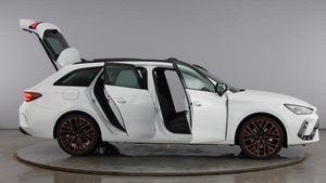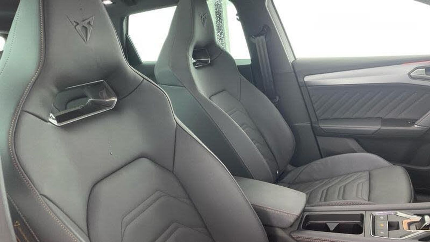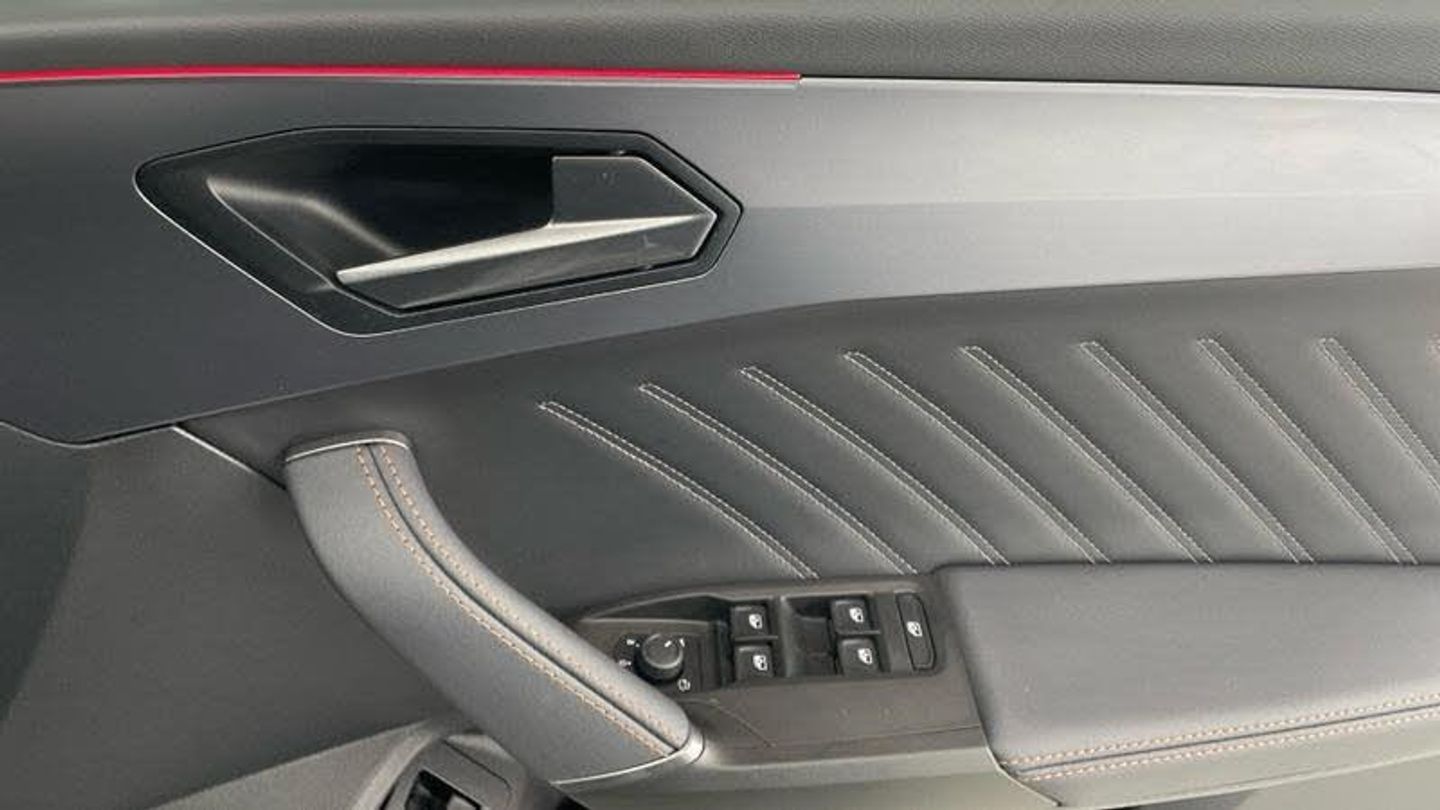 Metallic - Glacial white, Leather - Moon slate with copper stitching embroidered CUPRA logo in headrest + metallic bucket seats, Rear wash/wipe, Body colour door handles, Body coloured bumpers, Rear side wing doors, LED headlights with dynamic turn signals, tail lights, rear fog lights with rear coast to coast lighting, Third brake light, ABS, Disc brakes in front, Hill hold control, Rear disc brakes, CUPRA drive profile selection with (Comfort/Performance/Individual), throttle response and gearshift mode, 3 point seatbelts on all rear seats, Child proof door locks, E-call, wireless Apple CarPlay and wired Google Android Auto, Auxiliary input socket, Lockable tailgate, Start/stop system with regenerative braking, RPM, trip computer, outside temp gauge, instrument light brightness, low fuel warning light, lights on reminder, gearshift indicator, Service interval indicator, 3 seat bench in 2nd row, Single front passenger seat, Height/reach adjust steering wheel, Leather upholstery, footwell, Media system plus with 12.9 display + navigation pack - Leon Cupra, Locking wheel bolts, [Audio and Communications]Full link smartphone integration with Mirror Link, Wireless phone charger, Four x USB Type C ports (2 in front and 2 in rear), 12v power supply in centre console, [Drivers Assistance]Adaptive cruise control with follow-to-stop and speed limiter, Driver alert system, Dynamic road sign display, Front and rear parking sensors, Front cross traffic assist, Intelligent park assist, Rear view camera, Side and exit assist, Tiredness recognition system, Tyre pressure monitoring system, Digital cockpit, [Exterior]Panoramic sunroof, Dark tinted rear windows, Electric front/rear windows, Cupra sports bumpers, Gloss black roof rails, Rear diffuser with black simulated exhaust pipes, LED rear fog lamp, Cupra black brake calipers, heated and folding door mirrors, [Illumination]High beam assist, LED front fog lamps with cornering function, Separate daytime running light with automatic headlight control and coming home feature, [Interior]Rain sensing wipers, Welcome light with logo projector in door mirrors, Auto dimming rear view mirror, Electrically adjustable, Virtual pedal with electric tailgate, Chrome and copper interior detailing, 5 headrests, 60/40 split rear bench seat with armrest, Electrically adjustable driver seat and lumbar support with memory function + manually adjustable passenger seat, Heated front seats, Three zone climate control, Black headlining, Cupra sports pedals, CUPRA Supersports, heated steering wheel with satellite buttons, Front centre armrest, Illuminated interior front door sills, Sliding boot cover, Storage pockets on rear of front seats, Ambient lighting (glovebox, ambient lighting multicoloured), Front and rear reading lights X 4, Interior wraparound lighting, Sunvisors with illuminated mirror, Dynamic and comfort pack - Leon Cupra, Tool kit, [Performance]Brake control system - ESC and brake booster, [Safety and Security]Electronic parking brake, Front assist with forward collision warning braking reaction to vehicles, pedestrians and cyclists, Driver and front passenger airbags with front passenger airbag de-activation, front side and curtain airbags, Pre-crash front and rear seat belt tensioner, window closure and hazard lights, Seat belt reminder for front and rear seats, Lane change assist with emergency assist, ISOFIX points in outer rear seats with top tether anchorage points, Anti theft alarm system with interior monitoring in cab, backup horn and towing protection, KESSY Advanced - Keyless start, keyless entry