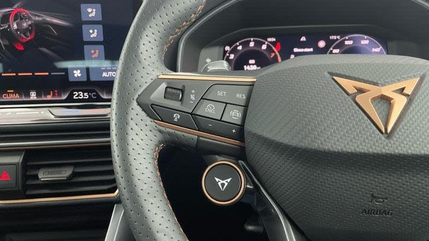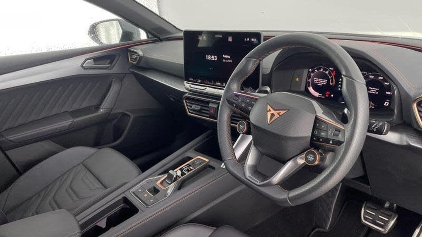 CUPRA Leon 1.5 eTSI 150 V3 5dr DSG (ULEZ) registration WM25XOK with just 5,000 miles. This stunning V3 is our own Mon Motors demo, cared for from day one and showing one previous owner. It comes with full dealership CUPRA Approved service history for total peace of mind. The punchy 1.5 eTSI mild-hybrid engine paired with the slick DSG automatic makes every drive feel effortless, while ULEZ compliance keeps city journeys simple.Inside, you re greeted by supportive leather seats with heating for those chilly mornings, set beneath a panoramic sunroof that floods the cabin with light. Tech and safety are on point too: satellite navigation for easy route planning, a clear rear-view camera for stress-free manoeuvring and adaptive cruise control that smooths out longer trips. Outside, the bold stance is finished perfectly by 19 alloy wheels that look every inch the part.When you purchase this car from Mon Motors SEAT Bristol, you ll enjoy all the benefits of the CUPRA Approved Used scheme, including a 12-month Warranty, 12 months Roadside Assistance, 12 months MOT cover and much more. This CUPRA Leon has passed meticulous checks by our CUPRA-trained technicians and is available for immediate delivery.Buy from Mon Motors SEAT Bristol, an official CUPRA franchise retailer, and you re choosing recognised expertise, genuine CUPRA parts, and a customer-first approach from a team that knows these cars inside out. We prepare every vehicle to exacting brand standards and offer straightforward part-exchange and finance options to make changing your car easy. Visit us in Bristol for a test drive and experience this superb CUPRA Leon for yourself.