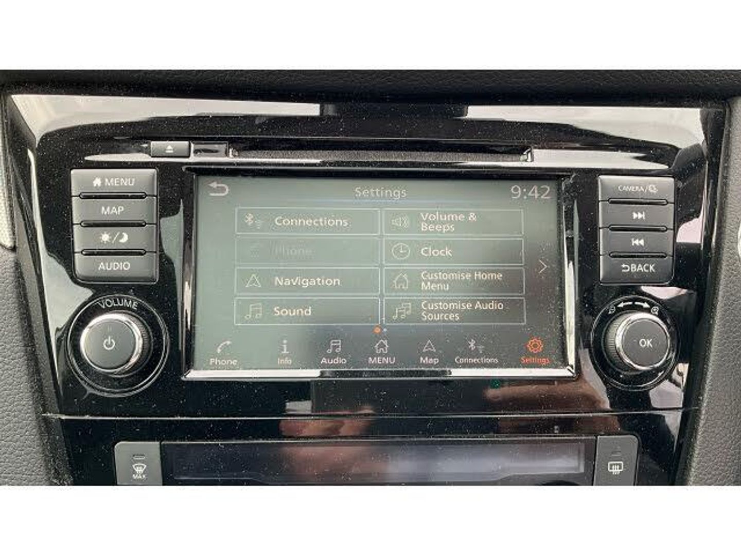 Air Conditioning, Climate Control, Cruise Control, Satellite Navigation, Alloy Wheels, DAB Radio, Bluetooth, Parking Sensors, Stop Start, Low Mileage, Rear Camera, Auto Lights, Electric Folding Mirrors, Lane Departure, Lane Keeping Assist, Pre Crash Prevention& Rain Sensors, Privacy glass, Electronic parking brake, Voice control system, Rear view camera, Push button starter, Trip computer, Electric folding door mirrors, Glossy black dash trim, Diesel particulate filter, 6 speakers, Body colour bumpers, Front fog lights, Pollen filter, Leather gear lever, Individual rear seat reading lights, Safety shield plus pack - Qashqai, Height adjustable front seatbelts, 3 height adjustable rear headrests, Remote central locking, Tyre puncture repair kit