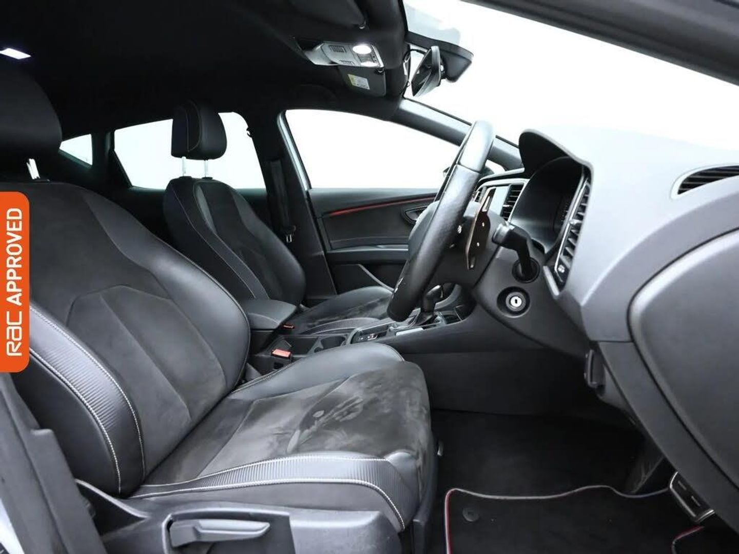 12V Power Supply in Centre Console,Media System Plus,Navigation System,SEAT Full Link Smartphone Integration - Mirror Link - Apple CarPlay - Google Android Auto,19in Alloy Wheels - CUPRA Machined,Black Brake Calipers - Front and Rear with Cupra Logo,Bumpers - Exclusive Cupra Front and Rear,Dark Tinted Rear Windows,Electrically Adjustable Folding and Heated Door Mirrors,Front and Rear Electric Windows,Gloss Black Door Mirrors with Integrated LED Indicators,Radiator Grille Frame in Glossy Black,Radiator Grille in Black,Space-Saving Spare Wheel,Visual Dual Exhaust Pipes,7 Airbags,ABS and Traction Control System - TCS - Electronic Stability Control - ESC - and Front Differential Lock System - XDS,Alarm - Volumetric,Electric Parking Brake Including Autohold Function,Front Assist with Pedestrian Protection,ISOFIX Points in Outer Rear Seats with Top Tether Anchorage Points,Multi-Collision Braking System,Seatbelt Reminder - Front,Armrest - Front with Storage Compartment,Black Interior Roof Lining,Convenience Pack Plus,Digital Cockpit,Driver and Passenger Seat Height Adjustment,Driver and Passenger Sunvisor with Covered and Illuminated Mirrors,Drivers Seat Lumbar Adjustment,Dual Zone Climate Control,Flat Bottomed-Perforated Leather Steering Wheel with White Stitching and CUPRA Logo,Front Seat Back Storage Pockets,Front Sports Seats,Illuminated Aluminium Front Door Sill with Trim Logo,Instrument Lighting with Brightness Control,LED Interior Illumination Pack,Leather Gear Knob,Multi Coloured Ambient Lighting,Pedals in Aluminium,Seats - Passenger Lumbar Adjustment,Split Folding Rear Seats 60-40 with Armrest,Steering Wheel-Mounted Gearshift Paddles,Storage Box Under Driver and Front Passenger Seat,Two Height-Adjustable Front and Rear Headrests,Cruise Control,Digital Clock,Front and Rear Parking Sensors,Gearshift Indicator,Low Fuel Warning Light,Outside Temperature Gauge,RPM Counter,SEAT Drive Profile,Trip Computer,Tyre Pressure Monitoring System,ESC Switch-Off Key,Electro-Mechanical Progressive Power Steering,Sports Suspension,Full LED Headlights,Lights Left On Warning Buzzer