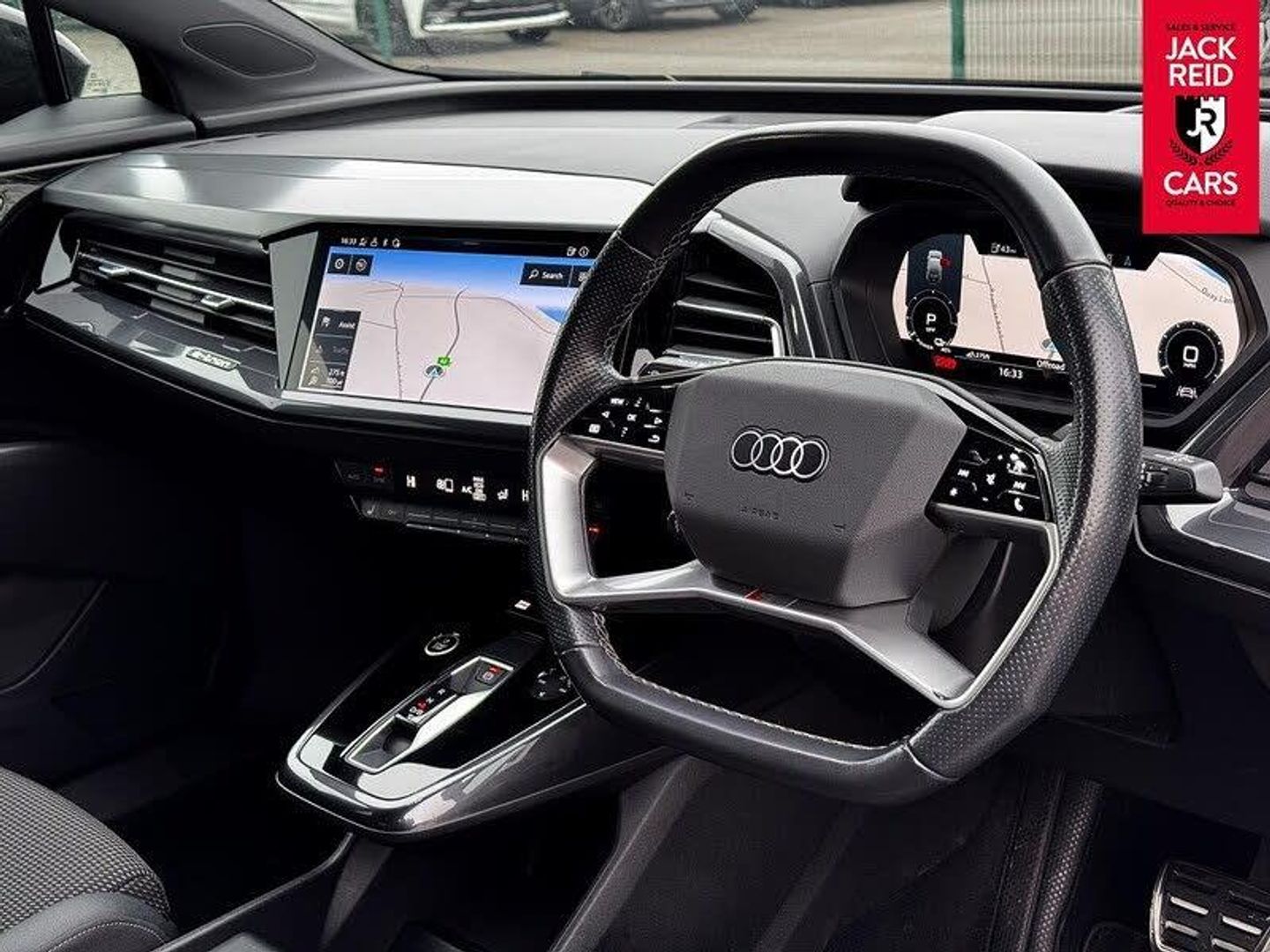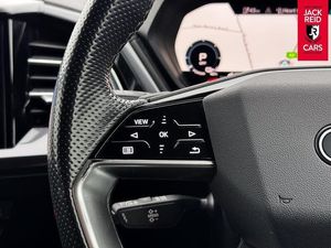 Check out what's all included in this 2022 Audi Q4 125kW 35 55kWh S Line 5dr Auto:. Gloss styling pack.. Audi Smartphone Interface with wireless functionality.. Audi 10.25" Virtual Cockpit.. MMI Navigation Plus.. 11.6" touchscreen colour display.. Power operated tailgate.. Heated front sports seats.. LED daytime running lights.. Touch control multi function steering wheel.If you like the look of this car and would like to come for a look or an unaccompanied test drive feel free to call down anytime or get in touch to make an appointment. We are open 7 days a week for your convenience!We have one of the largest numbers of cars for sale in our area with up to 200 cars in stock ready to view! We stock a variety of makes and models such as Audi, BMW, Seat, Range Rover, Mercedes, Jaguar and many more!All our cars come warranted by Jack Reid Cars meaning that we make all our decisions in house unlike unreliable warranty companies with too many terms and conditions.We look forward to hearing from you!This car is shown with an optional new alloy wheel and tyre upgrade or it can be returned to the standard wheels, whichever suits you best. Please contact sales for pricing.