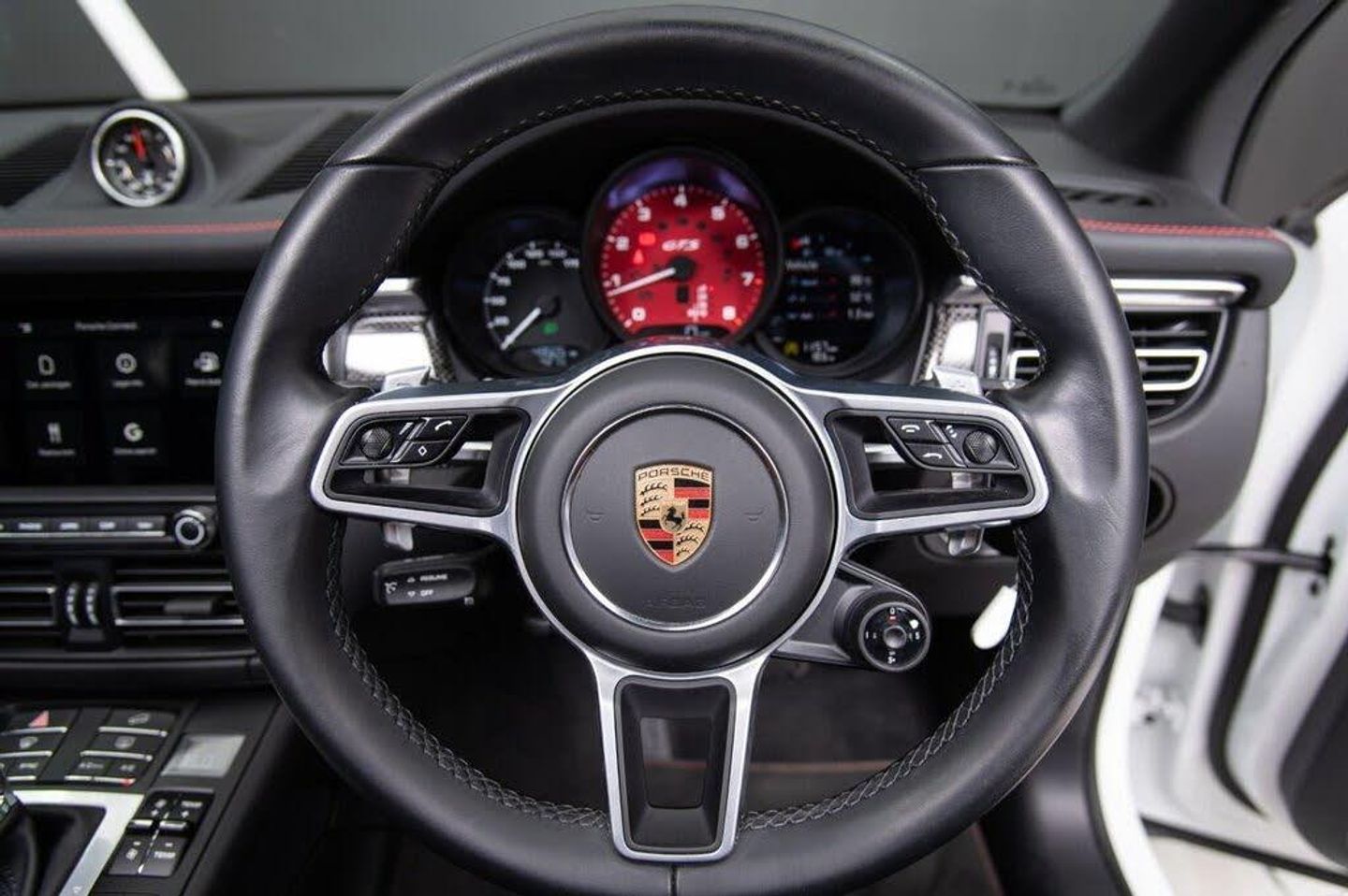 Interior Package - Carbon, ParkAssist - Front and Rear with Reversing Camera, Lane Change Assist, Sport Chrono Stopwatch - Compass Instrument Dial in White, BOSE Surround Sound System, GTS Leather Interior Package - Black-Carmine Red, Seat Belts - Garnet Red, PDK Gear Selector - Aluminium, Instrument Dials - Garnet Red, Illuminated Door Sill Guards in Black Brushed Aluminium, Floor Mats with Leather Edging, Roof Rails - Aluminium - Painted in Black, Heated Windscreen, SportDesign Exterior Mirrors, Model Designation on Sideblades in Red, PORSCHE Logo Painted in Matt Black and Model Designation Painted in Exterior Colour, Panoramic Roof System, Door Handles Painted in Black - High-Gloss, White, 20in Alloy Wheels - RS Spyder Design Wheel - Satin Black, ABS - Anti-lock Brake System, Accent Trim in Silver-Coloured Finish, Active Radiator Grille Shutters, Alarm System with Ultrasonic Interior Surveillance, Apple CarPlay with Siri Voice Recognition, Auto-Hold Function, Automatic Headlight Activation including Welcome Home Lighting, Automatic Tailgate, B- Pillar Clothes Hooks on Driver and Passenger Side, Bottle Holders in Door Panels - Front and Rear, Brake Calipers - Red, Bumpers Comprising High-Strength Cross Members and Two Deformation Elements Each with One Threaded Fixture Point for Towing Eye Contained in On-Board Tool Kit, Central Locking with Remote Control, Climate Control - Three Zone, Combination Floating Calipers at Rear, Connect Plus, Cruise Control with Speed Limiter, Curtain Airbags for Cover Across the Entire Roof Frame and Side Glazing from the A-pillar to C-pillar, Digital Boost Pressure Gauge in the Colour Display of the Instrument Cluster, Digital Radio, Door Sill Guards in Aluminium with Model Designation at Front - Macan GTS, Electric Parking Brake, Electric Windows - Front and Rear - Remote Closing Function - Anti Trap Protection and One Touch Operation, Electrically Adjustable and Heated Electrically Folding Exterior Mirrors - Aspherical on Drivers Side, Engine Immobiliser with in-Key Transponder, Five Seats - Rear Seat System with two Comfort Outer Seats and a Central Seat, Fixed - Removable Luggage Compartment Cover, Floor Mats, Folding Front Centre Armrest - with Fore-Aft Adjustment, Four-Way Headrests - Front, Front Apron Moulding with Significantly Enlarged Cooling Air Intakes, Front Light Units with Position Lights and Direction Indicators with LED Guide Technology, Front Wipers System with Two Speeds - Intermittent Wipe and Rain Sensor, Full Size Airbags for Driver and Front Passenger, Fully Galvanised Body, Heated Rear Window with Auto-Off Function, High-level Third Brake Light - LED Integrated into Roof Spoiler, ISOFIX Mounting Points for Child Seats on Outer Rear Seats, Instrument Cluster with High-Resolution 4.8in Colour Display - Gear Indicator - Service Interval Display - External Temperature Indicator - Fuel Gauge and Various Warning Displays, Integrated Cluster of Three Round Instruments with Black Rev Counter and GTS Logo, Interior Trim Package in Black Brushed Aluminium, LED Interior Lighting Concept, LED Main Headlights in Black including Porsche Dynamic Light System - PDLS, Lane Departure Warning, Loading Edge Protection in Aluminium, Manual Controls - Gearshift Paddles on Steering Wheel and Auto Mode - Recommended Gear for Optimum Fuel Economy Displayed in Manual Gearshift Mode, Multi-Collision Brake, Multifunction Sports Steering Wheel with Shift Paddles - Steering Wheel Rim in Smooth-finish Leather, Non-Smoker Package, Off Road Button, On-Board Computer, PASM - Porsche Active Suspension Management, PORSCHE Logo and Model Designation on Rear Hatch in Matt Black, PSM - Porsche Stability Management, PTM - Porsche Traction Management, Park Assist with Optical and Acoustical Warning - Front and Rear, Particle - Pollen Filter, Passenger Airbag Deactivation Function for Mounting Child Seats including Display in Overhead Console, Porsche Communication Management - PCM, Porsche Hill Control - PHC, Porsche Vehicle Tracking System Plus, Power Steering, Preparation for Towbar System, Rear Armrest with Two Integral Cupholders, Rear Bumper with Diffuser in Matt Black, Rear Mid-Section - Painted, Rear Screen Wiper with Intermittent Wipe and Washer Jet, Rollover Detection System Enabling Early Deployment of Curtain Airbags and Seat Belt Pretensioners, Roof Spoiler in High-Gloss Black, Seat Belts - Crayon, Seats - GTS Sports Seats - Front, Seats - Heated Front, Side Airbags at Front - Integrated in the Seat, Side Window Trims - Black High Gloss, Side-Impact Protection Beams, Sideblades in Matt Black with GTS Logo in Glossy Black, Six-Piston Aluminium Monobloc Fixed Brake Calipers at Front, Sound Package Plus, Split-Folding Rear Seats - 40-20-40 with Folding Centre Armrest, Sport Mode Button, SportDesign Side Skirts, Sports Exhaust System including Sports Tailpipes in Black, Steel Spring Suspension, Storage Compartments in the Interior, Thermal Management, Three Point Automatic Seat Belts, Three-Dimensional LED Tail Lights with Integral 4-Point Brake Lights and Light Strip, Tinted LED Taillights Including Light Strip, Tinted Thermally Insulated Glass All Round, Two Sockets - 12-Volt - Centre Console in Front - Luggage Compartment, Two Twin Exhaust Tailpipes in Unique Design - Left and Right - Black, Two USB Charging and Data Ports in the Centre Console, Two Variable-Diameter Cupholders in Front, Tyre Pressure Monitoring System - TPM, Wheel Centres with Full-Colour Porsche Crest
