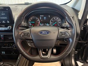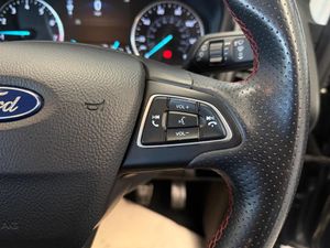 17in Alloy Wheels - 5 Spoke Dark Tarnish, Adjustable Boot Load Floor, Airbags - Curtain, Airbags - Driver and Front Passenger, Airbags - Drivers Knee, Airbags - Front Passenger De-Activation Switch, Alarm - Thatcham Category 1 with Volume Sensing and Perimeter, Ambient Lighting - Instrument Panel and Footwell, Analogue Instrument Cluster, Anti-Lock Braking System - ABS with Electronic Stability Control - ESC, Automatic Dimming Rear View Mirror, Automatic Headlights, Black Headlight Bezel, Black Roof Rails, Centre Console Cup Holder with Chrome Accent, Centre Console with Sliding Armrest, Child Locks, Courtesy Light - Front with Two Map Lights, Courtesy Light - Rear, Cruise Control, Door Frame Beltline - Black, Door Handles - Body Colour, Door Mirrors - Power-Foldable Heated with Integrated Side Indicator and Puddle Lights, Driver Seat Manual Height- Fore/Aft and Seatback Angle Adjustment and Recliner, Driver Seat Manual Rotary Knob Lumbar Support Adjustment, Driver and Passengers Sun Visor with Covered Vanity Mirror and Ticket Strip on Drivers Side, Drivers Stowage Glovebox, EPAS - Electric Power Assisted Steering, Electronic Automatic Temperature Control - EATC, Emergency Assistance, Engine Immobiliser, Ford DAB Navigation System with Ford SYNC3, Ford Easy Fuel - Capless Refuelling System, Front 2-Way Head Restraints, Front Fog Lights, Front Seat - Passenger Manual - Fore-Aft and Recline Adjustment, Front Seats - 3 Point Seat Belts with Load Limiter and Seatbelt Height Adjust, Front Seats - Seat-Back Map Pockets, Front Suspension - Independent with MacPherson Struts and Anti-Roll Bar, Front and Rear Bumper - Body Colour with Dark Sport Insert, Front and Rear Floor Mats with Red Stitching, Front and Rear Folding Grab Handles, Front and Rear Power Points - 12V, Full Length Overhead Console with Sunglasses Holder, Gear Shift Indicator, Gearshift Knob - Leather-Trimmed with Black Insert and Aluminium-Finish Ring and Red Stitching, Glovebox with Cool Bin - Lid and Illumination, Halogen Headlamps with LED Day Running Lights, Halogen Rear Lights, Handbrake Grip - Leather-Trimmed with Red Stitching, Headlights - Courtesy Delay, Headlights - Levelling Control, High Mounted Brake Light, IPS - Intelligent Protection System, Keyless Start with Ford Power Start Button, Large Rear Spoiler, Load Compartment - Lights, Load Compartment Carpet, Load Compartment Side Trim Incorporating Shopping Hooks, Lower Body Side - Door Claddings - Body Colour, Manual Parking Brake, MyKey, Power Front and Rear Windows with Global Opening-Closing, Quickclear Heated Front Windscreen with Heated Washer Jets, Rain Sensing Wipers, Rear Seat - Fold and Tumble 60-40 Split - Split Back, Rear Seats - Centre Head Restraint - Up-Down, Rear Seats - Retractable Rear Seat Belt - 3-Point All Positions, Rear Suspension - Semi-Independent Twist Beam with Twin Gas and Oil-Filled Shock Absorbers, Rear View Camera with Rear Parking Sensors, Remote Central Locking, Rocker Panel and Side Cladding - Body Colour ST-Line Design, ST-Line Bumpers and Side Skirts, ST-Line Front Grille, Seat Belt Reminder System - Drivers and Front Passengers, Seats - ISOFIX Mounting Provision for Child Seats - Outer Seats Only, Side Impact Door Beams, Soft Instrument Panel Cover, Sports Pedals with Stainless Steel Inserts, Sports Suspension, Steering Column - Rake and Reach Adjustment, Steering Wheel - Perforated Leather-Trimmed with Chrome Inserts and Red Stitching, Storage - Front Passenger Underseat Area, Suspension - Front Stabiliser Bar, Threshold Plates - Front Stainless Steel with ST Logo, Tie-Down Hooks, Trip Computer, Tyre Pressure Monitoring System, Tyre Repair Kit, Wiper - Intermittent Rear Wash-Wipe