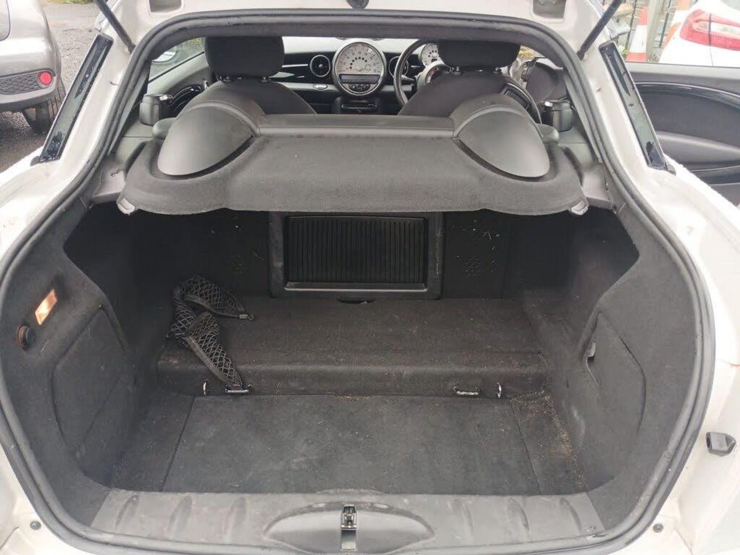 16in Alloy Wheels - Light Rib Spoke, 17in Alloy Wheels - Light Conical Spoke, 3-Spoke Sport Leather Steering Wheel, 3rd Brake Light, Additional Decor Rings, Air Conditioning - Automatic, Air Conditioning - Manual, Airbags - Driver, Airbags - Front Passenger, Airbags - Front Passenger with Deactivation Switch, Airbags - Front Side, Airbags - Head and Thorax, Alarm - Thatcham CAT1, Anthracite Headlining, Anti-Lock Braking System - ABS, ASC+T - Automatic Stability Control and Traction, Aux-In Connection, Basic Bluetooth Function with USB Audio, Black Headlight Reflectors, Brake Force Display, Brake Pad Wear Indicator, Car Jack, CBC - Cornering Brake Control, Central Locking - Activated At 10mph, Central Locking - Remote, CHILI Pack, Chrome Line Interior, Cloth-Leather Ray - Carbon Black, Colour Line - Carbon Black, Crash Sensor - Fuel Cut-Off, Crash Sensor - Hazard Warning Flashers and Interior Light, Crash Sensor - Unlocking Doors, Cruise Control, Cupholders - Two in Front, DAB Tuner, Door Handles - Chrome Plated, Door Mirrors - Electrically Adjustable and Heated, Door Sill Finishers - Metal Look and Model Dependent Lettering, Dynamic Stability Control - DSC, EBD - Electronic Brake-Force Distribution, Electric Windows - Front - One Touch Up and Down, Electronic Power Steering - Speed Related, Embellisher at Bottom Edge of All Windows - Chrome Plated, Engine Scoop in Body Colour, Exhaust Tailpipe - Visible Double Round Central with Chrome Finishers, Footrest and Pedals in Stainless Steel, Front Fog Lights, Gearshift Lever Knob Leather with Chrome Ring, Gearshift-Selector Lever and Handrake Lever Gaiters in Sensatec, Halogen Lights for Low Beam and High Beam Headlights, Headlight - Beam-Throw Control Electrical with Manual Adjustment, Headlights - Bi-Xenon, Headlights - Chrome Bezels, Headlights - Follow Me Home, Headrests For All Seats - Manually Adjustable, Heated Front Windscreen Washer Jets, Heated Rear Window with Automatic Deactivation, Hill Assist, Interior Light Pack, Interior Lighting Integrated into Centre Front Headliner Above Interior Mirror, Interior Surface in Black Chequered Design, Interior Surfaces - Piano Black, Interior World - Carbon Black, Lashing Eyes in Luggage Compartment, Luggage Compartment - Partition with Large Through-Loading Door, Microfilter, MINI Mobility System, Multifunction Controls for Steering Wheel, Passenger Seat Height Adjustable, PDC - Park Distance Control - Rear, Radiator Grille - Black-Honeycomb, Radio BOOST CD, Rain Sensor and Automatic Headlight Activation, Roof and Mirror Caps - Black, Roof Spoiler Painted in Roof Colour, Seats - Height Adjustable Front, Seats - Sports Front, Second Radio Remote Key, Security Locking Wheel Bolts, Shift Point Display, Spoiler - Active Rear (Speed Related), Sport Button, Sport Stripes - Black, Start-Stop Button, Steering Column Height and Length Adjustment, Storage Nets on Front Seat Backrest, Sun Visors with Integrated Vanity Mirrors on Drivers and Passengers Sides, Tool Kit in Luggage Compartment, TPWS - Tyre Pressure Warning System, White Direction Indicators Lights, White Silver