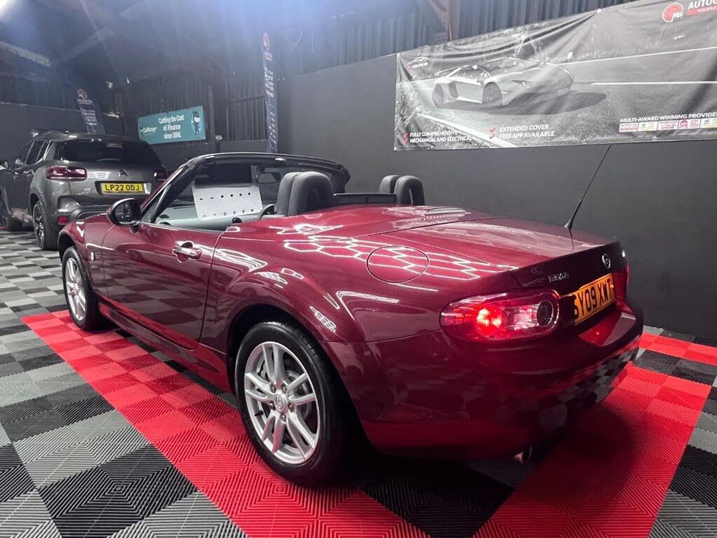 VEHICLES ARRIVING DAILY, 64,000 SERVICE HISTORY, FULL BLACK LEATHER , HEATED SEAT S, ELECTRIC ROOF , 2 OWNER FROM NEW, MAZDA MX5 1.8 SE CONVERTIBLE, 2009 09 REG , 1.8 PETROL , AC EW PAS , HEATED SEATS , 2 KEYS , 4995, 12 MONTHS MOT, 6 MONTHS WARRANTY , , Auxillary Jack for Connecting MP3 Players, MP3-CD Player with Speakers x6, 16in Alloy Wheels, Bumpers - Body Coloured, Door Handles - Body Coloured, Electric Windows - Front, Electrically Adjustable-Heated Door Mirrors, Exhaust Tailpipes - Twin, Hood - Black Premium Cloth, Air Conditioning - Climate Control, Gear Knob - Leather, Handbrake - Leather Wrapped, Remote Boot Release, Scuff Plates - Stainless Steel, Seats - Drivers Manual Height Adjustment, Steering Wheel - Leather, Steering Wheel - Mounted Remote Audio Controls, Power Steering, ABS - Anti Lock Braking System, Airbags - Driver, Airbags - Front Passenger, Airbags - Front Passenger Deactivation System, Central Locking - Remote with Deadlocking, DSC - Dynamic Stability Control, EBA - Emergency Brake Assist, EBD - Electronic Brakeforce Distribution, ESP - Electronic Stability Control, TCS - Traction Control System, Thatcham Category 1 Alarm and Immobiliser