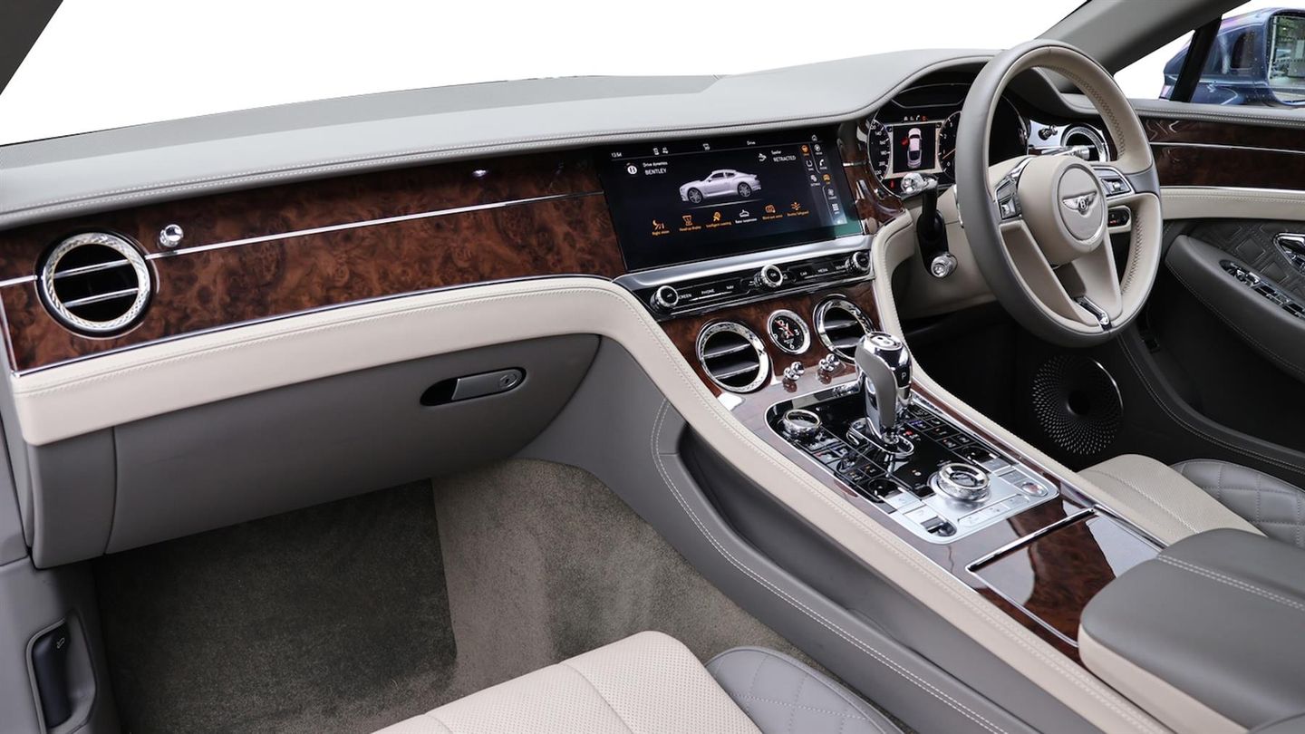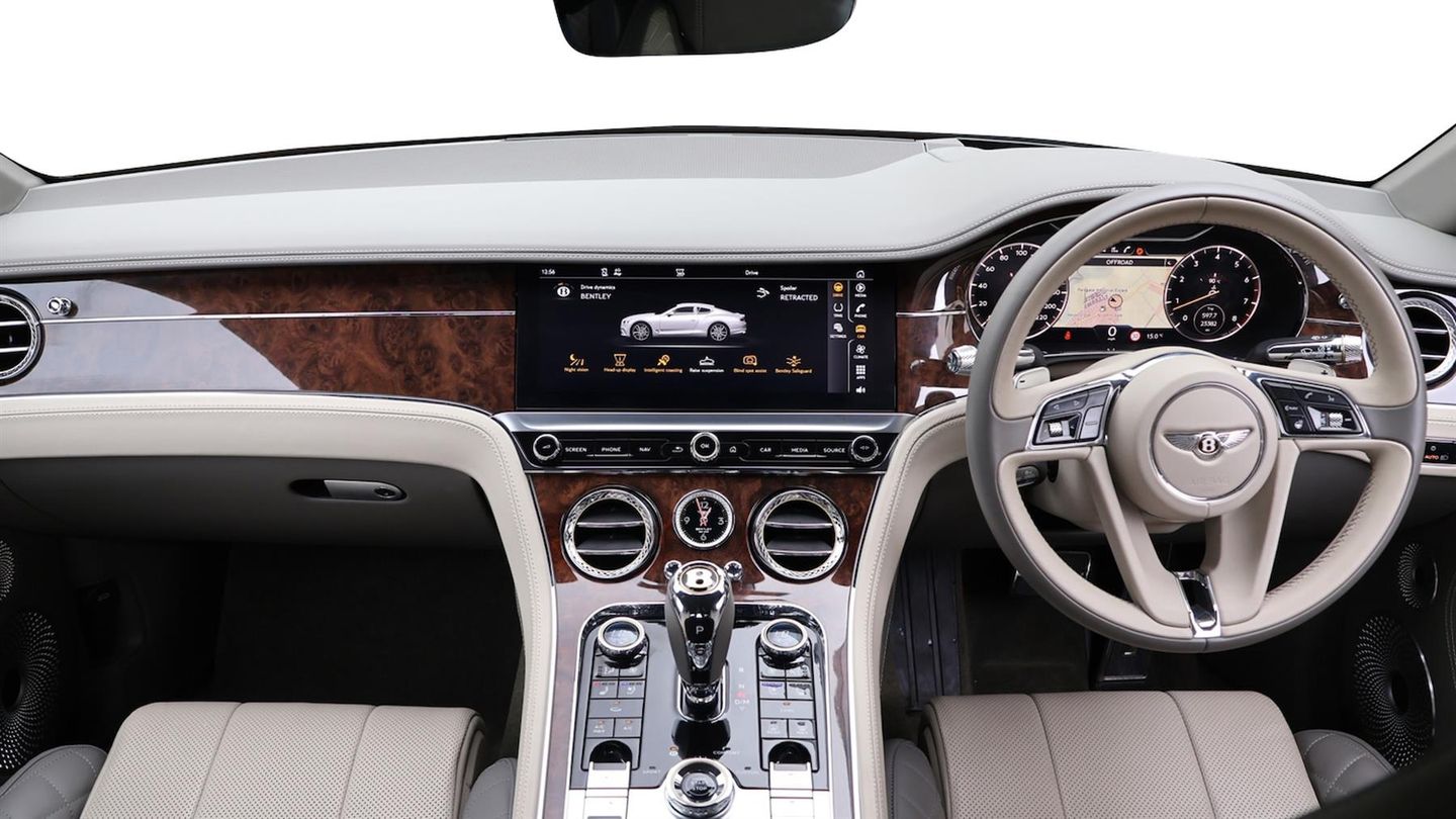 Mulliner Driving Specification,Bang & Olufsen for Bentley Premium Audio,Bentley Rotating Display,22" Five Open-Spoke Polished Alloy Wheels,Touring Specification,Front Seat Comfort Specification,Centenary Specification,Bright Chromed Lower Bumper Matrix Style Grille,Ventilated Front Seats with Massage Function,Diamond Quilted Hide Seats,Heated Duo-Tone 3 Spoke Hide Trimmed Steering Wheel,Contrast Binding to Carpet Overmats,Chrome Pinstripe to Fascia and Door Waistrails,Remote Controlled Garage Door Opener,Welcome Lighting,Contrast Stitching,City Specification,Diamond Knurling,Inductive Phone Charger,Mood Lighting Specification,Bentley Dynamic Ride,Top View Camera,Night Vision,Head-Up Display,Adaptive Cruise Control,Burr Walnut Veneer