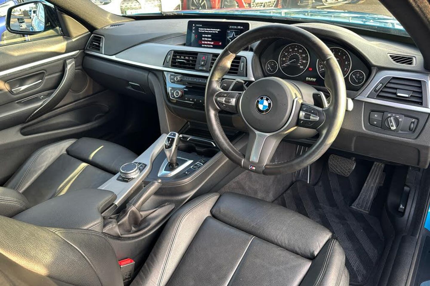 12V Power Socket in Front Centre Console and Passenger Footwell 18in Alloy Wheels - M Double Spoke - 400M Access to BMW Connected Plus 12 Month Subscription From New Air Breather - Black High Gloss Air Conditioning Automatic with Two-Zone Control Air Conditioning and Radio Control Panel in High Gloss Black Airbags Alarm System - Thatcham 1 with Remote Control and Engine Immobiliser Ambient Lighting - Switchable BMW Classic Orange - Cold White - LED Armrest - Front - Folding with Storage Compartment BMW ConnectedDrive Online Services BMW Emergency Call BMW Professional Radio with Single CD Player - with MP3 Playback Compatibility BMW TeleServices Battery Safety Cut Off Bluetooth Hands-Free Facility with USB Audio Interface and Audio Streaming Bottle Holders Integrated into Door Trim Storage Compartments - Front - Up to 1 litre Brake Pad Wear Indicator - Front and Rear Bumper System Front and Rear - Replaceable Deformation Elements for Impacts Up to 9mph Central Locking Switch - Doors - Fuel Filler Cap - Luggage Compartment Centre Armrest For Rear Seats - Include Two Cup Holders Centre Console - Panel Highlight in Chrome Check Control Warning System for Monitoring of Lights and Door-Luggage Compartment Open Warning Child Seat ISOFIX Attachment - Rear with Passenger Airbag Deactivation Condition Based Service Crash Sensor Cruise Control with Brake Function Cup Holders - Two in Front with Sliding Lid DAB Digital Radio DSC - Dynamic Stability Control Plus Direction Indicator - Side Repeaters - Integrated in Exterior Mirrors Direction Indicator Lenses - LED Door Sill Finishers - M Designation Dynamic Brake Lights EPS - Electric Power Steering Electric Windows - Front with Open-Close Fingertip Control - Anti-Trap Facility and Comfort Closing Function Exhaust Tailpipes - Dual Left - with Chrome Finisher Extended Lighting Exterior Mirrors - Heated - Electrically Adjustable Exterior Parts in Body Colour Exterior Trim - High-Gloss Shadowline First Aid Kit and Warning Triangle Floor Mats - Velour Front Air Inlet with High-Gloss Black Finisher Full Black Panel Display Glove Box Glove Compartment - Opener with Chrome Trim Handbrake Lever - Gear Knob in Leather Headlining - Anthracite Heat Protection Glazing with Green Tint High Level Third Brake Light Instrument Cluster Integrated Rear Seat Headrests - Two Interior Lighting - Front Centre Over Interior Mirror with Soft-Light and Rear Centre Interior Trim - Aluminium Hexagon Trim Finishers with Estoril Blue Matt Highlight Kidney Grille - Chrome with Extra Wide Black - High Gloss Vertical Slats LED Front Foglights LED Headlights LED Taillights with New 3D L-Shaped LED Light Design Lights-On Warning by Audio Warning Signal When Ignition is Switched Off Luggage Compartment - Lashing Eyes Luggage Compartment - Light M Aerodynamic Bodystyling M Sport Instrument Cluster M Sport Multi-Function Leather Steering Wheel - Three-Spoke M Sport Package M Sport Suspension Model Designation Navigation System - BMW Professional Multimedia Non Smokers Package OBC - On-Board Computer Oil Sensor For Level and Grade - Warning by Check Control System Optimum Shift Indicator PDC - Park Distance Control - Front and Rear Personal Profile Rain Sensor with Automatic Headlight Activation Real Time Traffic Information Rear Bumper with High-Gloss Black Finisher Rear Suspension - Five-Link Remote Control Including Integrated Key - 2 Remote Control with Integrated Key with Insert in Blue Remote Services Run Flat Tyres Seat Belt Security Check for Driver Seat Heating for Driver and Front Passenger Seatbelt Handover for Driver and Front Passenger - Automatic Seats - 60-40 Split Folding Rear Servotronic Steering Shark Fin Side Armrests - Front and Rear Integrated into Door Trim Side Exterior M Designation Badges Side Impact Protection Sport Seats - Front Start-Stop Button with Comfort Go Keyless Engine Start and Auto Start-Stop Deactivation Button Steering Column with Manual Reach and Rake Adjustment Storage Compartment in Rear Centre Console Sun Visors with Vanity Mirrors and Ticket Holder Suspension - Front Aluminium Three-Point Seat Belts - All Seats Toolkit Located in Luggage Compartment Twin Horns Tyre Pressure Monitor with a Three-Level Warning Strategy Tyres - Reduced Rolling Resistance Visible VIN Welcome Light Windscreen Washer Jets - Heated Windscreen Wipers - Two-Speed with Adjustable Intervals Windscreen with Grey Shade Band iDrive Controller - 8 Favourite Buttons