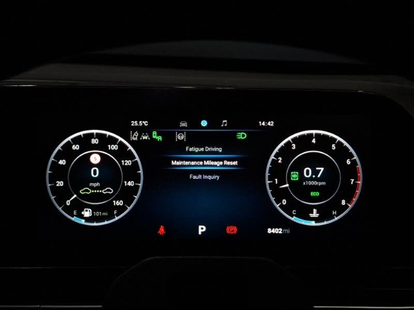 10.25" LCD instrument cluster, 10.25" central control LCD display, 360 degree HD camera, 3 driving modes Normal, Eco, Sport, Adaptive cruise control, Bluetooth, Blind spot detection, DAI Forward Departure System, Drive away assist, Emergency lane keep assist, Front and rear parking sensors, Front collision warning, Intelligent voice assistant, Lane departure warning, Lane departure prevention, Mobile phone wireless charging pad, Power tailgate, Wireless Apple CarPlay/Android Auto, Traffic jam assist, Speed limiter, USB charging port in rear view mirror, Sony 8 speaker, Automatic LED headlights, LED rear lights, LED front fog lights, LED daytime running lights, LED centre high mounted stop light, Power sunroof, 2 zone automatic air conditioning, Heated steering wheel, Heated front seats, Keyless entry and push button start system