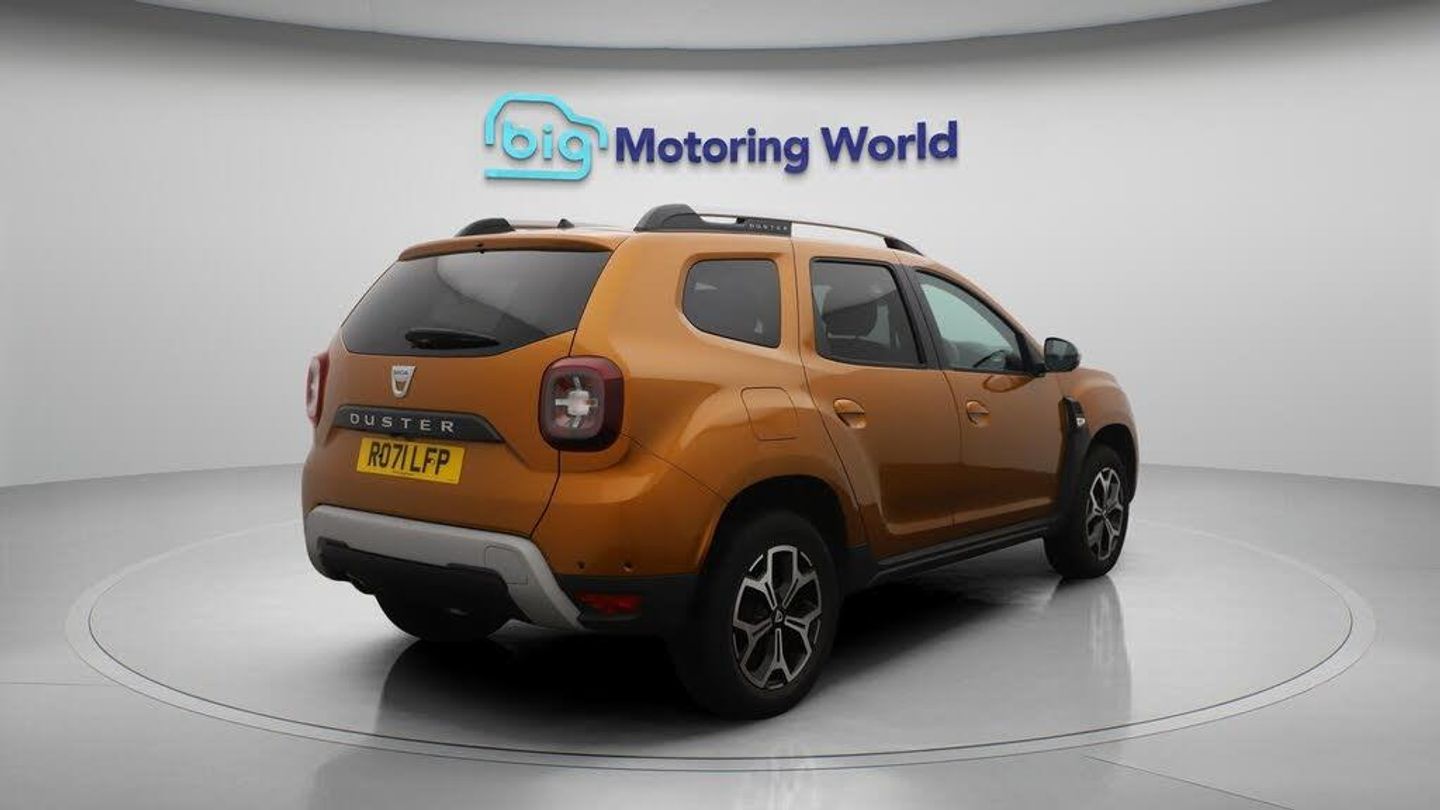 17'' Alloy Wheels,Privacy Glass-Our Dacia Duster is finished in Orange. Specification includes a range of fantastic features including 17'' Alloy Wheels, Privacy Glass, Rear View Camera, Bluetooth, Blind Spot Assist, Parking Sensors, Cruise Control, Climate Control, Voice Control, DAB Radio Specification information is supplied by CAPHPI and may vary to the actual car. This data does not form any part of a buying contact. Please check specification prior to purchase in-store. The MOT is valid until September 2026, visit bigmotoringworld.co.uk for more photos, a 360 tour, service history and a free HPI report.Were BIG on peace of mind and this Orange Dacia Duster has completed our comprehensive 200 point inspection and passed all checks. Its ready for you to drive away with immediate collection in-store. We include a 90-day warranty as standard plus an option to extend for up to 3 years.Reserve this car exclusively for you, safely and securely at bigmotoringworld.co.uk, with a fully refundable £99 deposit. Test drive before you buy, with no commitment, no hassle and a completely haggle free experience. Still searching and want to see thousands more cars? We are BIG on choice with over 8000 cars to choose from.Visit our award winning web site bigmotoringworld.co.uk.Were Big Motoring World and were BIG on what matters to you.-Multi Award Winning Website & Car Supermarket of the year WINNER 2018. Call now.