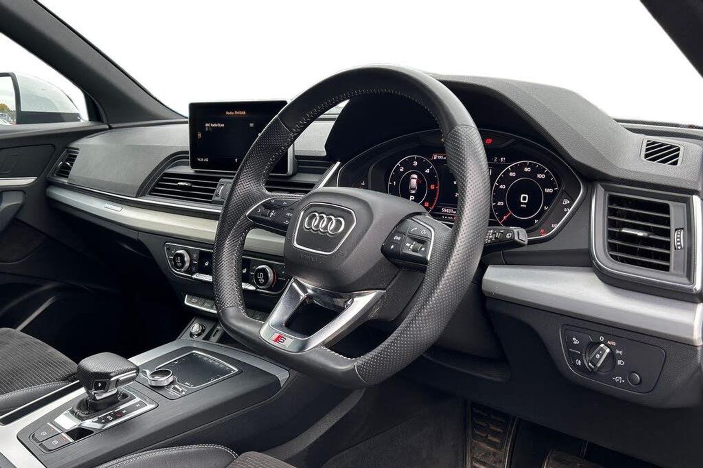 7" Colour driver information system, Audi connect safety and service (e-call), Audi drive select, Audi parking system plus with front and rear sensors, Audi Pre sense collision avoidance, Audi smartphone interface, Automatic start-stop system with coasting functionality and efficiency programme, Cruise control + speed limiter, Electro - mechanical power assisted steering, MMI Navigation, Mobile telephone preparation - bluetooth interface, Power tailgate, Service interval indicator, Voice control system, Diesel particulate filter, Dynamic suspension, Quattro on demand, 2 x USB charging port with aux input socket, 2x SD card slot, CD player, DAB Digital radio, MMI radio plus with 7" colour MMI screen and MMI controller, Acoustic windscreen, Air inlets in matt titanium black with blades in matt aluminium silver, Aluminium roof rails, Auto dimming rear view mirror, Automatic headlight levelling, Body colour bumpers, Body colour door mirrors, Body colour rear diffuser with matt aluminium silver surrounds, Body colour S Line side skirts, Body colour underbody protection, Chrome exhaust tailpipe, Electric adjustable/heated/folding door mirrors, Front and rear electric windows, High beam assistant, LED headlights with LED rear lights + dynamic rear indicators, Light and rain sensor for auto activation of lights and windscreen wipers, Loading sill protector in stainless steel, Privacy glass with front acoustic glazing, Rear wiper, S front and rear bumpers, S Line badges on the front wings, S Line rear spoiler, Twilight grey matt radiator grille with matt aluminium horizontal chrome struts, 3 rear headrests, 40:20:40 split folding rear seat with rear centre armrest, Black cloth headlining, Contrast stitching on seats, steering wheel and gear lever gaiter, Deluxe 3 zone electronic climate control, Front centre armrest, Front sport seats with S embossed logo, Front/rear floor mats, Heated front seats, Height adjustable front head restraints, Height/reach adjustable steering column, Illuminated door sill trims with S logo, ISOFIX child seat mounting and top tether, Luggage compartment carpet, Manual seat adjustment with 4-way electric lumbar support, Perforated leather gearknob, Removable luggage compartment floor, Stainless steel pedals, Sunvisors with vanity mirrors, Trunk roller cover, High gloss pack - Q5, LED interior light pack - Q5, Non Smokers pack, 3 point seatbelts on all seats, 6 airbags - Driver, front passenger, curtain and side airbags, Electromechanical parking brake, Electronic stabilisation control including ABS, ASR and EDL, Front passenger airbag deactivation, Hill descent control, Hill hold assist, Multi collision brake assist, Pop-up bonnet for pedestrian protection, Pre sense city, Seat belt force limiter, Seatbelt monitoring, Tyre pressure warning, Warning triangle and first aid kit, Anti theft alarm, Anti-theft wheel bolts, Keyless Go access/ignition system, Remote central locking, Matt brushed aluminium inlays, Tool kit