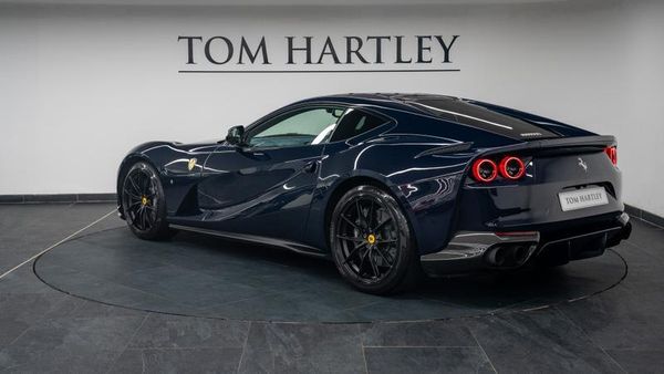 Full Ferrari Service History, Suspension Lifter, Front Bumper Mouth in Carbon Fibre, Carbon Fibre Front Spoiler, Rear Side Bumpers in Carbon Fibre, Carbon Fibre Driver Zone + LEDs. Carbon Fibre Central Bridge, Exterior Sill Kick in Carbon Fibre, Carbon Fibre Upper Tunnel Trim, Dash Inserts in Carbon Fibre, Matte Black Forged Racing Wheels, Adaptive Headlights with SBL Function, Coloured Inner Details in Azzurro Santorini, Upper and Lower Dashboard in Blu Medio Leather, Daytona Style Seats, Fully Electric Seats, Black Tailpipe Tips, Coloured Mats with Logo, Scuderia Ferrari Shields, Front and Rear Parking Cameras, Passenger Display, Privacy Rear Windows, Yellow Rev Counter, Matte Black Forged Racing Wheels, Coloured Special Stitching in Nero, High Emotion Low Emission (Start/Stop), NavTrak Anti-Theft System, Central Stripe on Daytona Seats in Azzurro Santorini Leather.