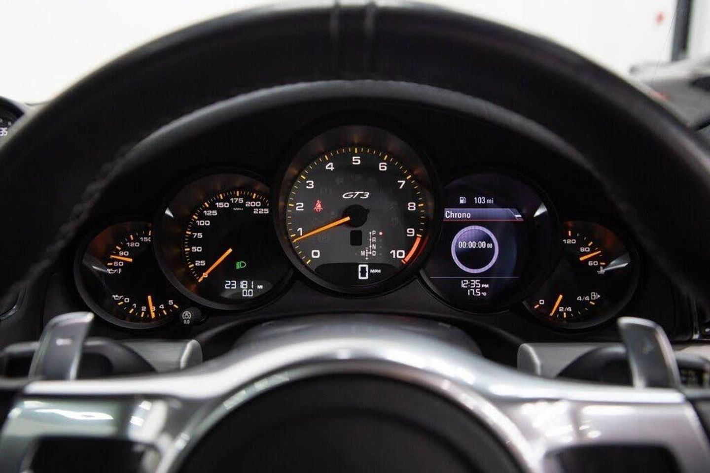 Audio System CDR Plus, Privacy Glass - Rear Window, GT Silver, Sport Chrono Package, Luggage Net in Passenger Footwell, Lifting System - Front Axle, PCCB - Porsche Ceramic Composite Brakes, 2 x 25 Watt Output, 20in Alloy Wheels - GT3 Wheels, 20in Alloy Wheels - Platinum Coloured Forged, 7in Colour Display, ABD - Automatic Brake Differential, ABS - Anti-lock Brake System, ASR - Anti Slip Regulation, Airbag - Driver, Airbag - Head, Airbag - Passenger, Airbag - Thorax in Seat Side Bolsters, Alarm System with Radar Based Interior Surveillance, Armrest - Alcantara, Bi-Xenon Headlights, Black Interior - Door Handles Centre Console in Alcantara, Brake Calipers - Red, Brake Pad Wear Monitoring on Each Brake Caliper, CD Radio, CDR Audio System, Cupholders x2, Daytime Running Lights - LED, Door Mirrors - Electrically Adjustable and Heated, Dynamic Range Adjustment, Electric Parking Brake, Electric Windows - Front with One Touch Operation, Electrically Operated Parking Brake, Engine Immobiliser, Front 12v Sockets x3, GT3 Logo - Door Entry Guards Rev Counter and Rear Cover, Glove Compartment Illumination, Green Tinted Heat-Insulating Glass, Headlight Assistance, Headlight Cleaning System, Headlining - Black Alcantara, Instrument Cluster with Central Rev Counter and 4.6in TFT VGA Display, Integrated Cluster of Five Round Instruments, Interior Lighting with Variable Dimming, Key Remote Luggage Compartment Lid Release, MSR - Motor Slip Regulation, McPherson-Strut Suspension with Anti-Roll Bar at Front, PASM - Porsche Active Suspension Management inc PDCC, PSM - Porsche Stability Management, PVTS - Porsche Vehicle Tracking System, Particle-Pollen Filter with Activated Charcoal Canister, Porsche Side Impact Protection - POSIP, Power Assisted Steering with Variable Steering Ratio, Reading Lights, Rear Axle Steering with Sports Tuning, Rear Reflector Integrated in Rear Section, Remote Central Locking, Single CD Drive Supporting MP3 Audio Playback, Speakers x4, Sports Seats Plus - Electrical 4 Way, Steering Wheel - Sport Design Leather with Paddles, Trip Computer, Two-Zone Automatic Climate Control, Tyre Repair Sealant and Electric Air Compressor, Tyre Sealing Compound and Electric Air Compressor, Universal Audio Interface - AUX, Welcome Home Lighting, Windscreen Washer System with Two Wiper Speeds and Heated Washer Jets