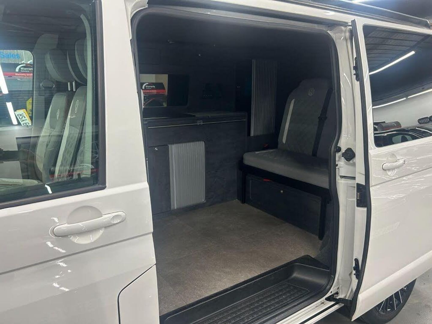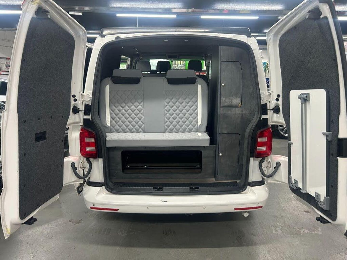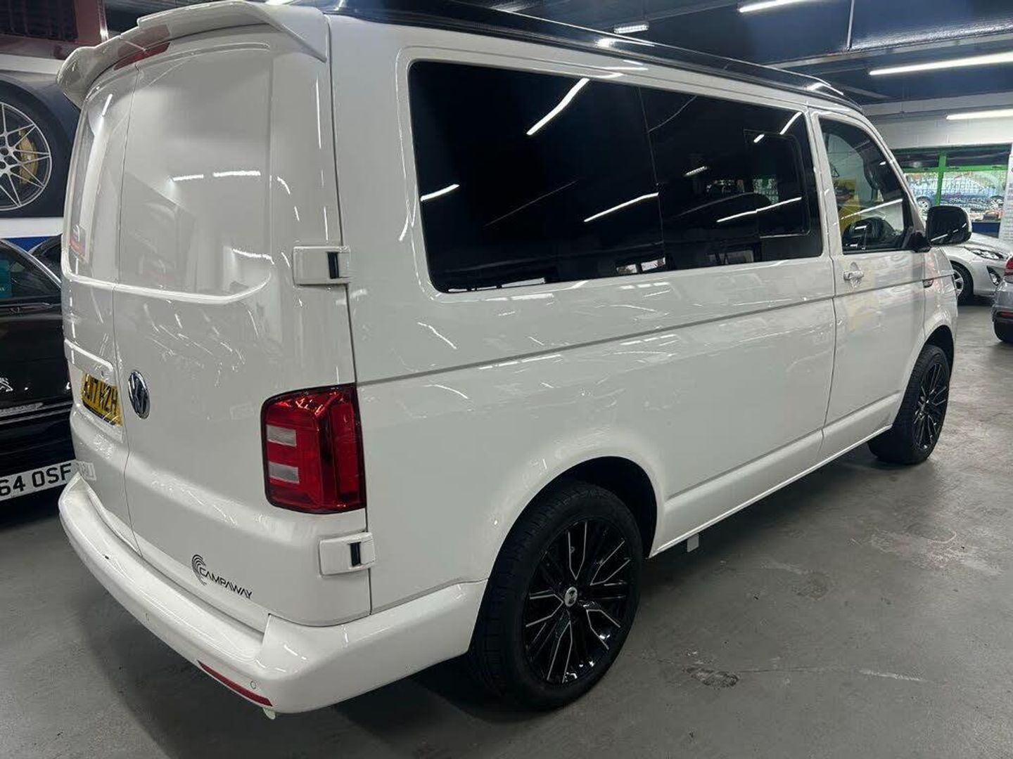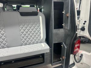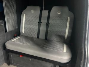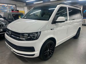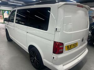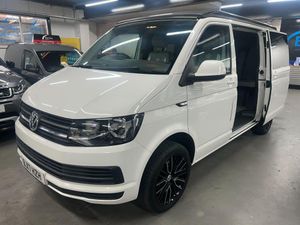 Really nice example Campaway conversion based on the Transporter T28 T-Line TDI BMT Van with side windows. Pop up roof and rock and roll bed.