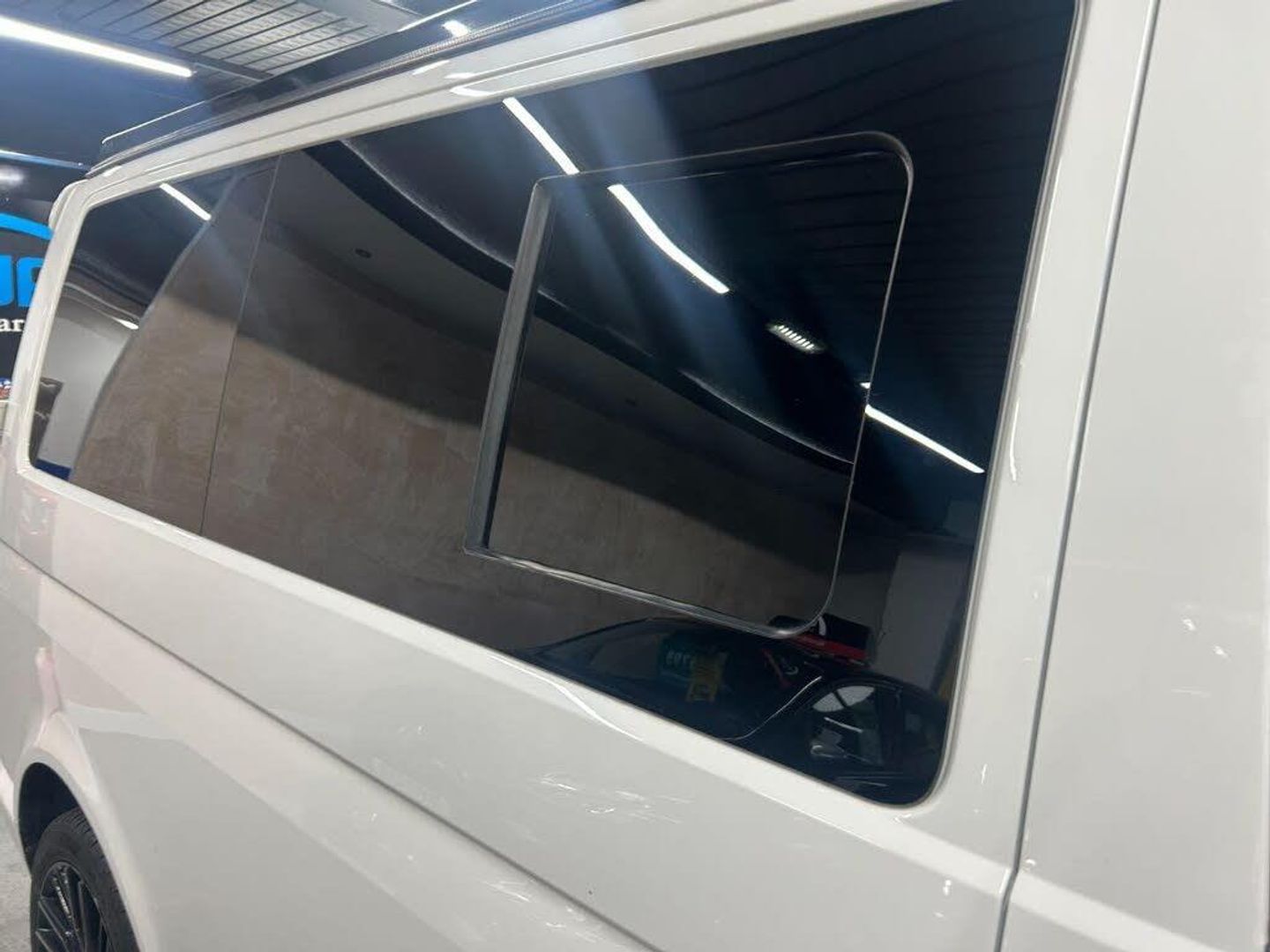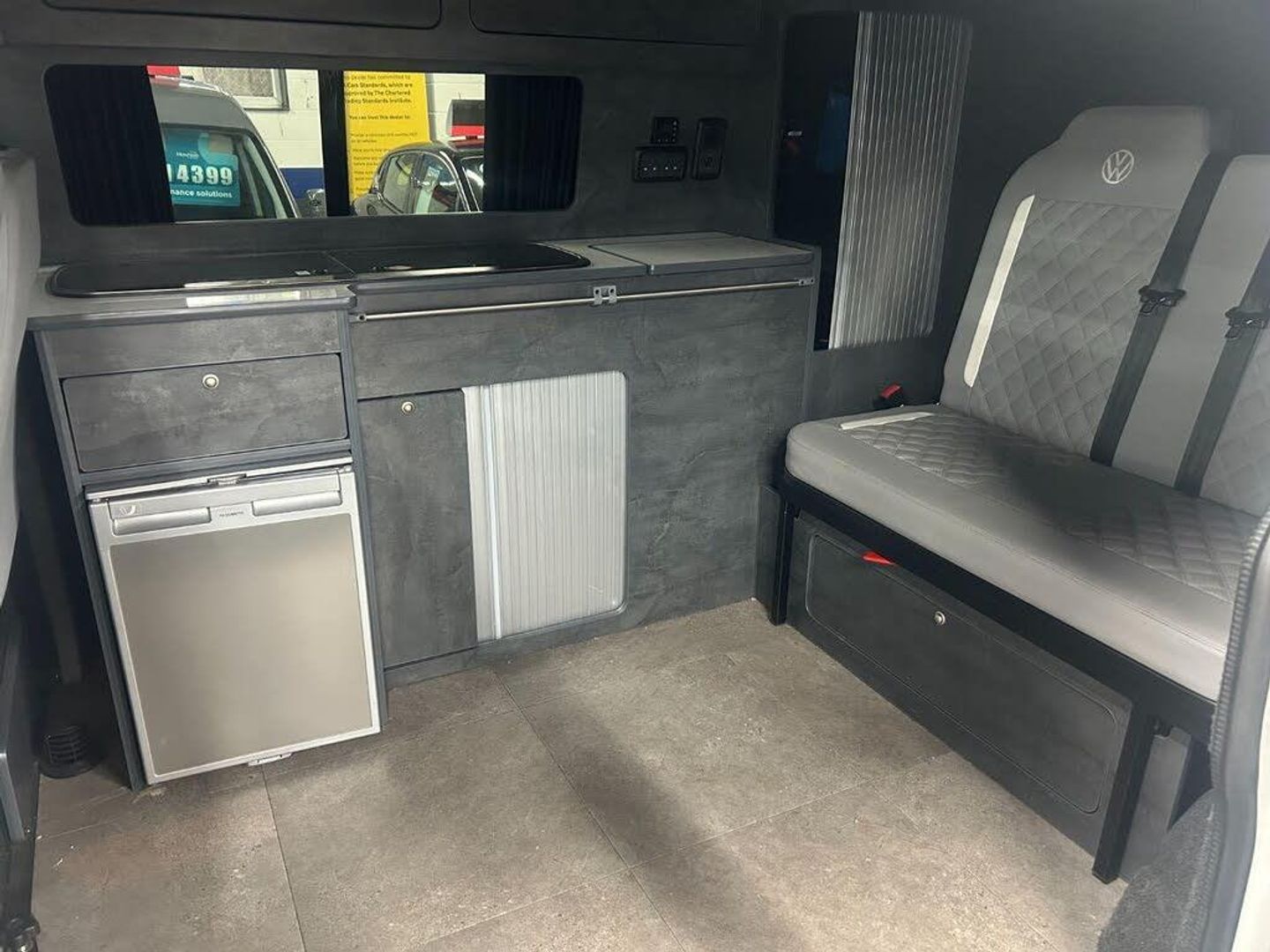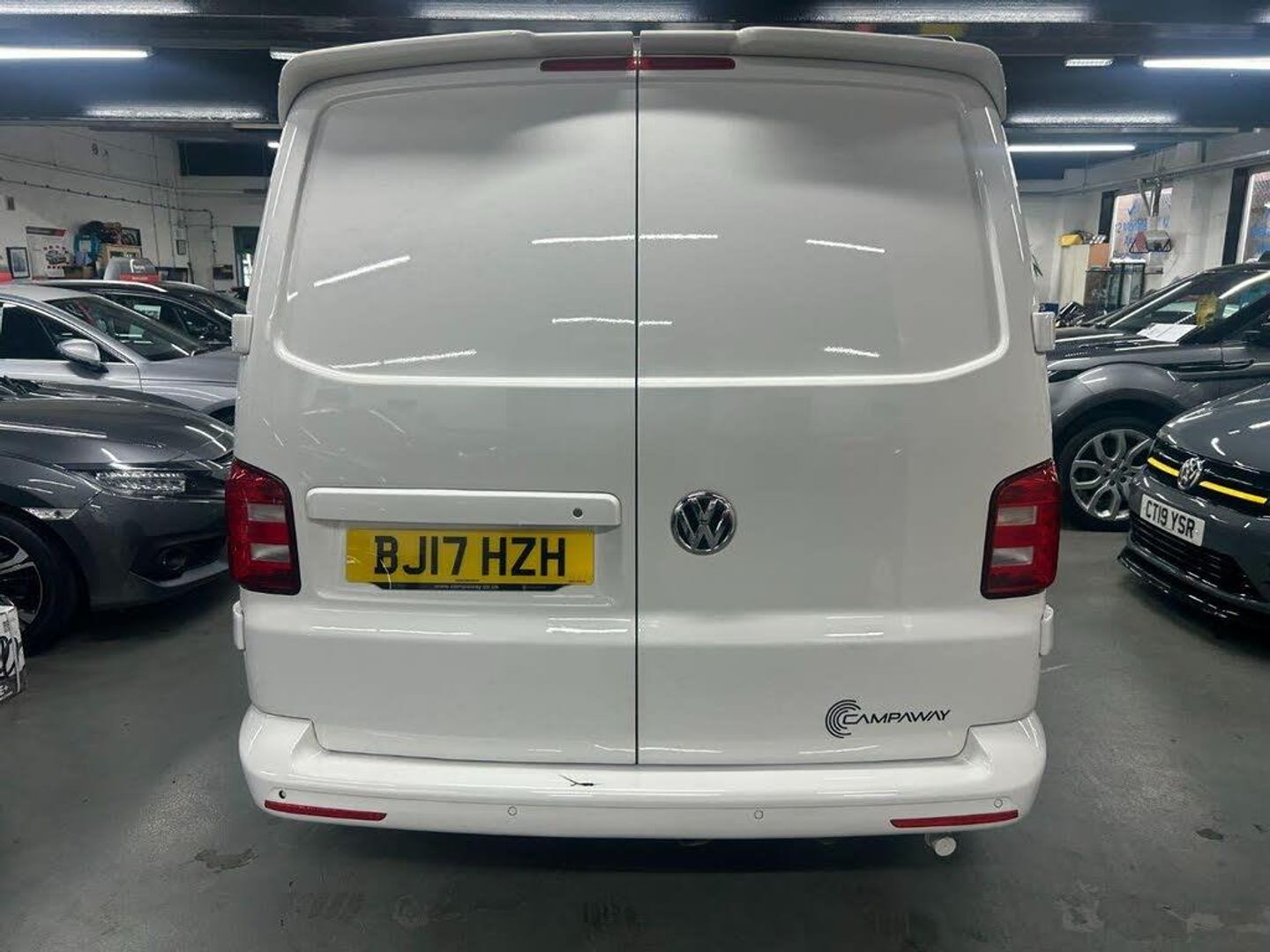Really nice example Campaway conversion based on the Transporter T28 T-Line TDI BMT Van with side windows. Pop up roof and rock and roll bed.