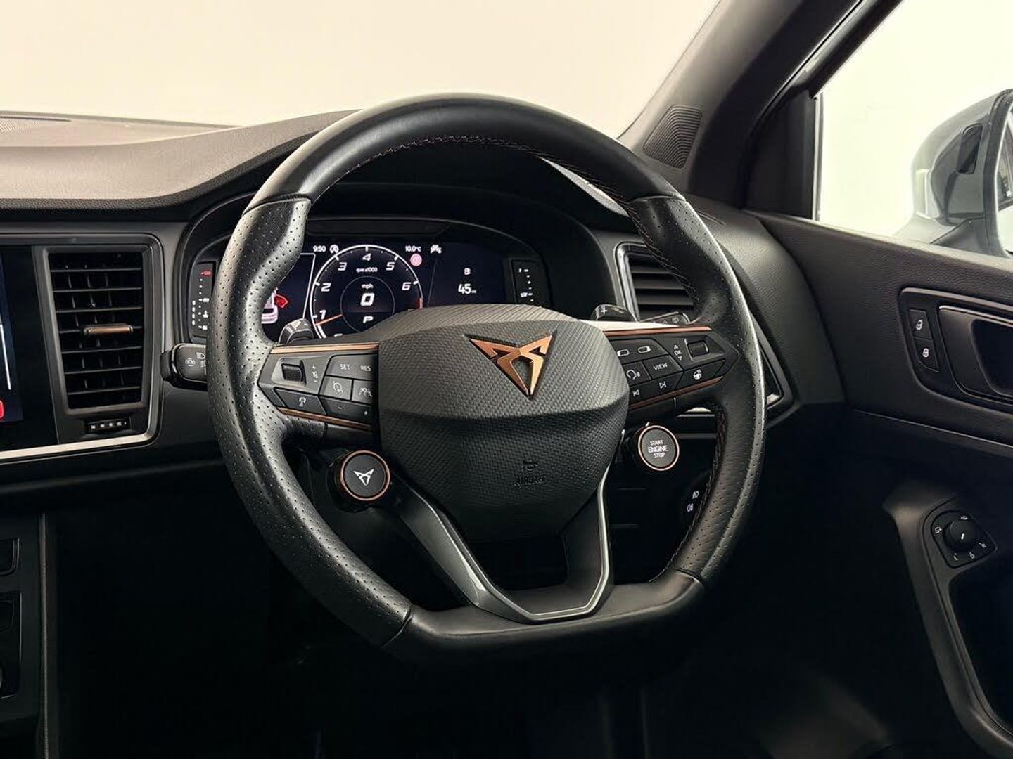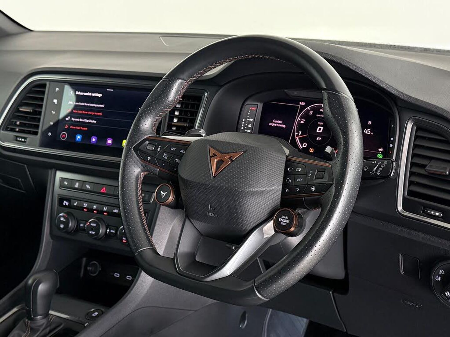 12V Socket in Front, 19in Alloy Wheels - Copper Alloy, ABS - Anti-Lock Braking System - TCS - Traction Control System - ESC - Electronic Stability Control - XDS - Electronic Differential Lock System, Alarm, Aluminium Pedals, Ambient Lighting - Multi-Coloured and LED Interior Illumination, Brake Calipers - Front and Rear - Black with CUPRA Logo, Brembo Brakes, Bucket Sports Seats, CUPRA Connect, CUPRA Drive Profile, CUPRA Supersports Steering Wheel including Satellite Buttons, CURPA Sport Suspension, Convenience Pack, Cruise Control with Speed Limiter, Dark Tinted Rear Windows, Daytime Running Lights, Digital Cockpit, Door Mirrors Electrically Adjustable - Folding and Heated, Door Mirrors with Welcome Light Silhoutte, Driver and Front Passenger Airbags with Front Passenger Airbag Deactivation, Drivers Knee Airbag, Drivers and Passenger Seats - Manual Height and Lumbar Adjustment, Dual-Zone Climate Control, Dynamic Headlight Range Control with Self-Adjusting Whilst Driving, Electric Driver Seat with Memory Function, Electric Front and Rear Windows, Electronic Parking Brake with Autohold Function, Front Assist including Autonomous Emergency Braking, Front Centre Armrest, Front Grille Frame in Chrome, Front Seat with Back Storage Pockets, Front Side Airbags, Front and Rear Seat Belt Reminders, Heated Front Seats, Heated Steering Wheel, Hill Hold Control, ISOFIX Points in Outer Rear Seats with Top Tether Anchorage Points, Illuminated Aluminium Front Door Sill, Interior Lighting, Keyless Entry, LED Headlamps with Lens and LED Fog Lamps with Cornering Function, LED Rear Tail-Lights with Dynamic Indicators, Locking Wheel Bolts, Navigation System Plus, Rear Armrest with Access to the Boot, Rear Fog Lights, Rear Spoiler, Rear View Camera, Roof Rails - Glossy Black, Safe and Driving Pack, Self Parking Functionality includes Front and Rear Parking Sensors, Split Folding Rear Seats - 60-40, Steering Response, Steering Wheel-Mounted Gearshift Paddles, Storage Compartment in Roof Console for Sunglasses, Tiredness Recognition System, Top View Camera, Two Curtain Airbags, Tyre Pressure Monitoring System, Virtual Pedal and Electric Tailgate, Visible Twin Exhaust Pipes - Both Sides, Wheel Arch Surrounds - Body Coloured, Window Trim - Glossy Black, Wireless Full Link Smartphone Integration, Wireless Phone Charger