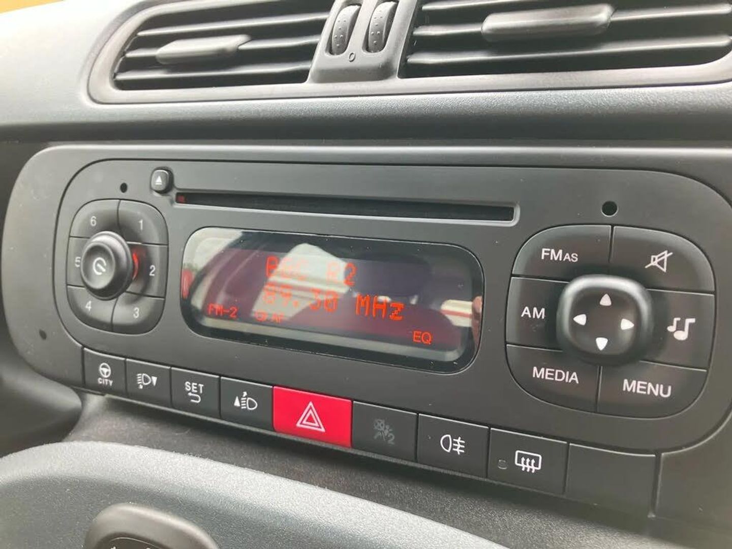 Dual drive PAS,Outside temperature display,Stop/start system,Trip computer,2 speakers,Radio/CD with MP3 player and USB,Black door handles,Black door mirrors,Body colour bumpers,Electric front windows,Rear wiper,12V socket,Air conditioning + pollen filter,Cloth upholstery,Driver's sun visor with vanity mirror,Floor mats,Height adjustable steering wheel,Isofix attachments on outer rear seats,Passenger sunvisor with vanity mirror,ABS/EBD,Anti-whiplash front headrests,Brake assist function,Driver airbag,ESP + ASR + hill holder,Front passenger airbag,Tyre pressure monitoring system,Window airbags,Central door locking,Immobiliser,14" Steel wheels with full POP wheel cap,Summer tyres,Ambient White,Cloth - Black-Red