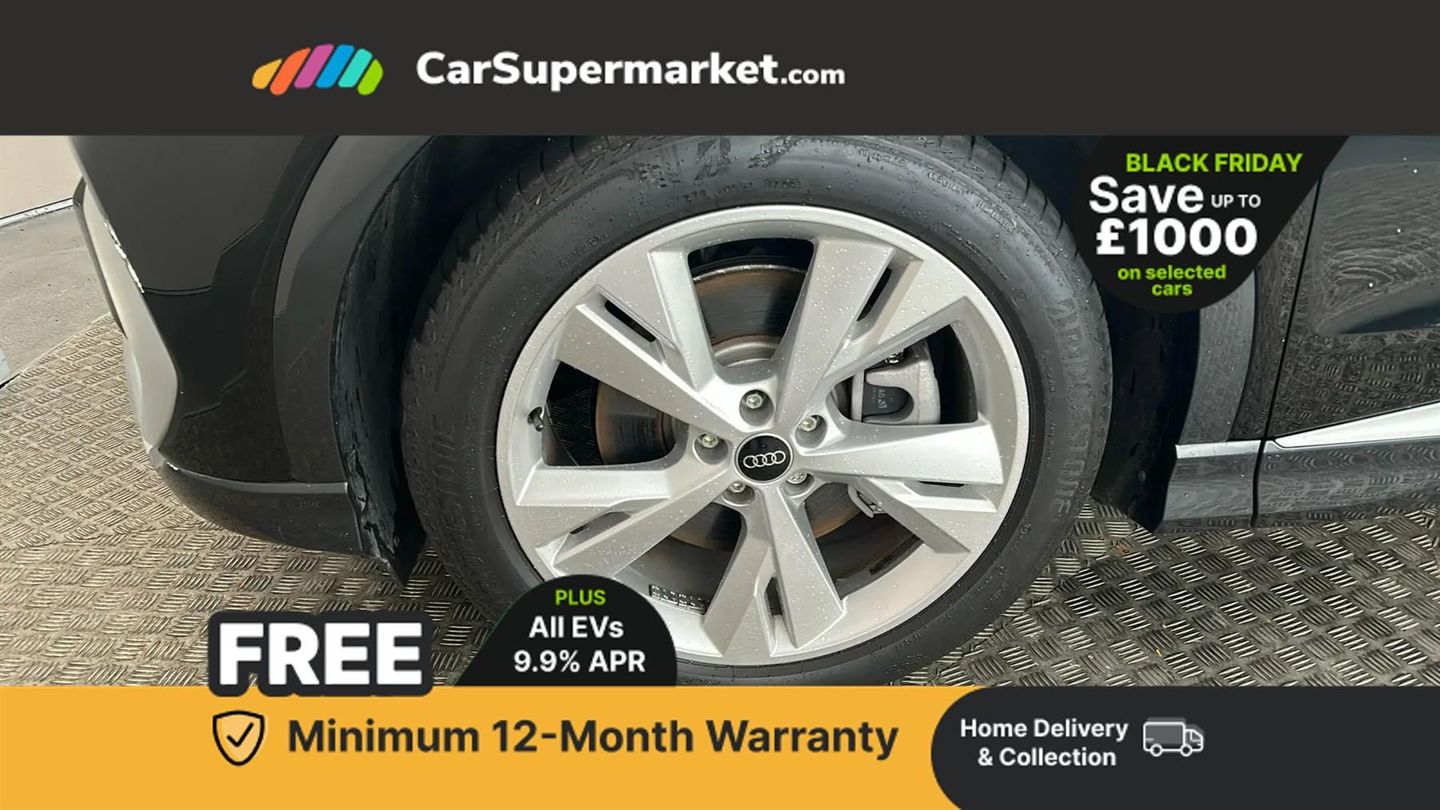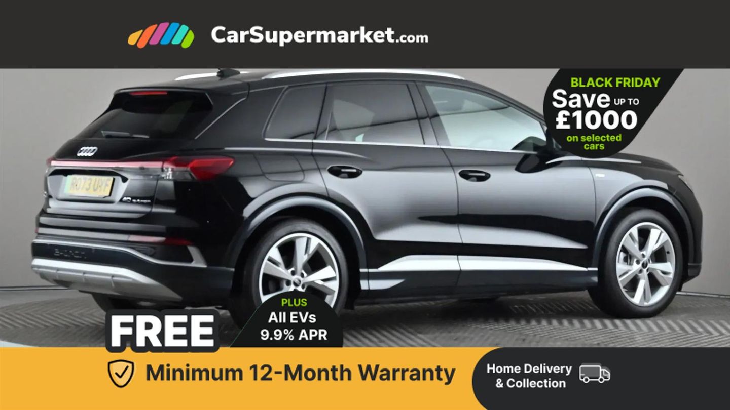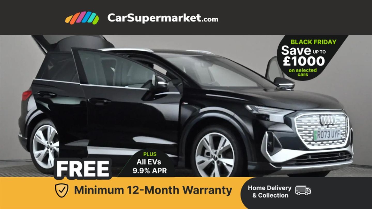 Audi connect safety and service (e-call),Audi drive select,Audi Virtual Cockpit - 10.25" display,Bluetooth interface,Camera based traffic sign recognition,Lane departure warning system,MMI Navigation Plus with high resolution 11.6 inch touchscreen colour display,Progressive steering,Swerve assist and turn assist,11KW onboard charger,135kW DC charging capability,AC and DC charging access point positioned on the rear right,Compact e-tron charging system,Household plug type G (GB),Industry plug CEE 32 A/230 V/6 h/long + straight,2 USB-C ports with charge and data functions,DAB Digital radio,Aluminium roof rails,Body coloured door mirrors,Contrast bumpers in Manhattan grey,Electrically adjustable/heated/folding/auto dimming door mirrors with integrated LED indications + kerb view function for passenger side,Frameless auto dimming interior rear view mirror,LED daytime running lights,Projection light in the exterior mirrors, e-tron logo projected from the underside of the exterior mirror onto the ground,Rear side wing doors,Rear wiper,S line exterior styling,Single frame grille with a structured, closed surface within an octagonal shape,3 seat bench in 2nd row,3 zone automatic air conditioning,4 way electric lumbar support for driver and front passenger,Accent surfaces in gloss black - centre console control panel, switch panel and trim on front doors in gloss black,Black cloth headlining,Driver/passenger manual seat height adjustment,Front door sill trims with aluminium inlay, illuminated with S logo,Heated front seats,Single front passenger seat,Gloss styling pack - Q4 E-tron,Non smoking pack - Q4 E-tron,3x3 point rear seatbelts,Driver and front passenger airbag with passenger airbag deactivation,Electric child locks,Pre-sense front with pedestrian and cyclist detection,Tyre pressure loss indicator,Anti theft alarm,Anti-theft wheel bolts,Keyless Go,Aluminium look interior elements,Adaptive cruise control with speed limiter,Audi smartphone interface,Driver alert system,Power operated tailgate with sensor controlled release,Rear view camera,Mode 3 type 2 AC charging cable 22kW,Sport suspension,Heat insulating glass windscreen,Heated rear window,LED 3rd brake light,Privacy glass - dark-tinted rear window, rear door windows and rear side windows,S Line badges on the front wings,40/20/40 split folding rear seat bench,Comfort auxiliary air conditioning,Door armrests in leatherette,Front sport seats with integrated head reastrains,Rear centre armrest with cupholders,Rear head restraints,Steering wheel with trim in chrome look, S emblem, steering wheel grips in perforated leather and contrast stitching,Ambient lighting plus pack - Q4 E-tron,Technology pack - Q4 E-tron,Acoustic vehicle alerting system,Convenience key with safelock,First aid kit with warning triangle and vests,Front side airbags with head airbag system and front interaction airbag,i - Size child seat mounting on the front passenger side and i - Size and top tether on the outer rear seats,Seat belt monitoring,Vehicle tool kit,Pedals in stainless steel,Technology Pack