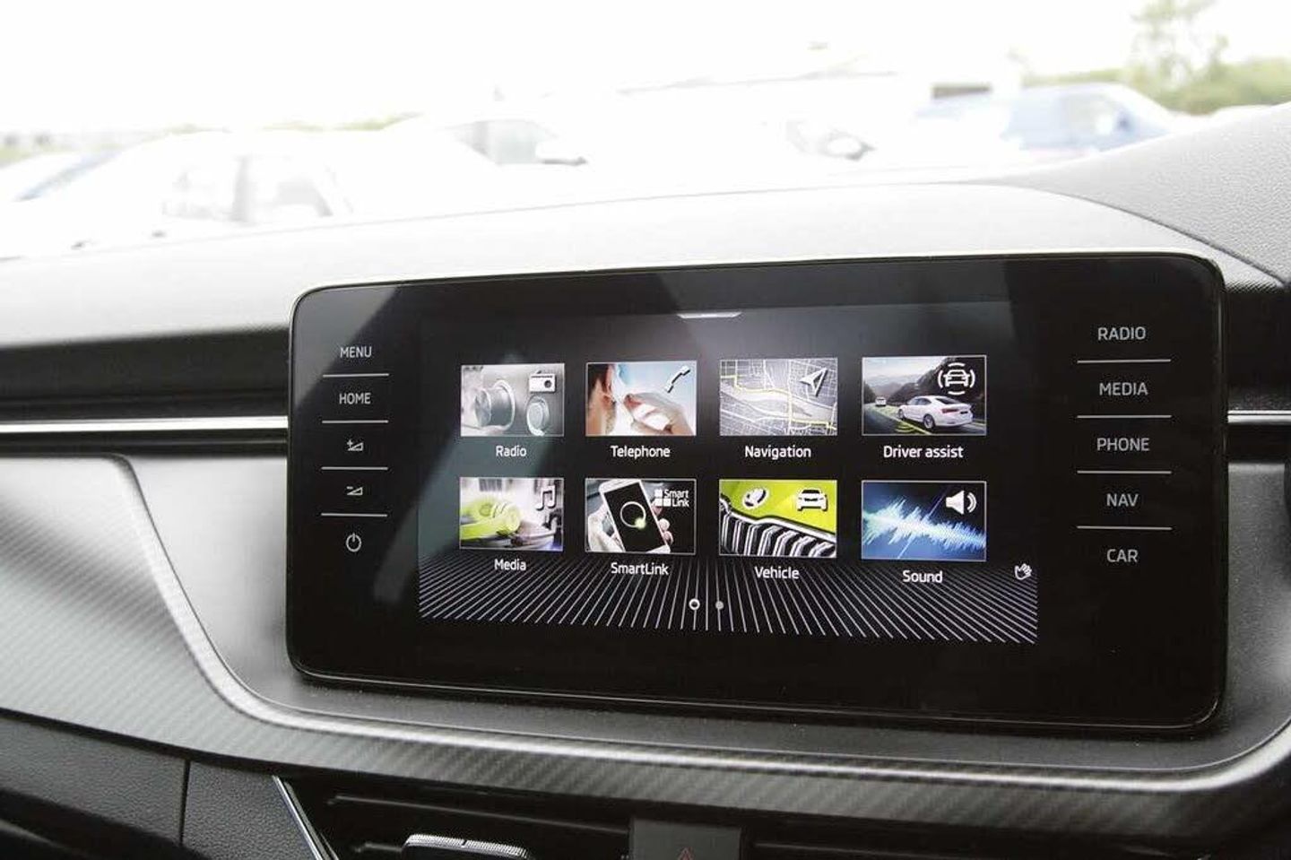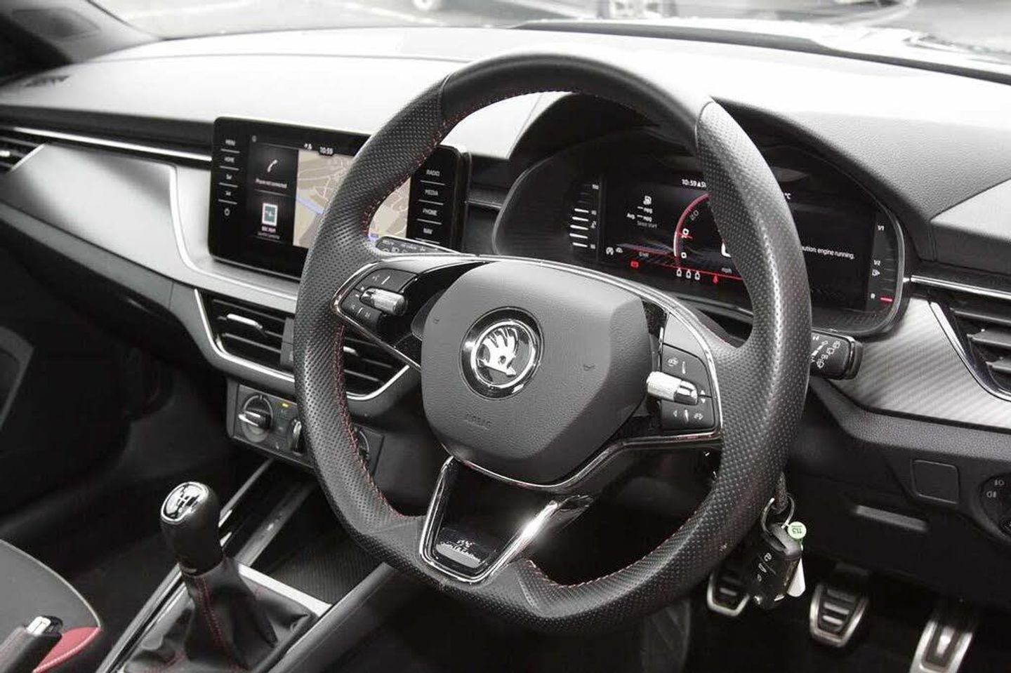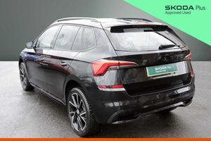 Exterior Features, Pearl effect paint, Safety, Cruise control, Rear parking sensors, Trim, Heated front seats and washer nozzles, Wheels, Steel space saving spare wheel, Paint - Pearlescent, Pearl - Black magic, Trim - Cloth, Cloth - Black with Red trim, Exterior Features, Front and rear electric windows, Light sensors, Privacy glass, Rear wiper, Black radiator grille, Black rear diffuser, Body colour bumpers, Body colour door handles, Body colour roof spoiler, Boot lettering in black, Chrome grille surround, Front sport bumper, KAMIQ Door sills, Monte carlo plaque, Panoramic sunroof with black roof rails, Full LED headlights with adaptive front light system and front cornering fog lights, Headlight range control, High functionality rear led lights with dynamic indicators, LED daytime running lights, Rear fog lights, Safety, ESP, Hill hold control, Manual parking brake, Rear disc brakes, Traction control, Front assist system, PAS, Speed limiter, Black door mirrors, Dimming rear view mirror with black surround, Electrically adjustable and heated door mirrors, 3x3 point rear seatbelts, Airbags - driver and front passenger, Front passenger airbag deactivation switch, Front side airbags with curtain airbags, Manual rear child locks, Seatbelt reminder for driver an co-driver, Tyre pressure monitor, Interior Features, Textile floor mats, 12V Accessory socket in centre console, Aluminium pedals, Black ceiling for black/beige interior, Black roof lining, Chrome inner door handles, Cloth upholstery, Glove compartment with illumination, Ice scraper, Leather gear lever, Rake/reach adjustable steering wheel, Umbrella in driver's door, Reading lights, Sun visors with illumination on front passenger, Audio / Communications, Bluetooth system, E-call, 8 Speakers, Auxiliary input socket, DAB Digital radio, Miscellaneous, Amundsen satellite navigation with 9.2" glass colour touchscreen display, voice control, virtual cockpit, web radio and traffic sign recognition, Gesture control, Service indicator, Virtual cockpit with 10.25" display, Wireless SmartLink for apple car play, android auto and mirrorlink, Trim, Chrome air vent surrounds, 3 seat bench in 2nd row, Front head restraints, Isofix child seat fittings on outer rear seats, ISOFIX on front passenger seat, Manual lumbar support for front seats, Sports seats, Third rear headrest, Top tether for front passenger seat, Security, Anti-theft alarm system with interior monitoring, backup horn, towing protection and remote central locking with SAFE system, Anti-theft wheel bolts, Electronic engine immobilizer, Wheels, 18" Vega alloy wheels in black