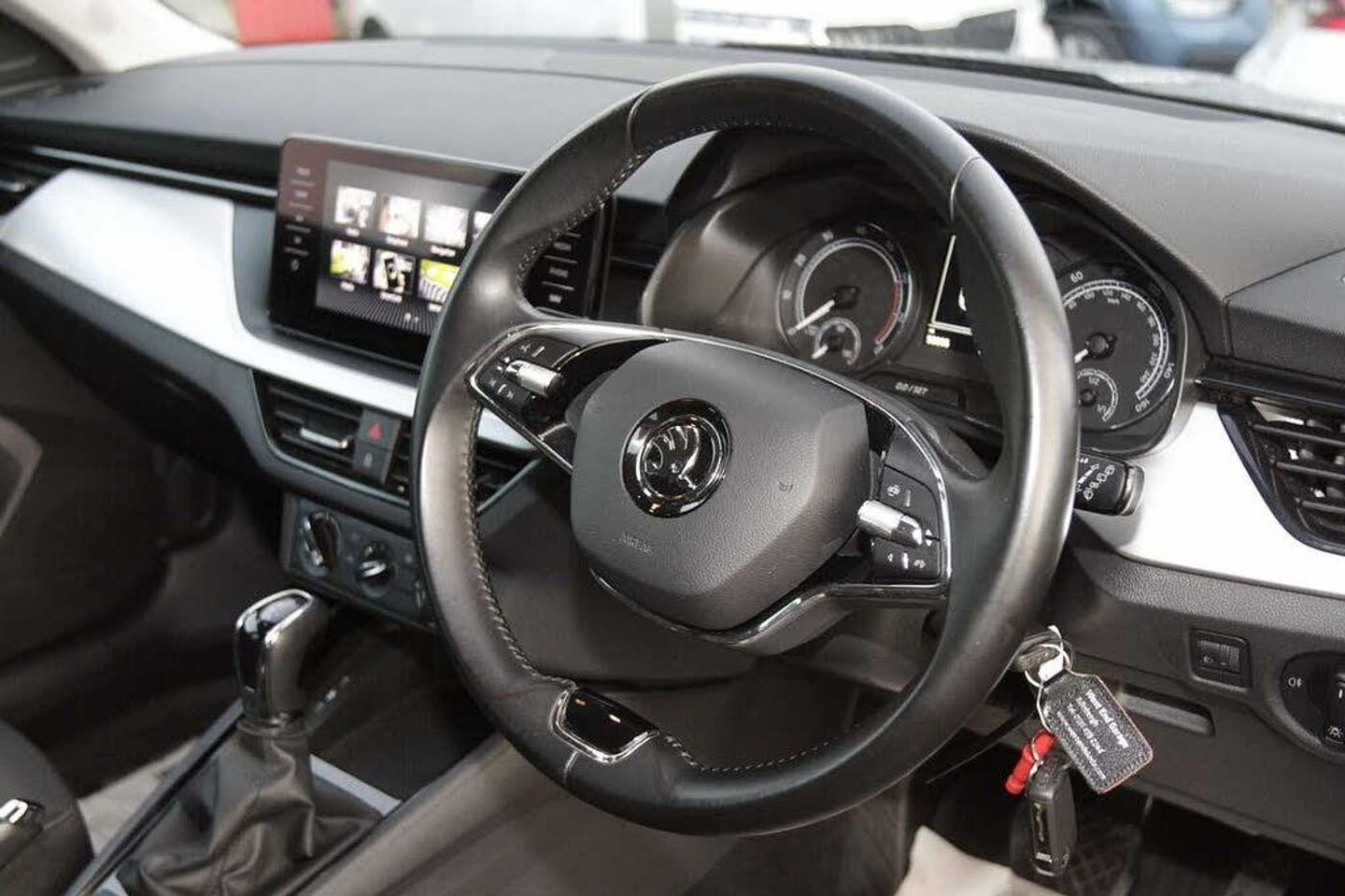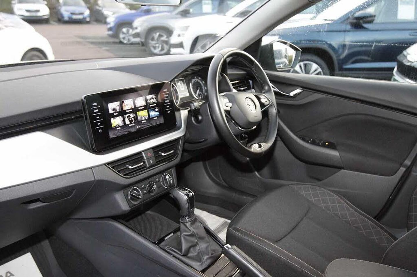 Exterior Features, Black roof rails, Metallic paint, Basic LED headlights with LED daytime running lights, Safety, Cruise control, Lane assist, Rear parking sensors, Interior Features, 2 spoke leather multifunction steering wheel, Manual air conditioning + Pollen filter, Audio / Communications, 8 Speakers, Miscellaneous, Trip computer, Paint - Metallic, Metallic - Quartz grey, Trim - Cloth, Cloth - Black with grey ceiling, Exterior Features, Front and rear electric windows, Heated rear window, Light sensors, Privacy glass, Rear wiper, Body colour bumpers, Body colour door mirrors and handles, Chrome grille surround, Headlight range control, Rear fog lights, Safety, ESP, Hill hold control, Manual parking brake, Rear disc brakes, Traction control, Front assist system, PAS, Speed limiter, Auto dimming rear view mirror, Electrically adjustable and heated door mirrors, 3x3 point rear seatbelts, Airbags - driver and front passenger, Front passenger airbag deactivation switch, Front side airbags with curtain airbags, One tone horn, Seatbelt reminder for driver an co-driver, Tyre pressure monitor, Interior Features, Textile floor mats, 12V Accessory socket in centre console, Chrome inner door handles, Cloth upholstery, Glove compartment with illumination, Ice scraper, Rake/reach adjustable steering wheel, Umbrella in driver's door, Reading lights, Sun visors with illumination on front passenger, Audio / Communications, Bluetooth system, E-call, 2 USB - C ports with 1x adaptor cable, Auxiliary input socket, DAB Digital radio, Miscellaneous, Amundsen satellite navigation with 9.2" touchscreen display, web radio and voice control, Gesture control, Service indicator, Wireless SmartLink for apple car play, android auto and mirrorlink, Trim, Silver haptic decorative insert with glossy black hot stamping, Front head restraints, Height adjustable passenger seat, Isofix child seat fittings on outer rear seats, ISOFIX on front passenger seat, Manual lumbar support for front seats, Third rear headrest, Top tether for front passenger seat, Security, Anti-theft alarm system with interior monitoring, backup horn, towing protection and remote central locking with SAFE system, Anti-theft wheel bolts, Electronic engine immobilizer