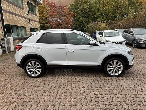 RESERVE ON LINE..ONE OWNER ONLY 17300 MILES FROM NEW WITH FULL VW HISTORY, 18" ALLOYS, NAVIGATION, APPLE ANDROID PLAY, REAR PRIVACY GLASS AND F&R PARK ASSISTThis 2021 Volkswagen T-Roc TSI EVO SEL offers exceptional value with its remarkably low mileage of just 17,300 miles, having had only one owner. This Euro 6 compliant 1.5 litre petrol model is equipped with a suite of advanced features designed to enhance your driving experience. These include Park Assist for effortless parking, bright LED headlights for superior visibility, and front and rear parking sensors to aid manoeuvrability. The convenience of a dusk sensor ensures automatic headlight activation, while Adaptive Cruise Control helps maintain a set speed and distance from the vehicle ahead.The performance of this T-Roc is equally impressive, with a swift 0-62mph acceleration time of just 8.6 seconds, demonstrating its dynamic capability. These highlights, such as the rapid acceleration and the comprehensive parking and cruise control systems, set this particular T-Roc apart from others you might find. This combination of low mileage, single ownership, and desirable features makes it a standout choice for anyone seeking a well maintained and feature rich compact SUV.
