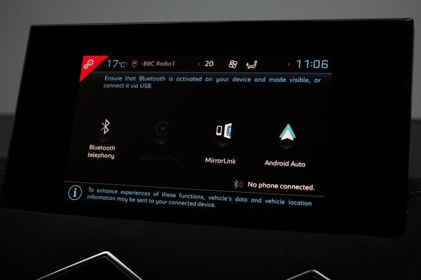 11kW On-Board Charger, 12V Socket, 17in Alloy Wheels - Dubai, 18in Alloy Wheels - Monza Diamond-Cut, 40-60 Split Rear Seats Backrest, 7in Digital Instrument Cluster, 7in Touchscreen, 8 Speakers, ABS - Anti-lock Braking System, Accelerated Charging Cable, Acoustic and Tinted Front and Rear Windscreen, Advanced Safety Pack, Airbags - Front - Rear Lateral and Curtain, Alarm - Perimetric and Volumetric with Anti-Lift Detection, Aluminium Sports Pedals, Armrest - Front Centre, Artense Grey, Artense Grey with Perla Nera Black Roof, Automatic Air Conditioning, Automatic Front Windscreen Wipers, Automatic Rear Wiper when Reverse Gear is Selected, Bag Support Hooks in the Boot, Bianca White with Perla Nera Black Roof, Black DS Wings, Black Interior Roof, Black Perforated Leather Steering Wheel with Contrast Stitching, Bluetooth Handsfree and Media Streaming, Boot Lighting, Chrome Door Handles, City Pack, Cruise Control with Speed Limiter, DAB Digital Radio, Dark Tinted Rear Windows, Domestic Charging Cable, Door Mirrors - Electrically Folding and Dimming with DS LED Spotlight, DS Connect Box Emergency and Assistance System, DS Connect Nav System, DS Inspiration - Performance Line, DS LED Rear Light, DS Matrix LED Vision Headlights, DS Monogram on the Rear Tailgate, E-TENSE Badging, Electric Parking Brake, ESP - Electronic Stability Programme, Flush Fitting Door Handles, Frameless Electrochromic Interior Rear View Mirror, Front and Rear Carpet Mats, Front and Rear Courtesy Reading Lights - LED, Front and Rear Electric Windows, Front and Rear Grab Handles, Front Chromed Door Entry Sill, Front Double Cup Holder, Front Seatbelts with Pretensioners and Front-Rear Load Limiter, Gloss Black Door Mirrors, Head-Up Display, Headlights - Automatic, Headlights - Halogen, Heated Rear Windscreen, Height Adjustable Front and Rear Headrests, Height-Adjustable Drivers Seat, Height-Adjustable Front Passenger Seat, Hill Start Assist, Keyless Start, LED Daytime Running Lights, Locking Wheel Bolts, Mirror Screen with Android Auto and Apple Car Play, Multi-Function On-Board Trip Computer, Odour Filter, One Front USB Connection Point, Pearl Crystal with Perla Nera Black Roof, Pearl White with Perla Nera Black Roof, Perla Nera Black, Platinum Grey, Platinum Grey with Perla Nera Black Roof, Premium Safety Package, Premium Seat with Comfort Foam and Pads and Map Pocket, Programmable Heater with Temperature Regulator, Proximity Keyless Entry & Start, Rapid Charging Capability - 100kW, Rear Parking Sensors, Red Carmine Centre Caps with DS Logo, Remote Central Control Locking with Deadlocks, Ruby Red with Perla Nera Black Roof, Safety Pack, Seat Belt Unfastened Warning, Sunvisors with LED Courtesy Mirror, Tinted Exterior Door Mirrors, Two Rear ISOFIX Mounting Points, Tyre Pressure Monitor, Tyre Repair Kit, Variable Power Assisted Steering, Warning Triangle Fasteners in the Boot, Wireless Charging for Smartphone, Woven Cloth-Alcantara - Black Basalt