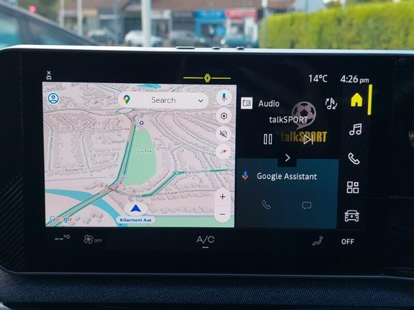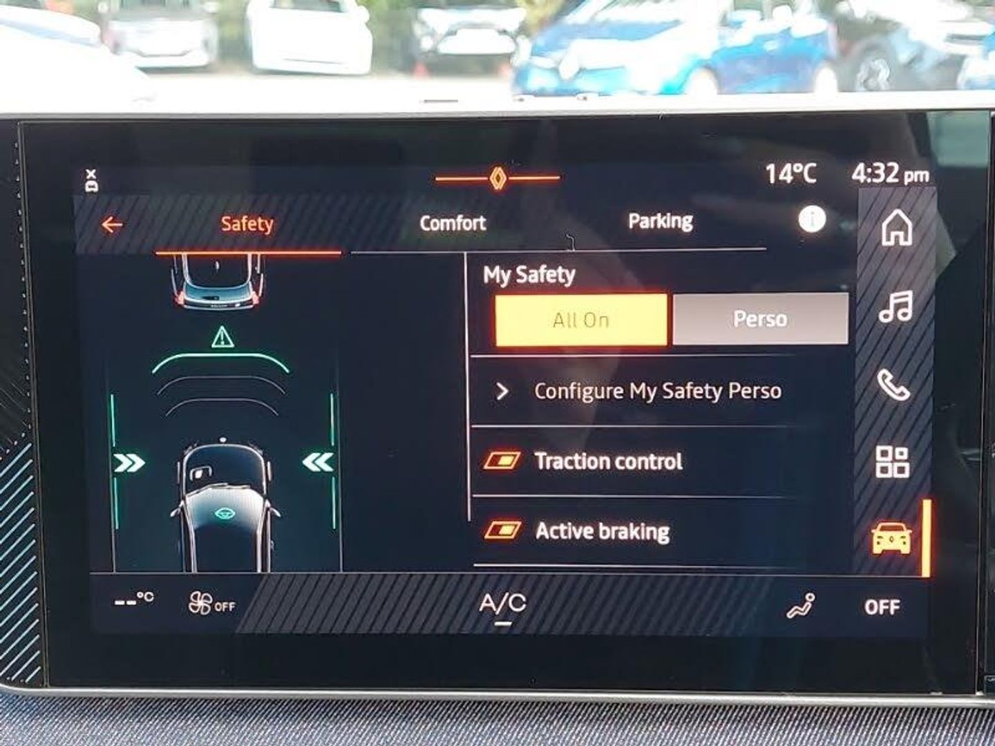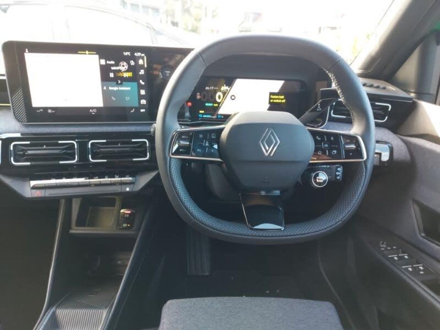 Navigation system with build in google maps, Voice control for navigation system with built in google assistant, 10.3" digital driver information display, OpenR link 10.1" central touchscreen multimedia system: Google built in, DC charge preconditioning, Wireless phone charger, Wireless smartphone replication and integration via Apple carplay and Android auto, Multisense: customisable driving modes (personalised, sport, eco, comfort), Rear view camera, Automatic dual zone climate control, Rear parking sensors, Adaptive cruise control with Stop and Go, Steering wheel mounted cruise control, Bluetooth, Connected services including over the air updates, Intelligent speed assist with speed sign recognition and overspeed warning, Internet access, Speed alert, Speed limiter, Wi-Fi hotspot, Traffic sign recognition, Reno - the official Renault avatar, 5 charging indicator on bonnet [lights up w. welcome sequence + shows increments of 20%], Steering wheel audio controls, Automatic headlight levelling, Automatic high / low beam, Automatic LED front headlights with micro-optics + french flag in the light, Automatic LED daytime running lights, Automatic windscreen wipers with rain sensor and sensitivity setting, Electric adjustable/heated/auto folding door mirrors, Privacy glass, Rear band with "RENAULT" in satin chrome and satin chrome "5", 6 way lumbar support, Ambient interior lighting [48 colour combinations], Front seats with manual height adjustment, Multifunction steering wheel, Reach adjustable steering wheel, Hill start assist, Keyless entry, 18" black diamond-cut alloy wheels