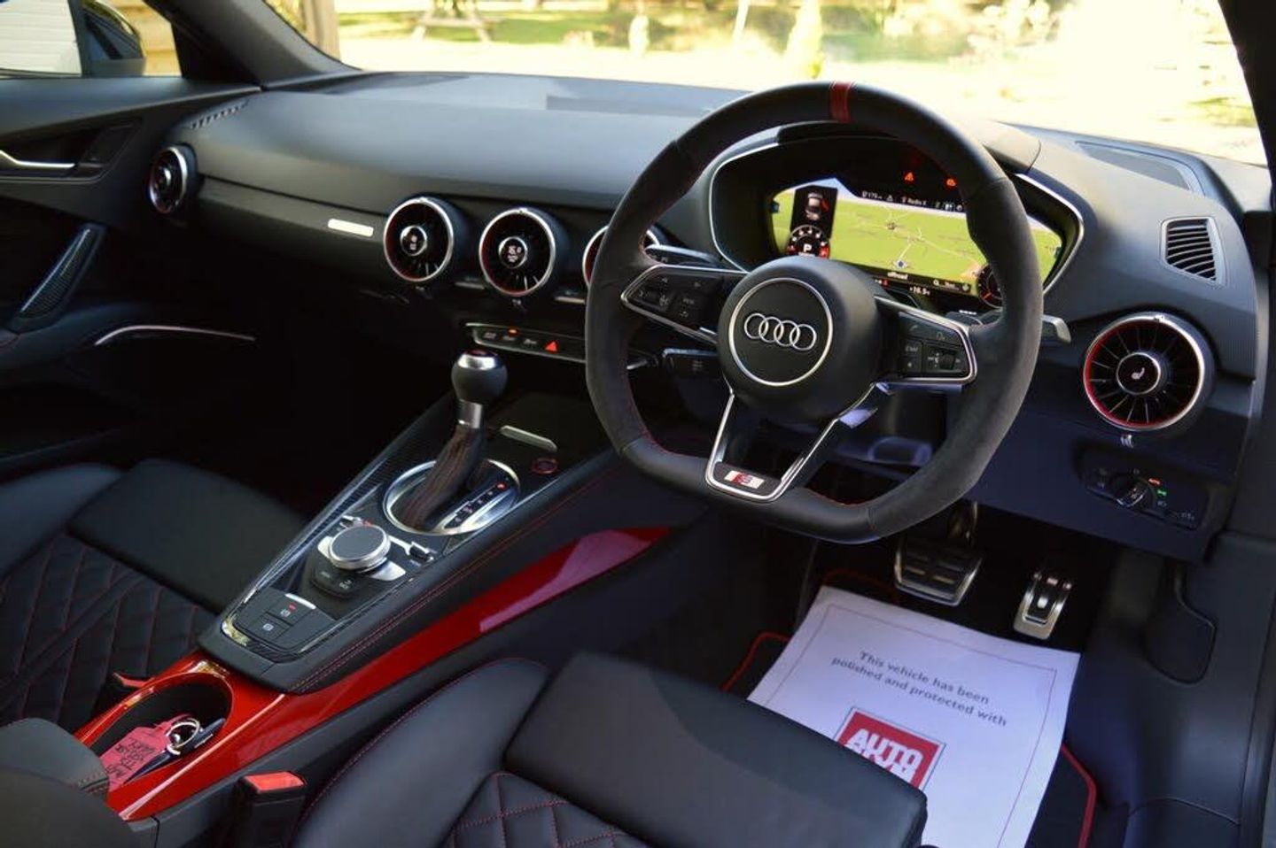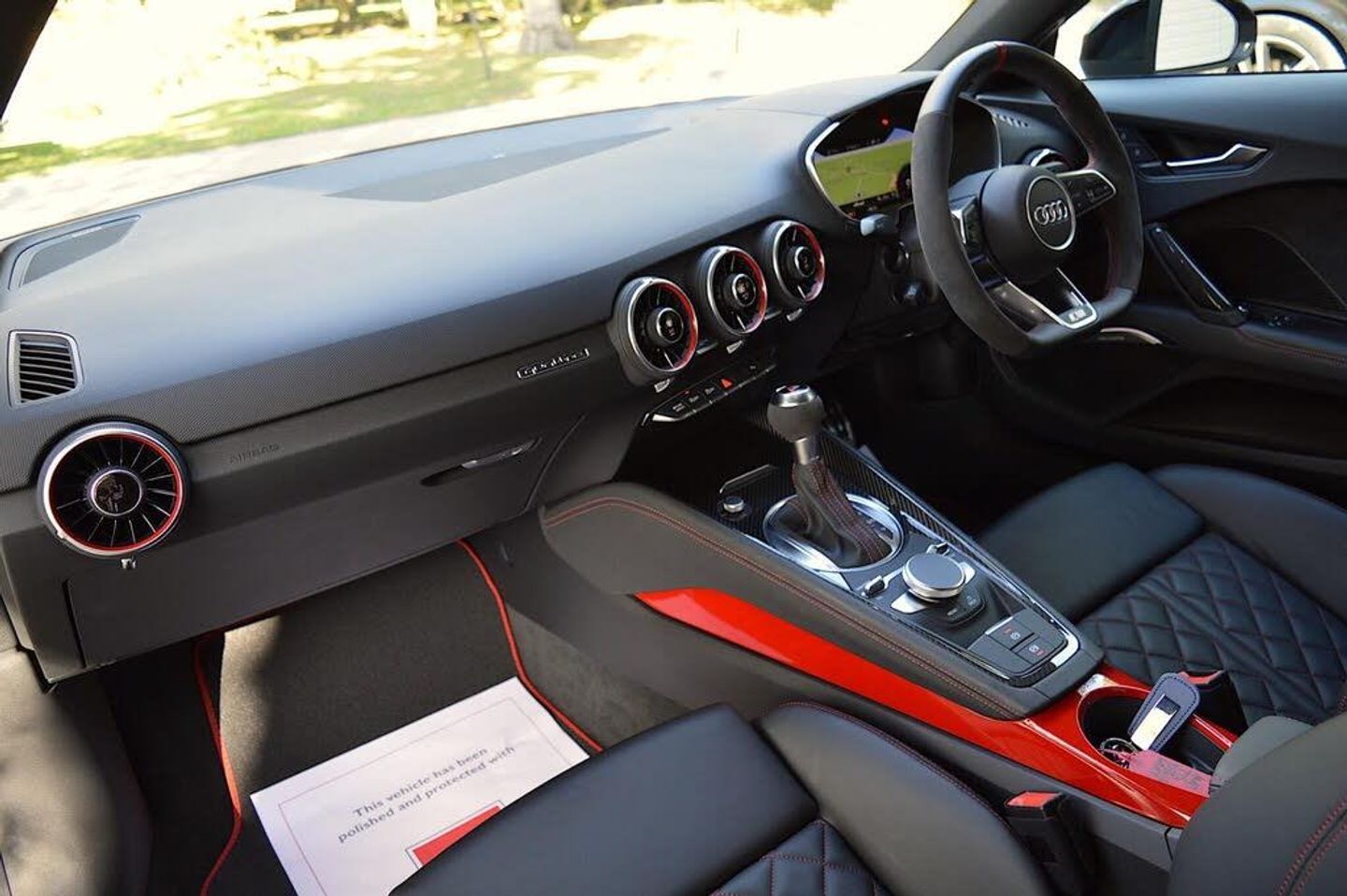12V Socket, 20in Alloy Wheels, Anti Theft Locking Wheel Bolts, Anti-Theft Alarm, Audi Beam, Audi Drive Select, Audi Magnetic Ride, Audi Phone Box with Wireless Charging, Audi Rings Decal, Audi Smartphone Interface, Audi Virtual Cockpit with Sport Gauge - Power-Torque Display - G-Force Meter, Audi Virtual Cockpit with TTS Specific Display, Auto-Dimming Rear-View Mirror, Black Door Mirrors, Black Styling Package, Bluetooth Mobile Telephone Preparation, Brake Calipers - Red, Coloured Interior Elements in Tango Red Gloss Paint, Comfort and Sound Package, Cruise Control, DAB Digital Radio, Deluxe Automatic Air Conditioning with Integrated Digital Displays, Door Mirrors - Electrically Folding, Door Sill Trims with Aluminium Inlay and TTS Logo, ESC - Electronic Stabilisation Control inc ABS - EBD - ASR - EDL, Electric Windows - Front, Electromechanical Parking Brake, First Aid Kit and Warning Triangle, Fixed Rear Spoiler in Gloss Black, Flat-Bottomed TTS Sport 3-Spoke Contour Leather Multi-function Steering Wheel, Floor Mats - Red Piped, Foot Pedals in Stainless Steel, Front Airbags with Front Passenger Deactivation, Front Centre Armrest, Head Level Airbags, Heated Front Seats, Hill Hold Assist, ISOFIX Child Seat Mounting for Front Passenger with Airbag Deactivation, ISOFIX Child Seat Mounting for Rear Seats, Inlays - Carbon Twill for Centre Console and Door Pull Handle, Keyless Go, LED Headlights with LED Rear Lights and Dynamic Rear Indicators, LED Interior Lighting Pack, Leather Package, Light and Rain Sensor, MMI Radio, Mirror Housing - Black, Plus Pack, Privacy Glass, Progressive Steering, Rear Parking Sensors, Split-Folding Rear Seats, Steering Wheel Rim in Alcantara with 12 O-Clock Marker and Contrasting Stitching in Express Red, Technology Package, Tool Kit, Tyre Pressure Loss Indicator, Tyre Repair Kit, Chronos Grey Metallic