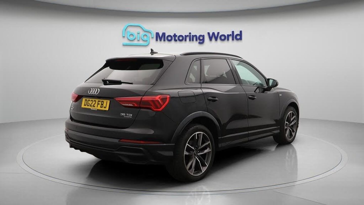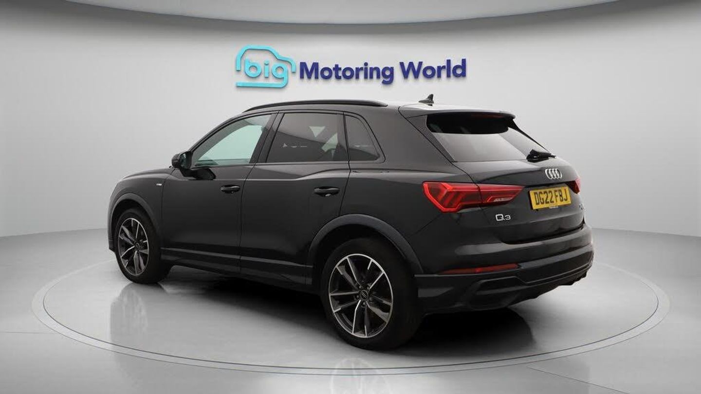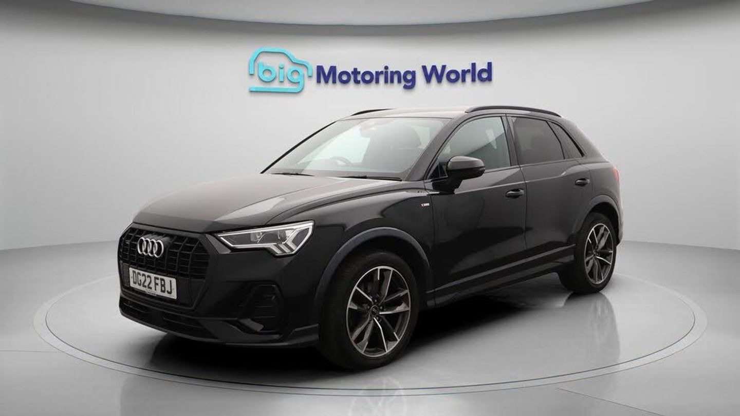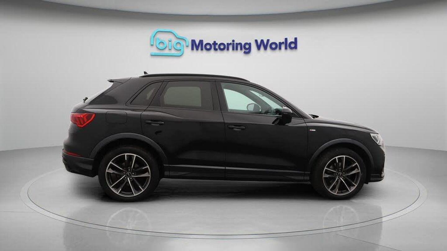 Part Leather Seats,Apple CarPl-Our Audi Q3 comes with optional extras worth £2,020. Specification includes a range of fantastic features including Part Leather Seats, Apple CarPlay, Premium Sound System, S Line Body Styling, Android Auto, Satellite Navigation, Privacy Glass, Heated Seats, Rear View Camera, Bluetooth Specification information is supplied by CAPHPI and may vary to the actual car. This data does not form any part of a buying contact. Please check specification prior to purchase in-store. The MOT is valid until August 2026, visit bigmotoringworld.co.uk for more photos, a 360 tour, service history and a free HPI report.Were BIG on peace of mind and this Black Audi Q3 has completed our comprehensive 200 point inspection and passed all checks. Its ready for you to drive away with immediate collection in-store. We include a 90-day warranty as standard plus an option to extend for up to 3 years.Reserve this car exclusively for you, safely and securely at bigmotoringworld.co.uk, with a fully refundable £99 deposit. Test drive before you buy, with no commitment, no hassle and a completely haggle free experience. Still searching and want to see thousands more cars? We are BIG on choice with over 8000 cars to choose from.Visit our award winning web site bigmotoringworld.co.uk.Were Big Motoring World and were BIG on what matters to you.