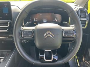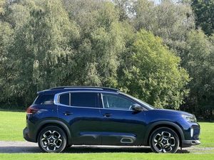 This 2023 Citroen C5 Aircross BlueHDi MAX offers exceptional value with remarkably low mileage for its age, having covered just 14,500 miles. This stylish SUV is equipped with a 1.5 litre Euro 6 diesel engine, ensuring efficient performance. The MAX trim level comes packed with desirable features, including the City Camera Pack for effortless parking with front and rear sensors and a rear camera, alongside an Acoustic Laminated Windscreen that automatically activates headlights and responds to rain and brightness. For enhanced safety and convenience, the Drive Assist Pack provides Adaptive Cruise Control and Blind Spot Assistance, further complemented by electric, heated, and folding door mirrors that include LED approach lighting and blind spot monitoring indicators. Inside, you'll find a user friendly 10 inch touchscreen interface with Bluetooth connectivity.