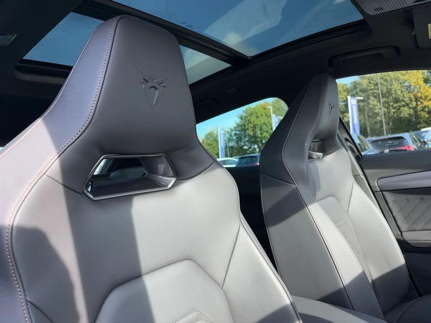 Electric front/rear windows,Rain sensing wipers,Rear wash/wipe,Tinted rear windows,Adaptive chassis control with continuous operation,CUPRA sport suspension,Body colour door handles,Body coloured bumpers,Gloss black roof rails and window surrounds,Rear diffuser with twin exhaust pipe on each side,Rear side wing doors,Daytime running light with automatic headlight control and coming home feature,Door panel ambient lighting,Dynamic headlight range control,High beam assist,LED 3rd brake light,LED front fog lamps with cornering function,LED Taillights with dynamic indicator,Matrix LED headlights with multifunction camera,Rear fog lights,Welcome lights (within exterior mirror housing),ABS,Brake control system - ESC and brake booster,Electronic parking brake,Front and rear disc brakes,Hill hold control,Adaptive cruise control with follow-to-stop and speed limiter,Advanced driver alert system,Advanced lane assist with semi-automatic vehicle control in a medical emergency and traffic jam assist,Dynamic chassis control with driving profile selection (Comfort,Sport,CUPRA,Individual),Dynamic road sign display,Forward collision warning with automatic braking,Intelligent park assist,Side and exit assist,Speed sensitive power steering,Top view camera,Auto dimming rear view mirror,Dark grey wing mirror,Electrically adjustable heated and folding door mirrors with memory function,3 point seatbelts on all rear seats,Child proof door locks,Driver and front passenger airbags with front passenger airbag de-activation,Front side curtain airbags,Pre-crash front and rear seat belt tensioner,window closure and hazard lights,Public e-call,Seat belt reminder for front and rear seats,Tyre pressure monitoring system,Voice control system,Wired Android Auto,Wireless apple carplay,2 front and 2 rear USB type C sockets,Media system with navigation,12.9" touchscreen display,voice control,DAB,steering wheel mounted controls,Start/stop system with regenerative braking,Virtual pedal and electric tailgate,Wireless phone charger,10.25" digital cockpit and configurable dashboard,Emergency steering support with turn assist,Full link phone integration,RPM,trip computer,outside temp gauge,instrument light brightness,low fuel warning light,lights on reminder,gearshift indicator,Service interval indicator,Copper and aluminium interior detailing,3 seat bench in 2nd row,60/40 split rear bench seat with armrest and mechanical seat release,Electrically adjustable front seats with lumbar support and memory function,Front and rear head restraints,Heated front seats,Isofix,Single front passenger seat,Dust/pollen filter,Three zone climate control with control panel in rear,12V socket,Black headlining,Black interior roof lining,Cupra sports pedals,Front centre armrest,Heated supersports multifunction leather steering wheel with satellite buttons and gear shift paddles,Height/reach adjust steering wheel,Illuminated aluminium doorsteps,Illuminated interior front door sills,Leather dashboard,door insert and side trim panel,PVC/Leather upholstery,Satellite steering wheel,Storage pockets on rear of front seats,Variable luggage/load compartment floor,2 front and 2 rear reading lights,LED smart wraparound lighting,Electronic locking differential and dynamic traction support,Illuminated sunvisor with mirror,Anti theft alarm system,KESSY Advanced - Keyless start,keyless entry with SAFELOCK,Locking wheel bolts,19" Artic machined sport black and silver alloy wheels,Breakdown and tool kit