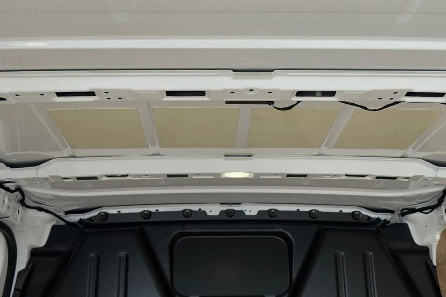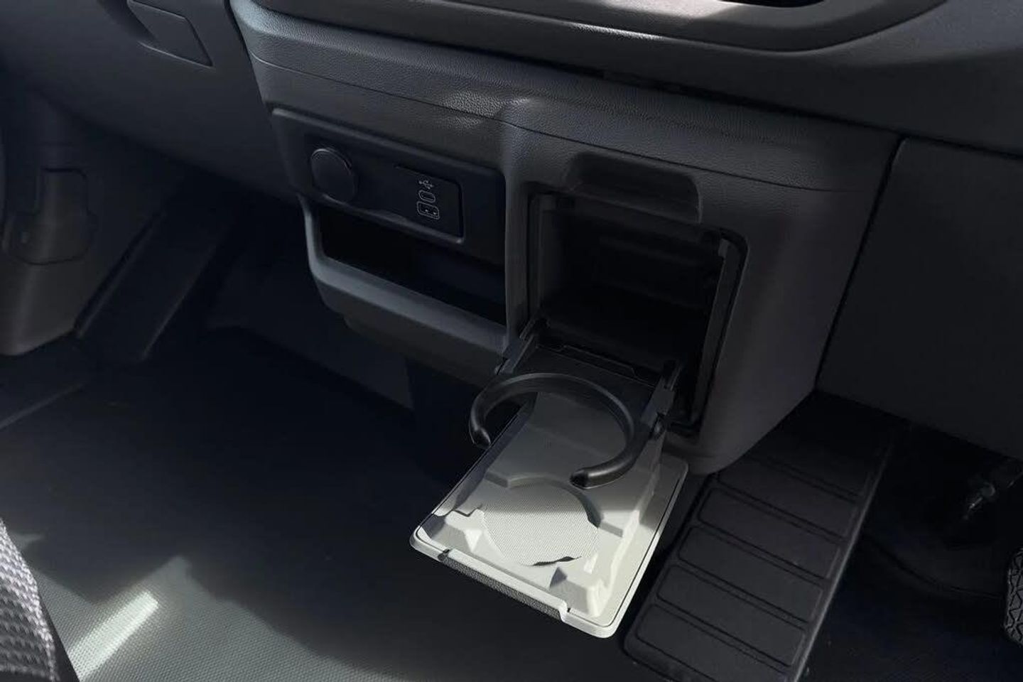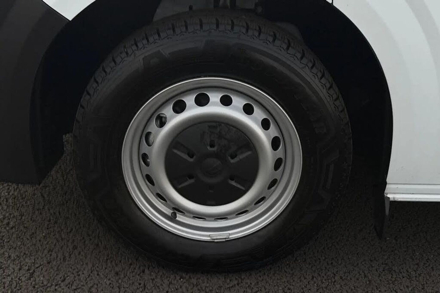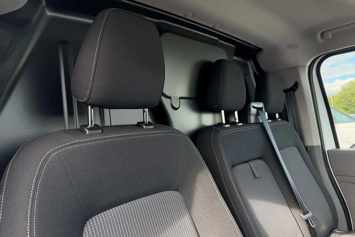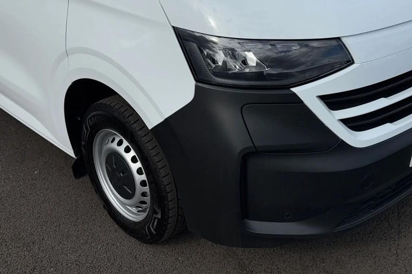Heat reflecting side window glass,Body coloured door handles,Mud flaps front and rear,Rear Transporter nameplate in black grained decorative trim,Vehicle opening configuration 1x 1st row of seats,2x all doors,Electromechanical brake booster,Electronic stability control,ABS,ASR with deactivation button,hill start assist and brake assist system,Cruise control,Electromechanical speed sensitive power steering,height and longitudinally adjustable steering column,Lane assist,Wrong way driver warning,Driver and front passenger airbag with front passenger airbag deactivation,Front and curtain airbags for driver and front passenger,Seat belt pretensioner for driver seat,Single tone horn,Apple CarPlay and Android Auto,4 speakers - 2x dashboard,2x cab doors,12" digital drivers display,13" touchscreen infotainment display with wireless app connect and DAB radio,5G Modem,Dynamic road sign display,eCall emergency system,Preparation of VW connect and connect plus,Electric auxiliary heater,Heat pump,2x 15-W USB data/charging ports in dashboard and 1x USB-C,1x USB-A center bottom,Black plastic scuff plate for sliding door in cargo without illumination,Narrow centre console with cup holder and compartment for mobile phone,Overhead storage compartment,Roof grab handle on front passenger side,Rubber floor covering in cab,Striped fabric upholstery,Cabin interior lighting,2x LED lights in load compartment,Lashing rings for reinforced floor covering,Without passenger seats in load compartment,4 way height and tilt adjustable head restraints,Anti theft alarm system with interior monitoring in cab,backup horn and towing protection,Electronic immobiliser,Preparation for alcohol ignition interlock,5+ Promise,Mode 3 charging cable,type 2,3-phase,32A,cable length 5m,Goodyear all season tyres,Tyre mobility kit in lieu of spare wheel with 12 volt compressor and tyre sealant